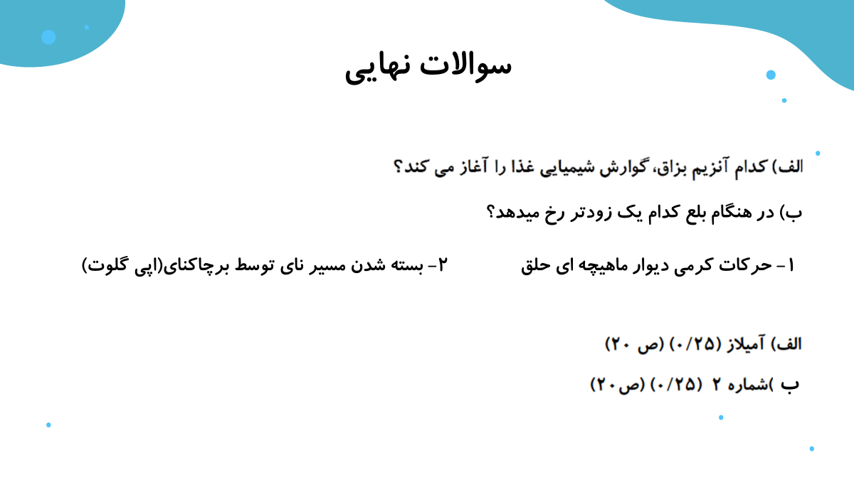 ابتدا سوالات نهایی این مبحث رو بررسی میکنیم: