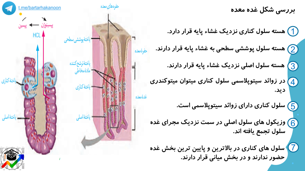 💣 نکته مهم: ترشحات غده از حفرات میگذرند و سپس به درون معده وارد میشوند.