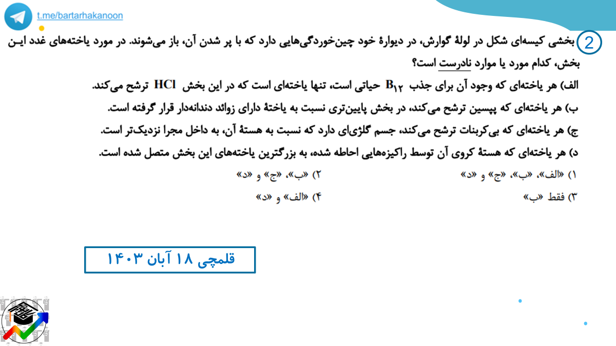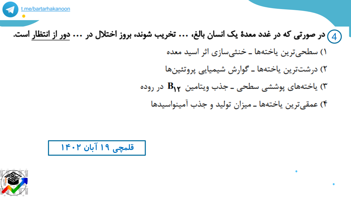 💣 نکته مهم: غدد معده در لایه مخاطی دیواره لوله گوارش قرار دارند.