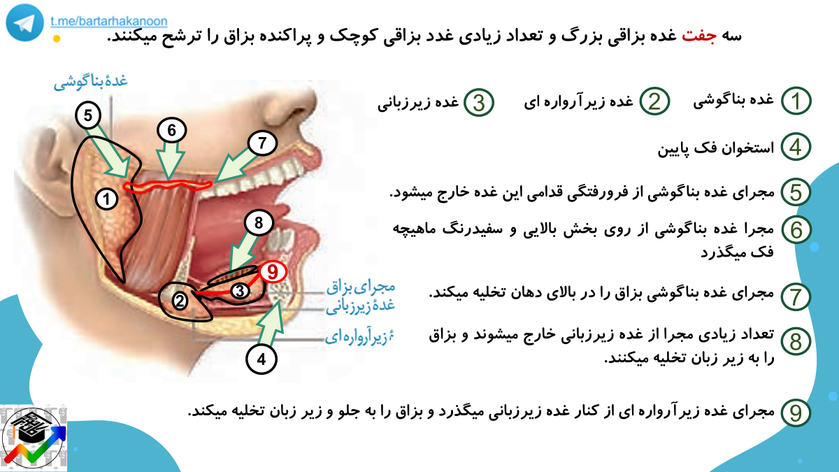 ✅ بزاق ترکیبی لاز آب، یون ها، آنزیم ها و موسین است.