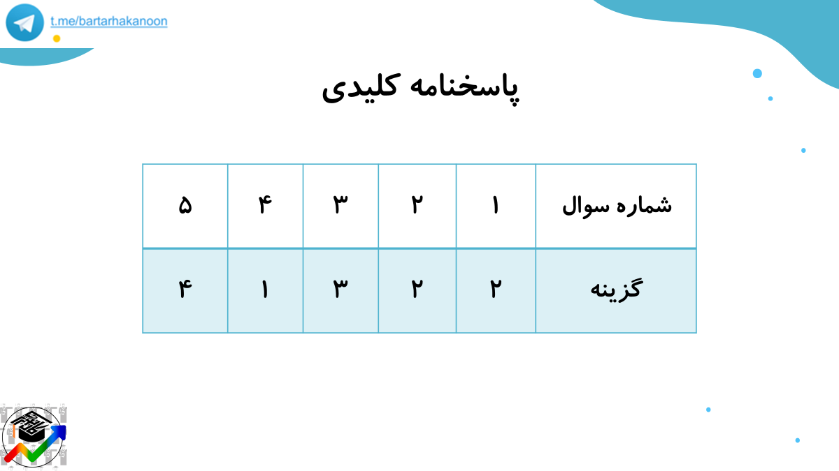 4-پاسخنامه کلیدی تست ها در انتهای مطلب