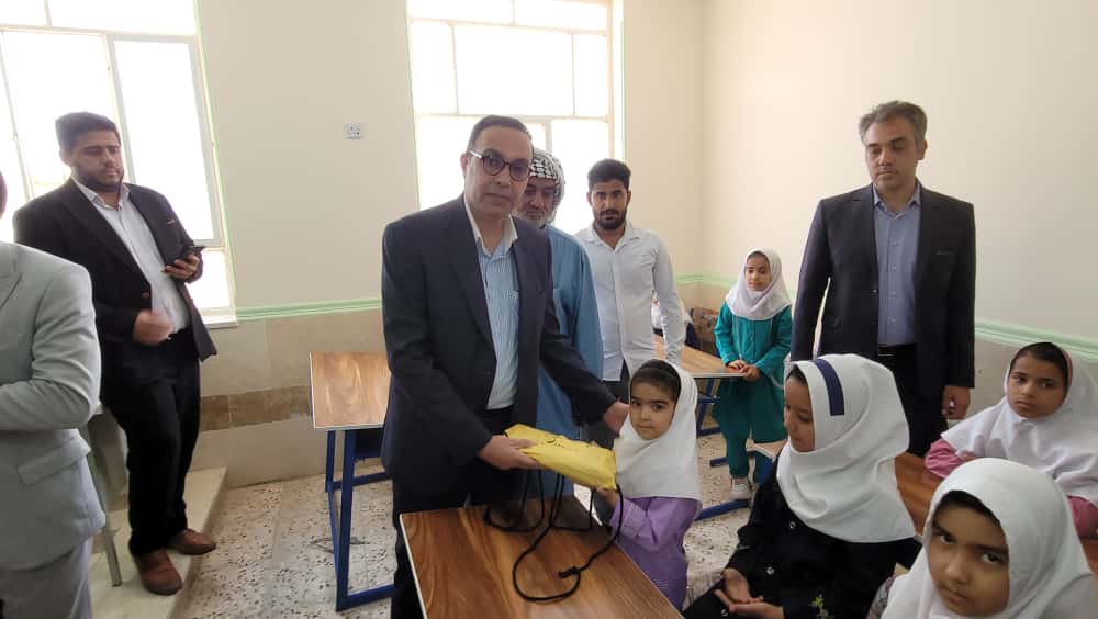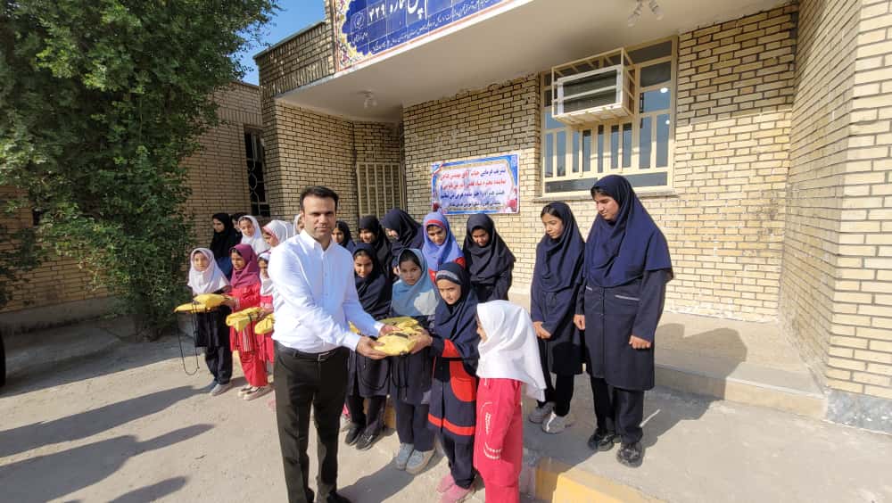 اهدای لوازم التحریر توسط خلیلی معاون مشارکتهای مردمی نوسازی مدارس خوزستان