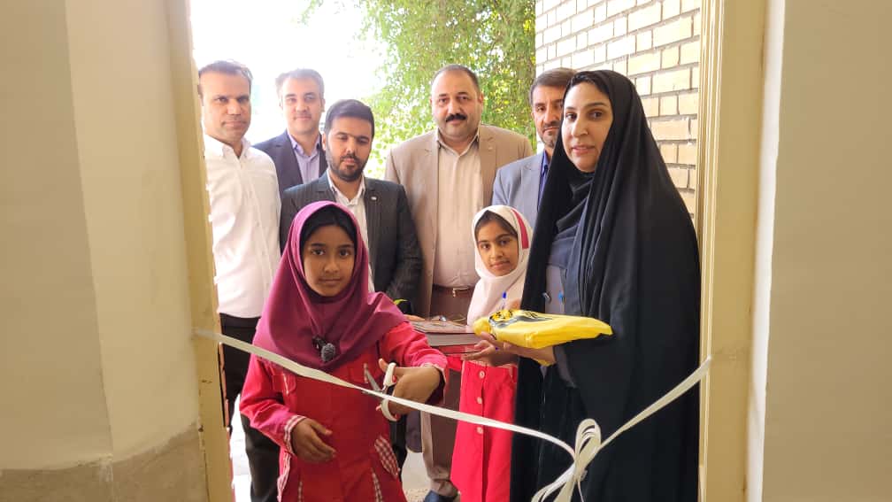 بریدن روبان افتتاح توسط دانشآموز مدرسه
