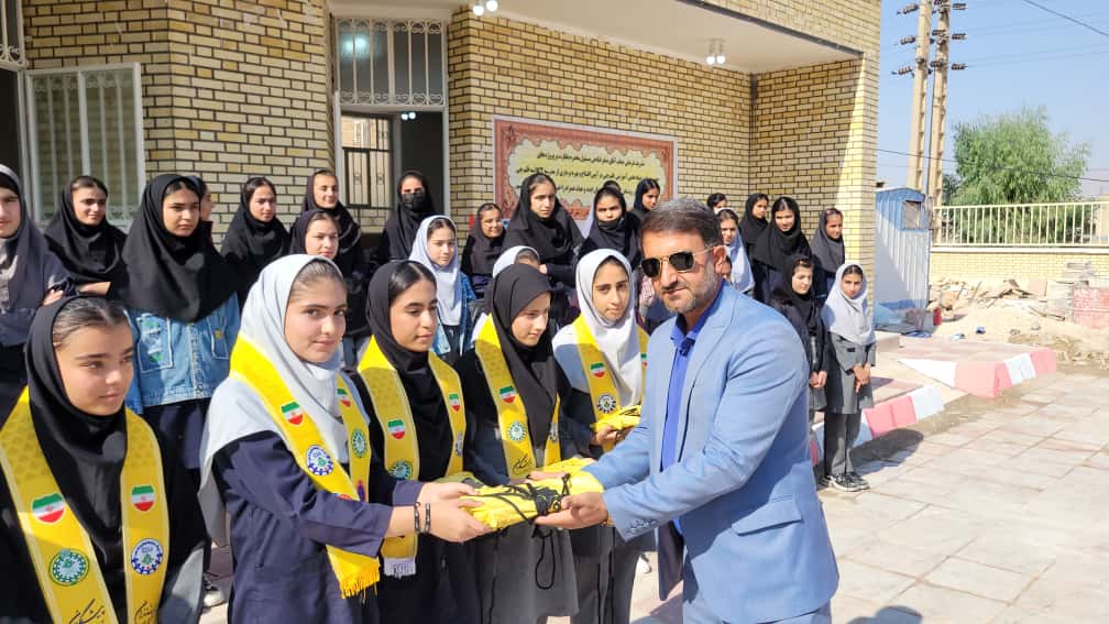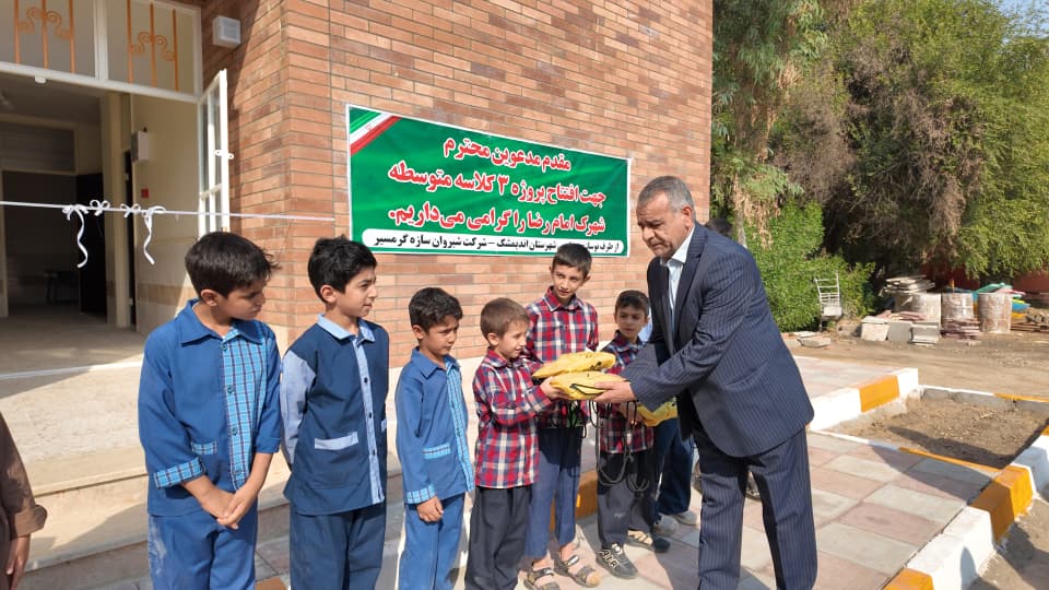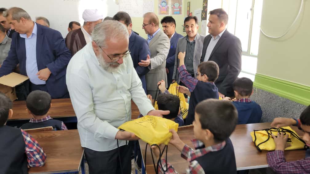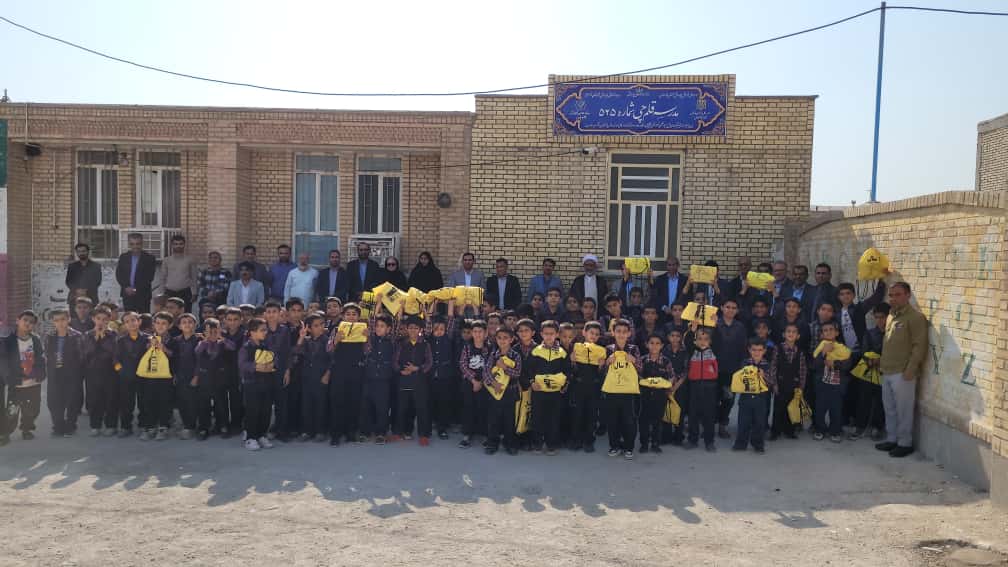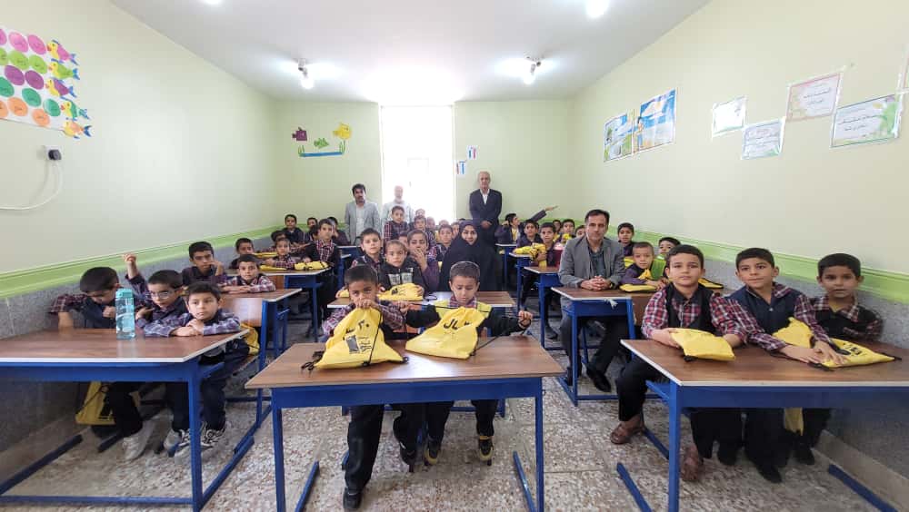 اهدای لوازم التحریر توسط خلیلی معاون مشارکتهای مردمی نوسازی مدارس خوزستان