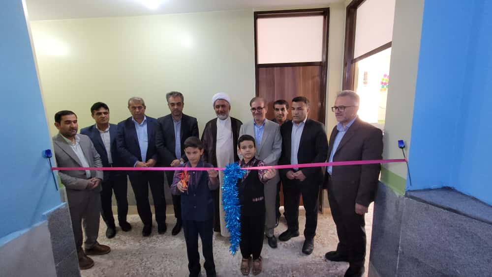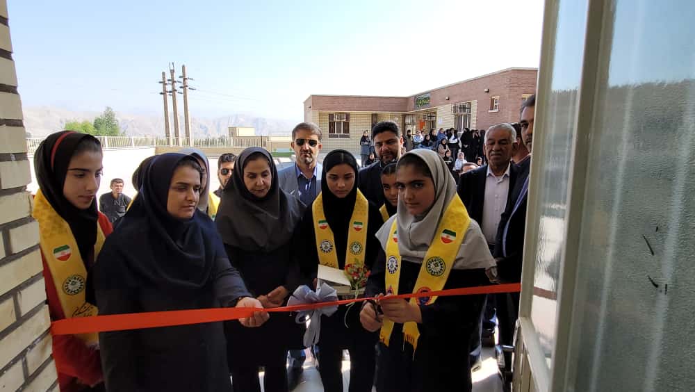 بریدن روبان افتتاح توسط دانشآموز و معلم مدرسه