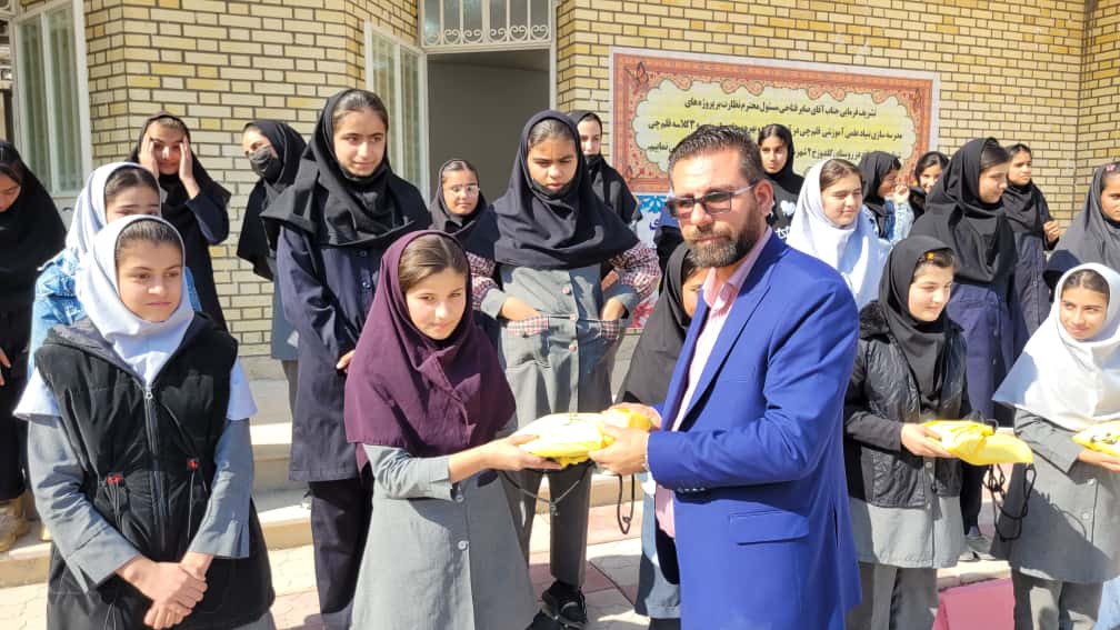 اهدای پکیج لوازم التحریر توسط قنادانزاده مسئول نمایندگی رامهرمز