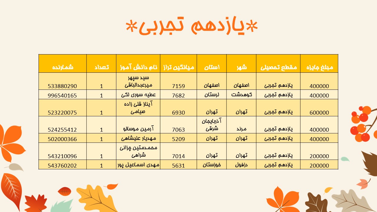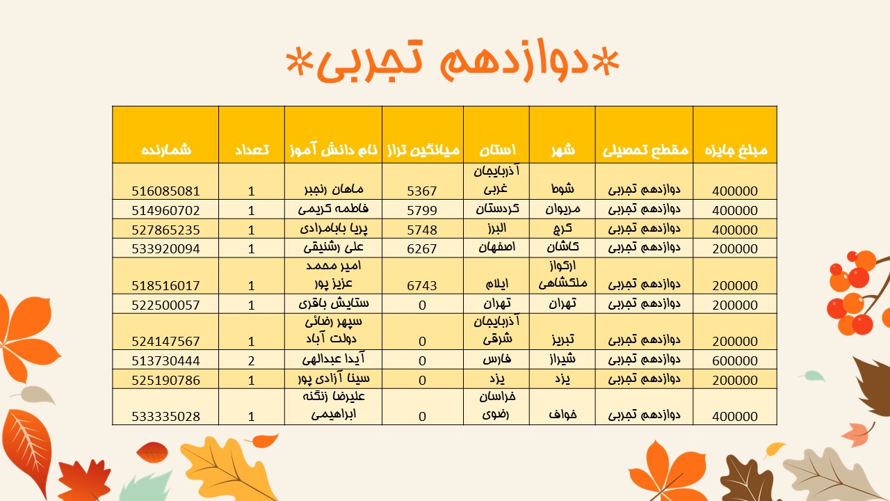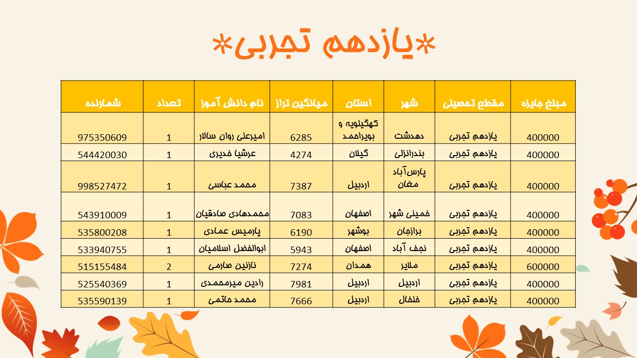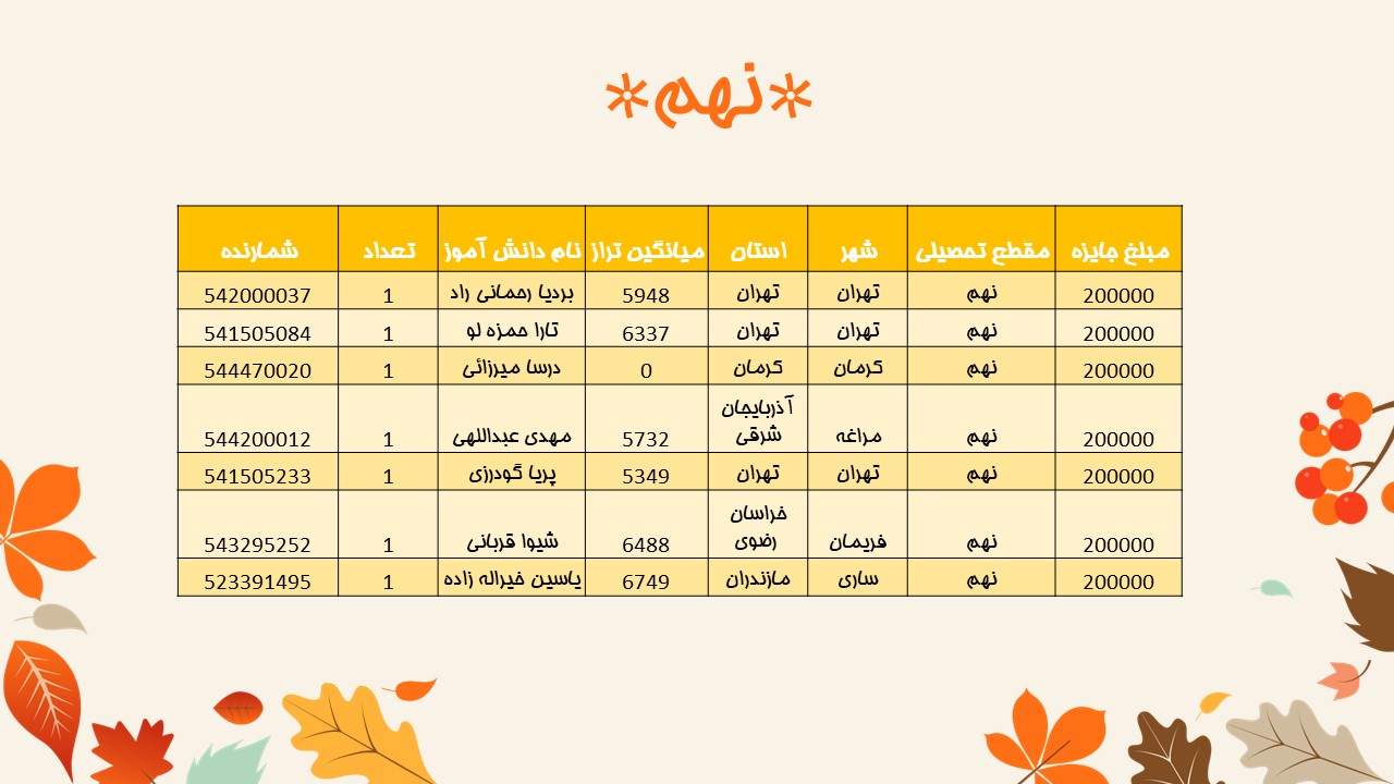 اسامی همه ی دانش آموزانی که اشکالات انها مورد تایید بوده و مشمول جوایز کانون هستند در پیوست امده است.