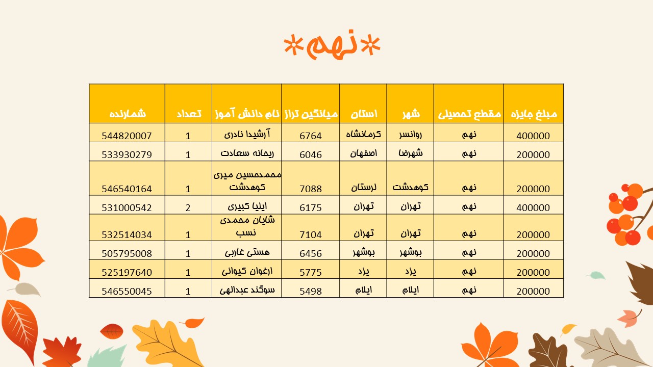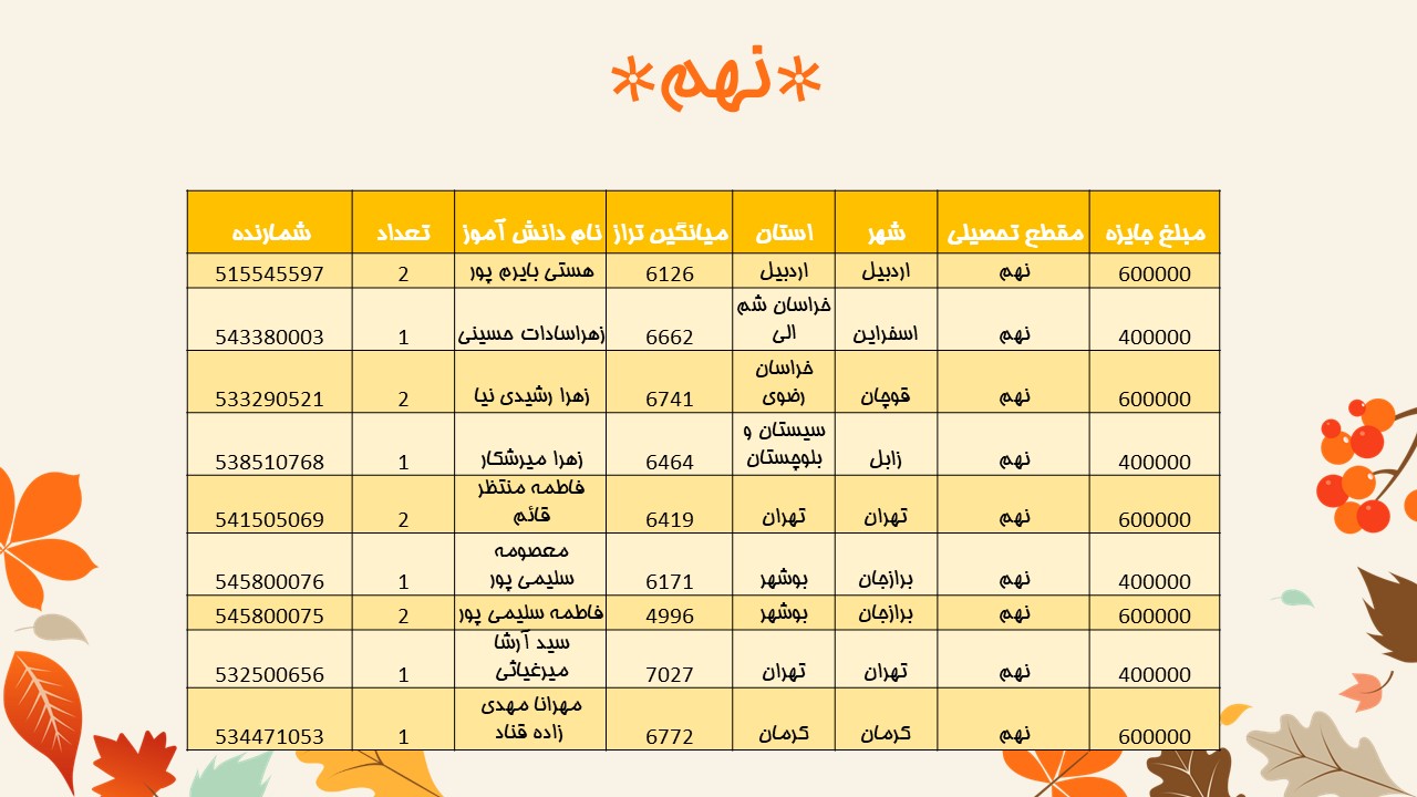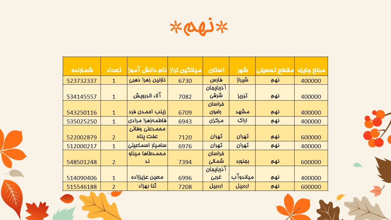 برای همه ی این دانش آموزان اعتبار هدیه ی کانون بوک به مبلغ 400 و 200 هزار تومان تعلق گرفته است.