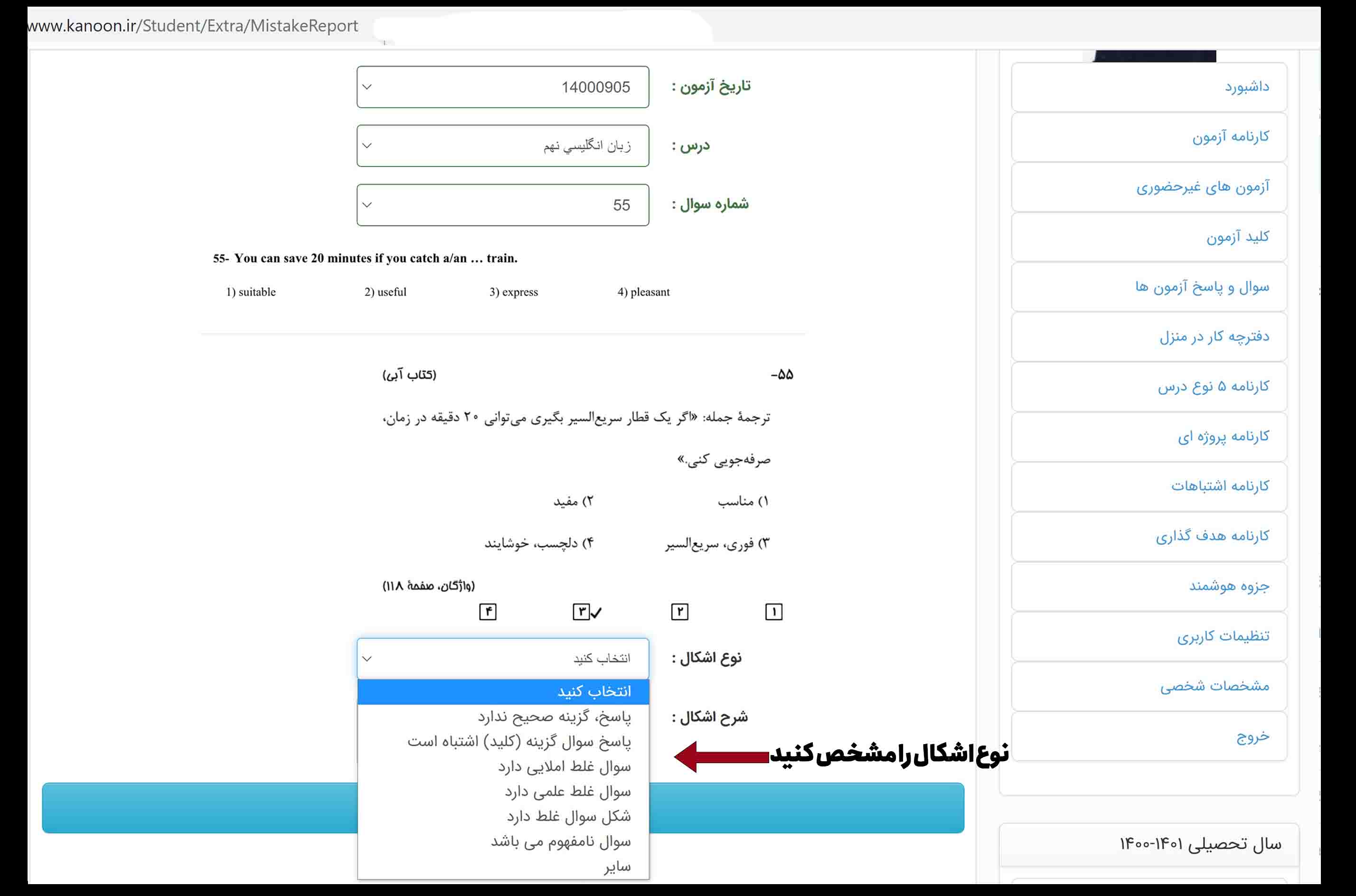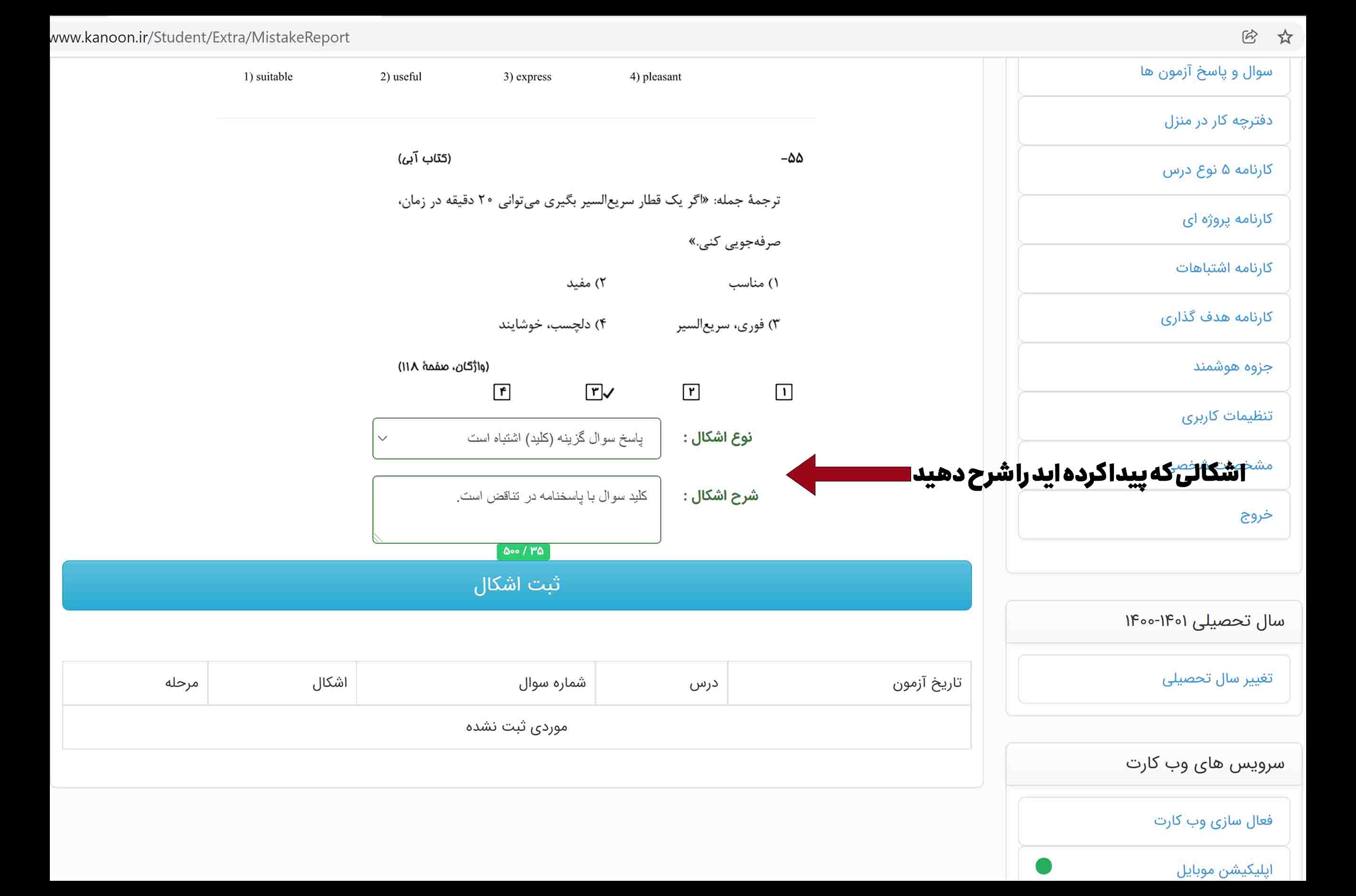 همچنین دانش آموزان میتوانند اشکالاتی که در آزمون می بینند را با داخلی 3124 (اقای گودرزی) مطرح کنند