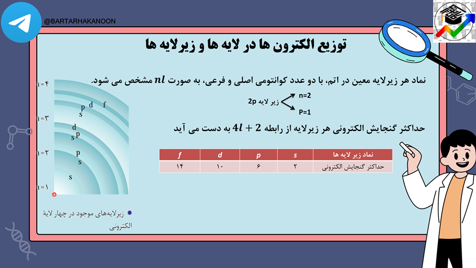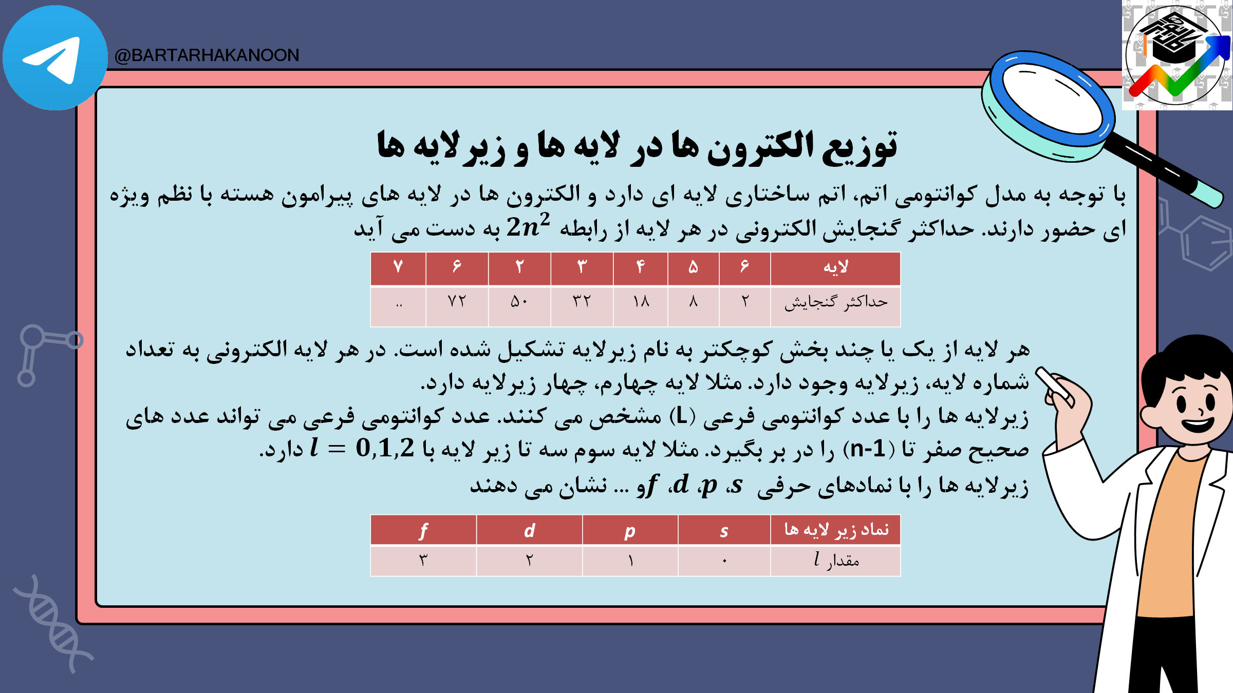 ترتیب شماره گذاری لایه ها از هسته به سمت بیرون است. شماره هر لایه را با n نشان می دهند که n عدد کوانتومی اصلی نامیده می شود. هر چه الکترون در لایه دورتری از هسته باشد، انرژی آن بیشتر است.