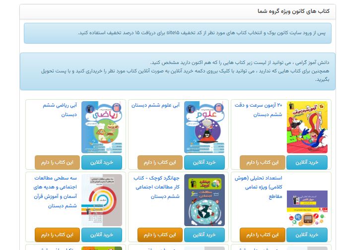 با مراجعه به قسمت کتاب های من در صفحه شخصی ، می توانید کتاب های آموزشی که مناسب مقطع شماست را مشاهده کنید.