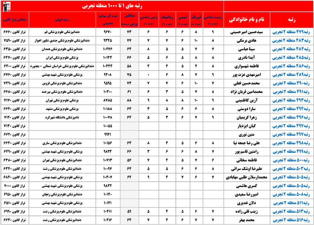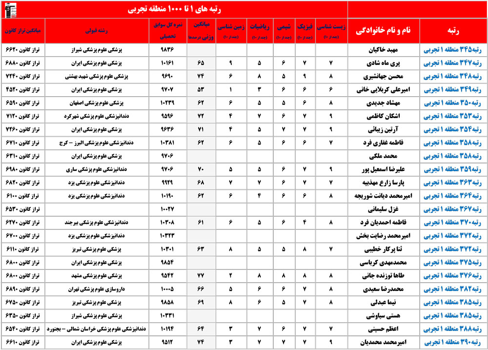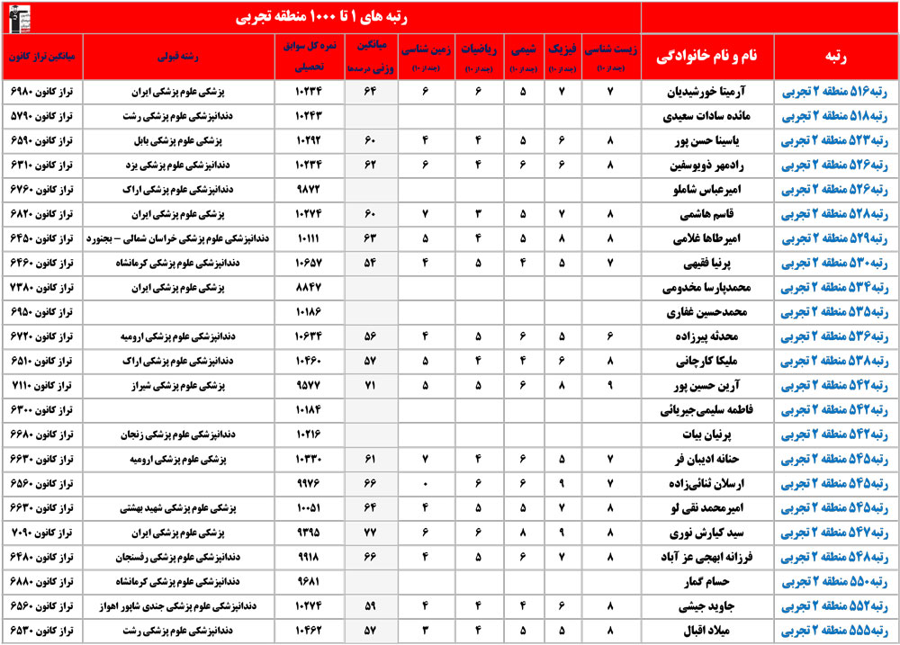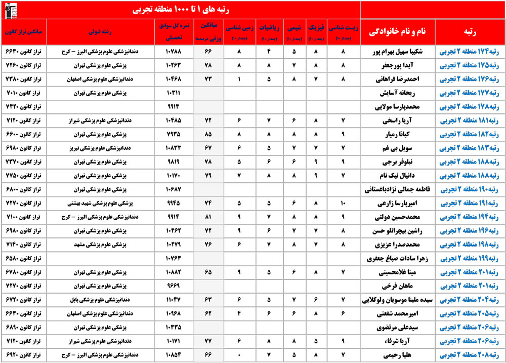 با چه رتبه ای در چه رشته ای قبول شدند ؟(تجربی)