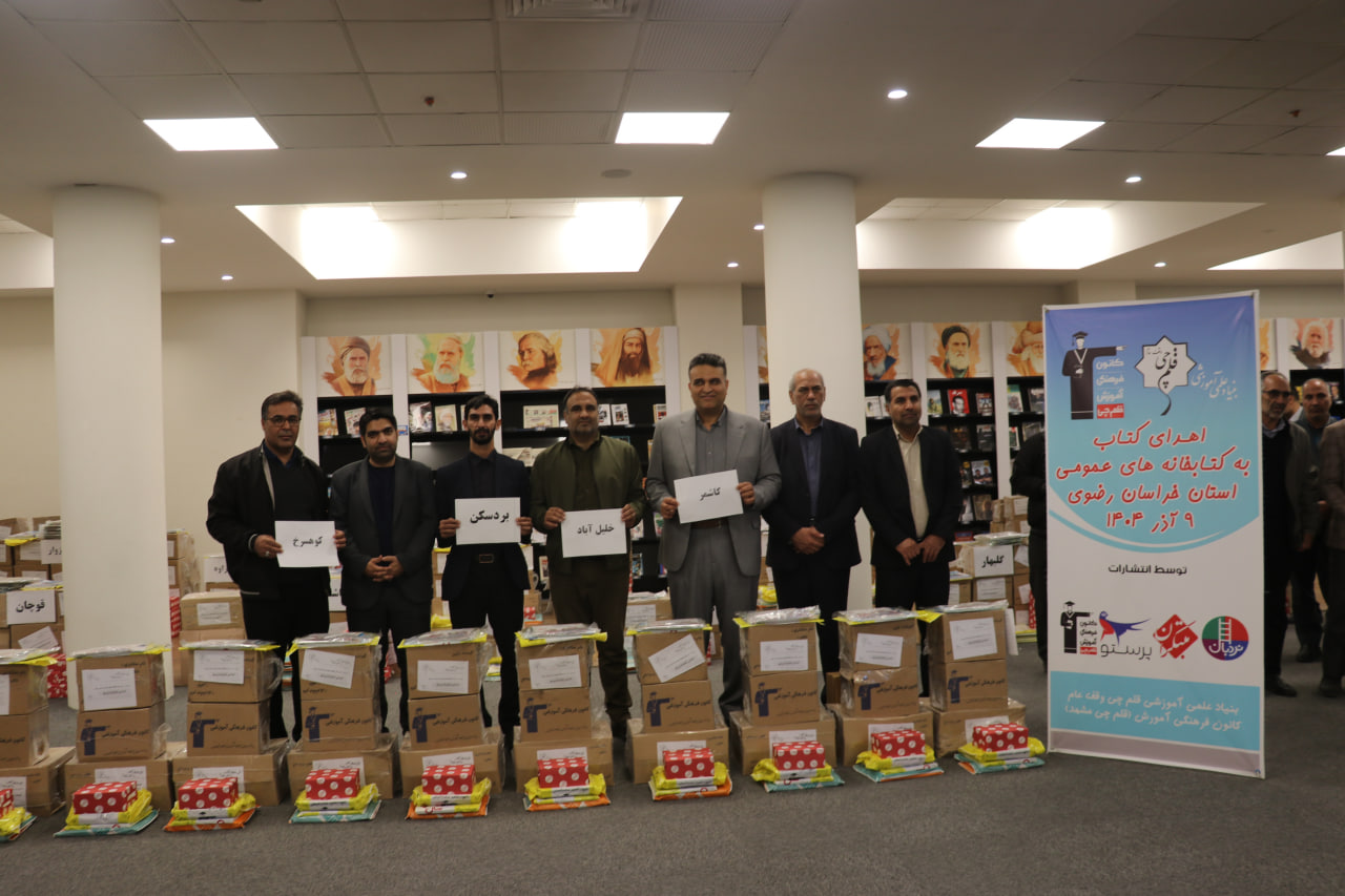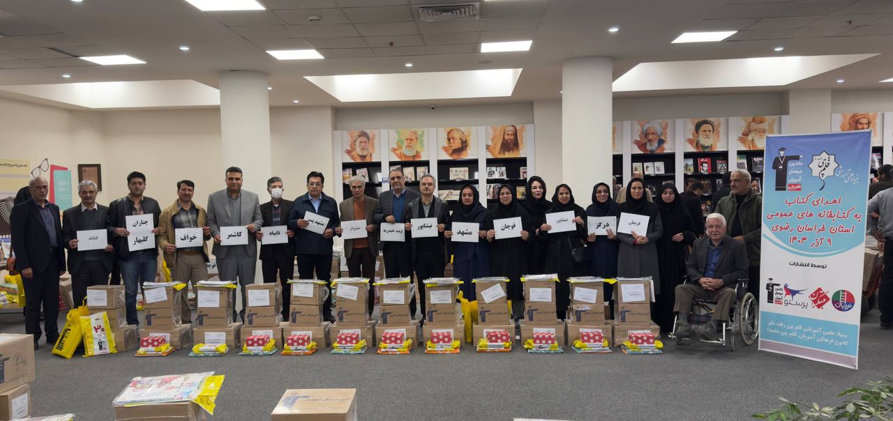 روز یکشنبه ۹ آذر ۱۴۰۴، پروژه اهدای کتاب به کتابخانههای عمومی استان خراسان رضوی اجرا و تعداد ۲۳,۹۲۵ جلد کتاب به ۱۵۳ کتابخانه اهدا شد.