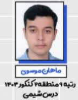 | ماهان موسوی رتبه 9 منطقه 2 سال 1403 (درس شیمی) | ![]() | کلیک کنید |