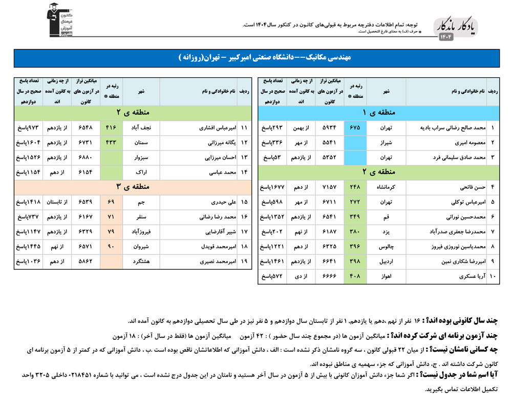 یادگار ماندگار : قبولی های کانونی دانشگاه امیرکبیر در همه رشته ها در سال 1404 را در ادامه مشاهده کنید.فایل با کیفیت قبولی های سال 1404 را در قسمت فایل های ضمیمه دانلود کنید.