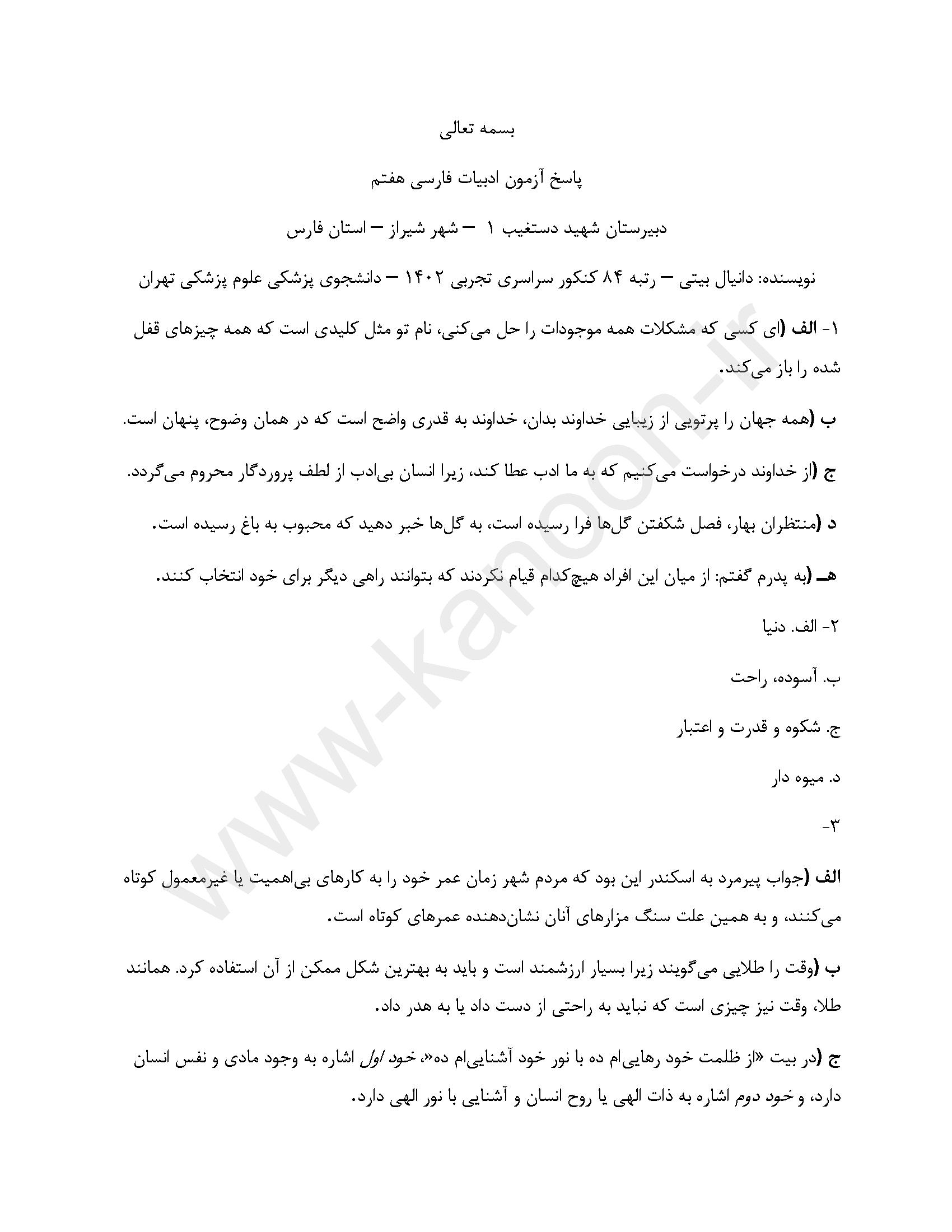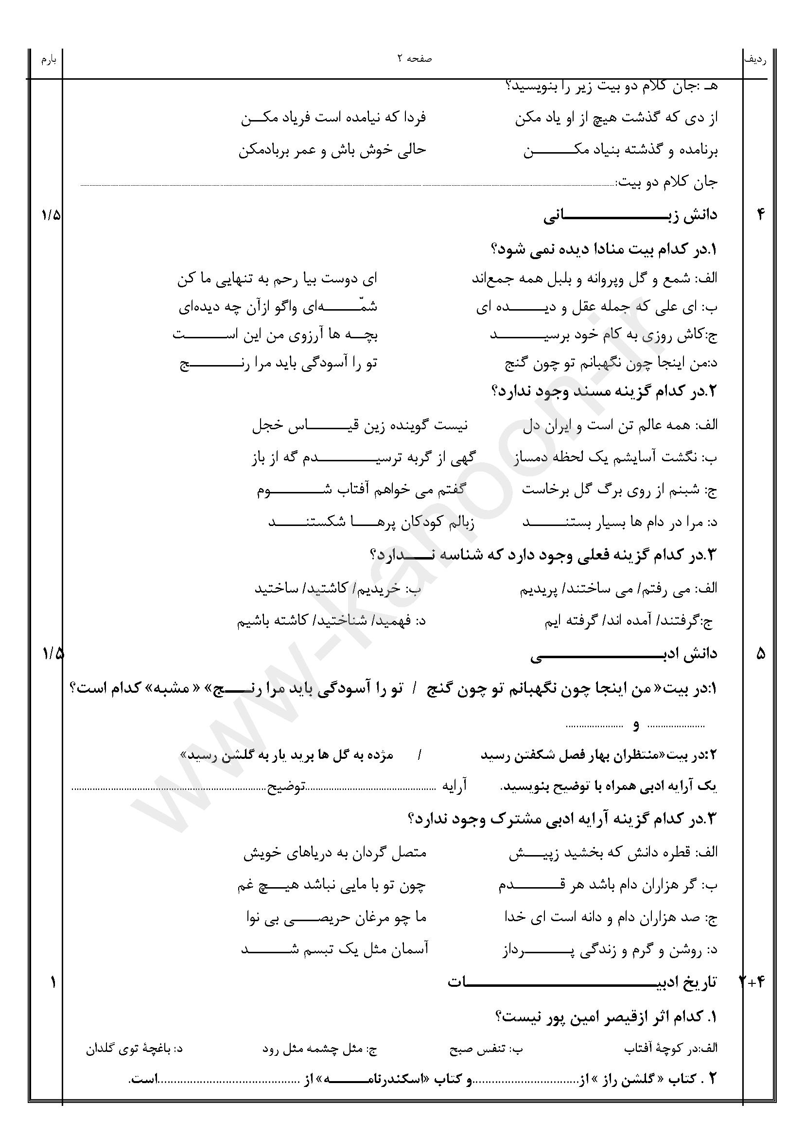 ما یک نمونه سوال در اینجا قرار دادیم تا با استاندارد آزمونها آشنا شوید. برای دسترسی به تمام نمونه سوالات نوبت اول روی عکس زیر کلیک کنید