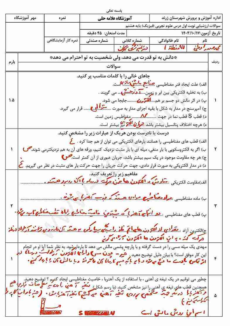 لینک مشاهده نمونه سوال های علوم هشتم