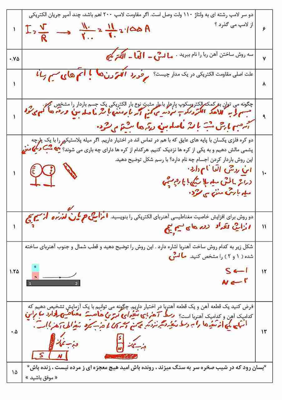 و اما پاسخ نامه تشریحی نمونه سوال