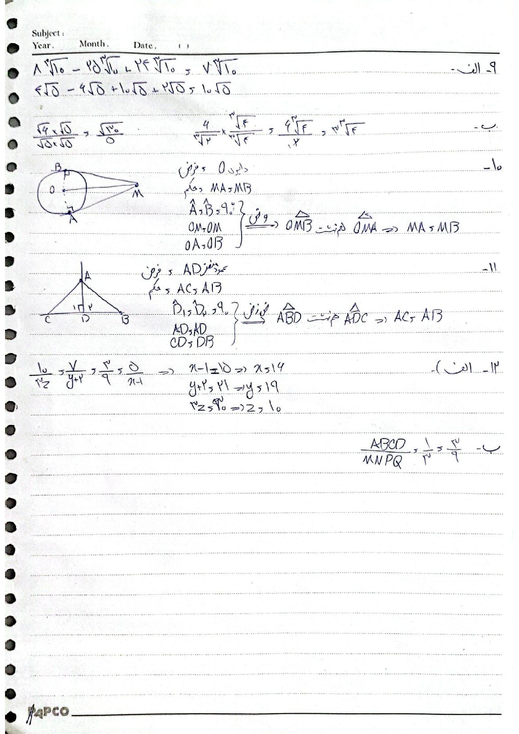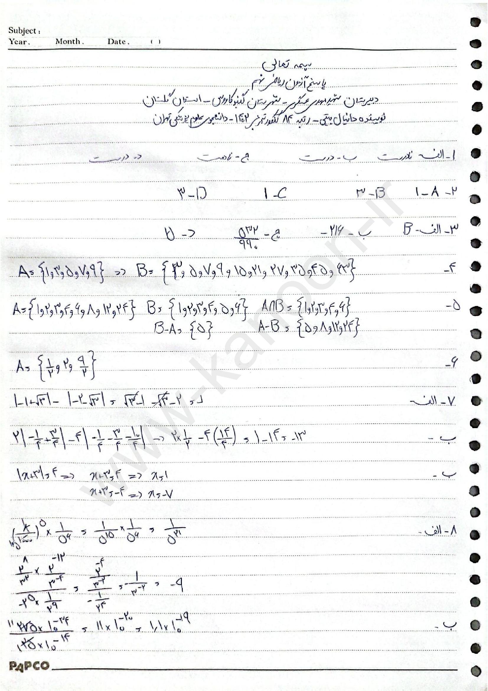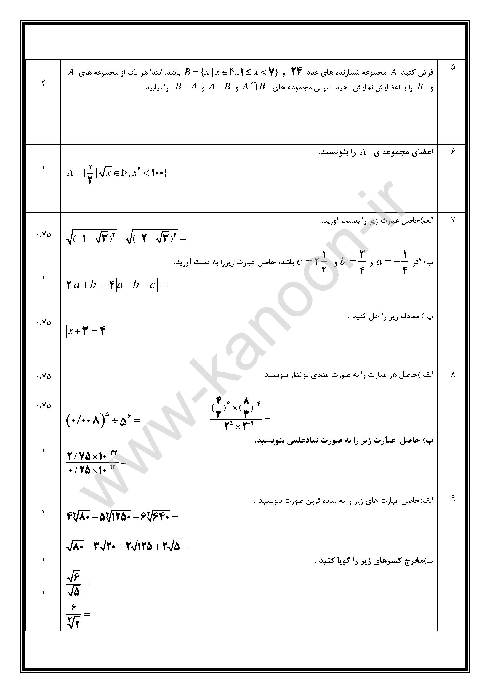 لینک مشاهده نمونه سوال های ریاضی نهم