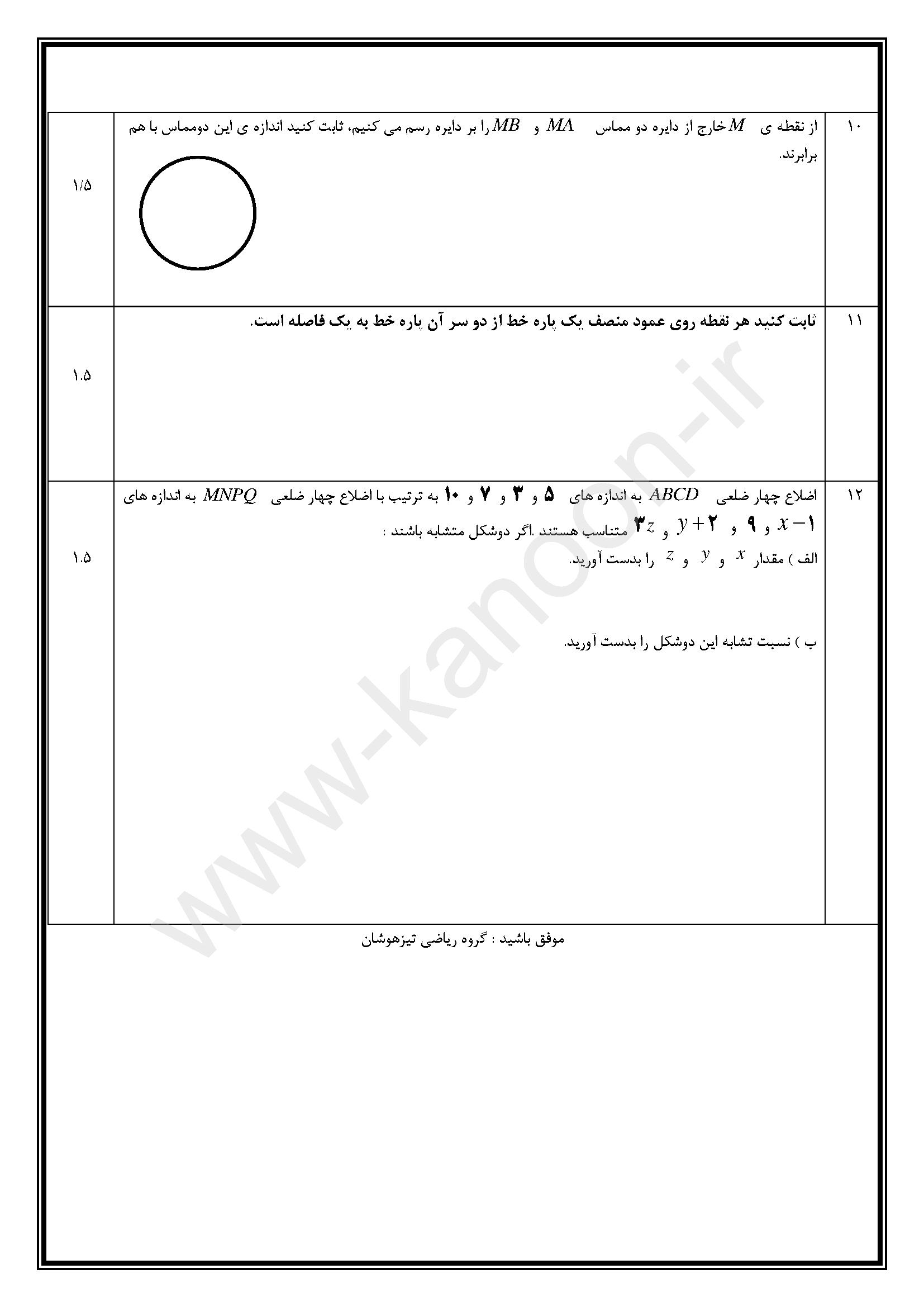 ما یک نمونه سوال در اینجا قرار دادیم تا با استاندارد آزمونها آشنا شوید. برای دسترسی به تمام نمونه سوالات نوبت اول روی عکس زیر کلیک کنید