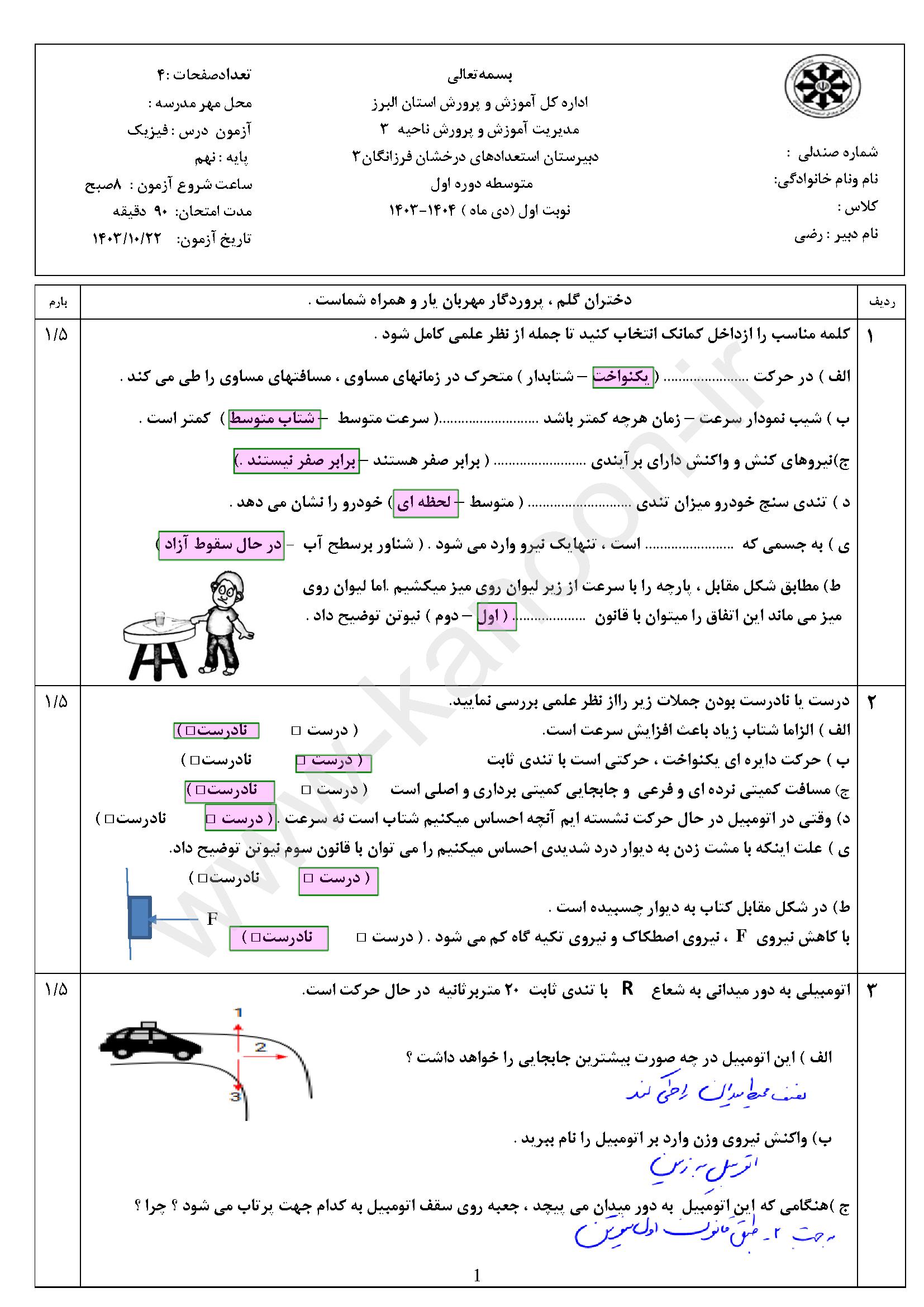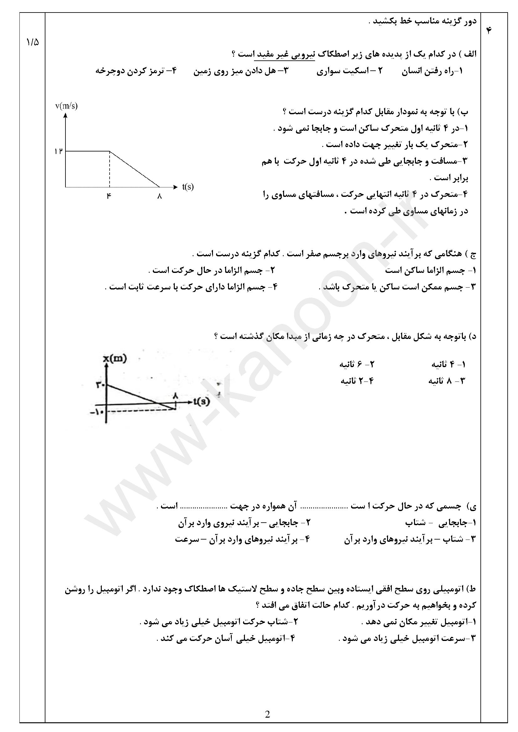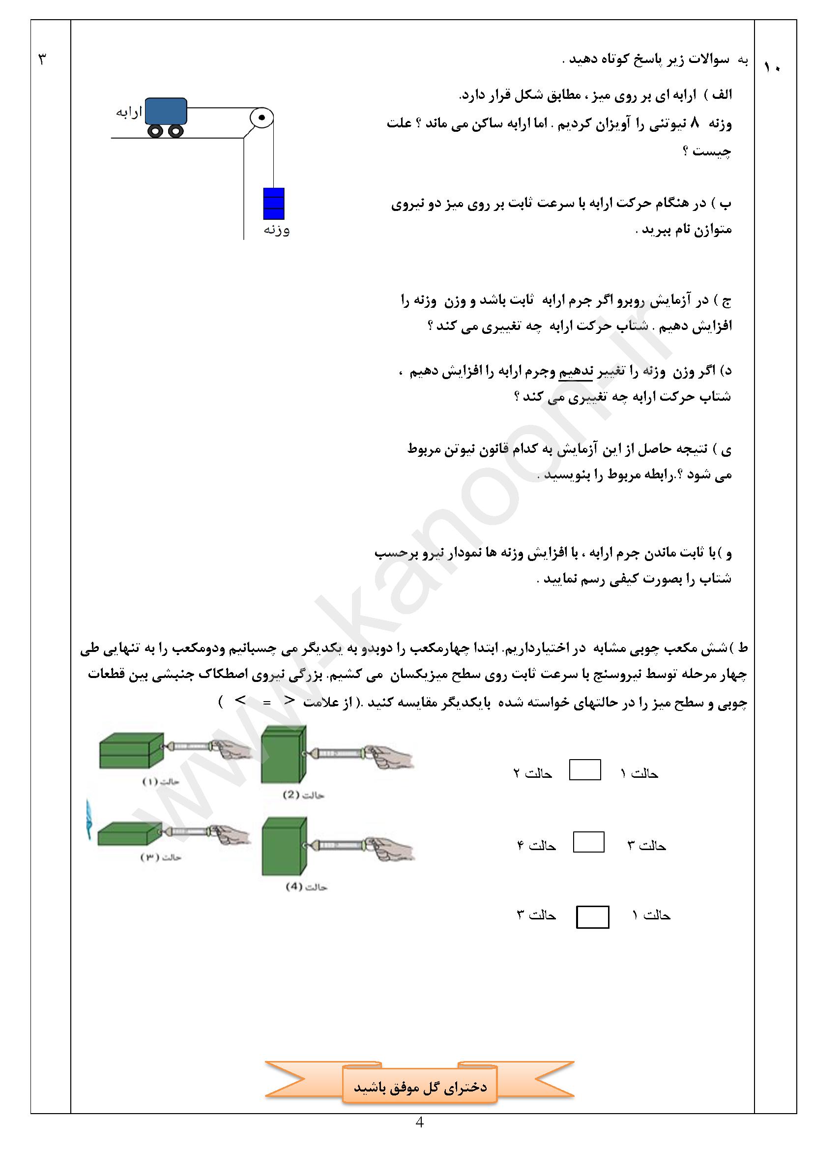 ما یک نمونه سوال در اینجا قرار دادیم تا با استاندارد آزمونها آشنا شوید. برای دسترسی به تمام نمونه سوالات نوبت اول روی عکس زیر کلیک کنید