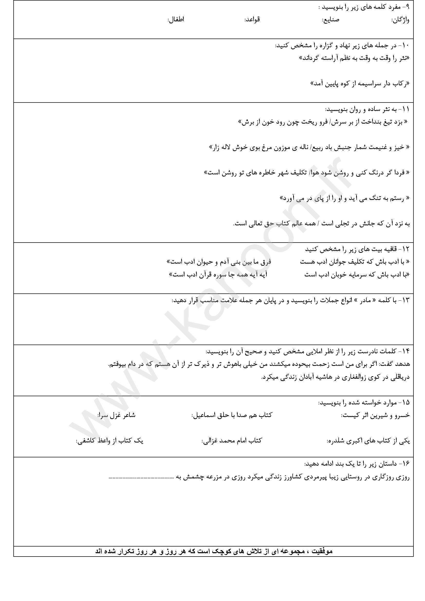 لینک مشاهده نمونه سوال های تمام درس های ششم