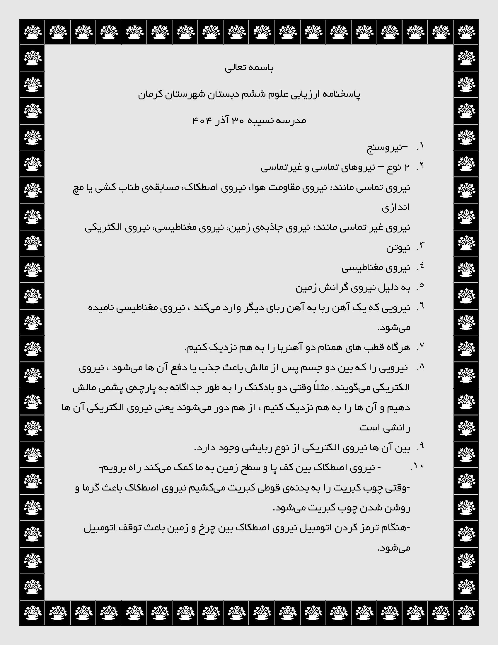 لینک مشاهده نمونه سوال های علوم ششم