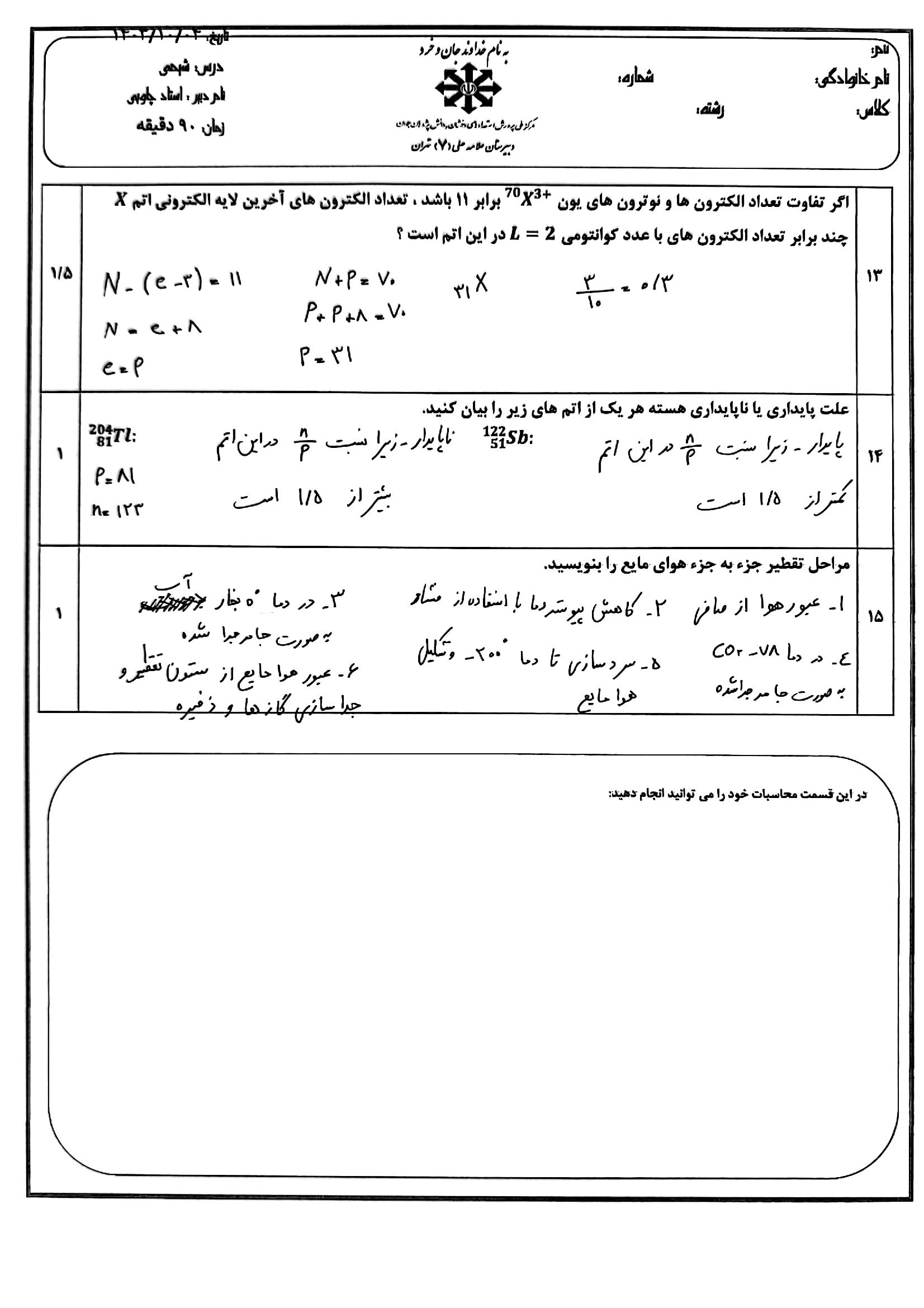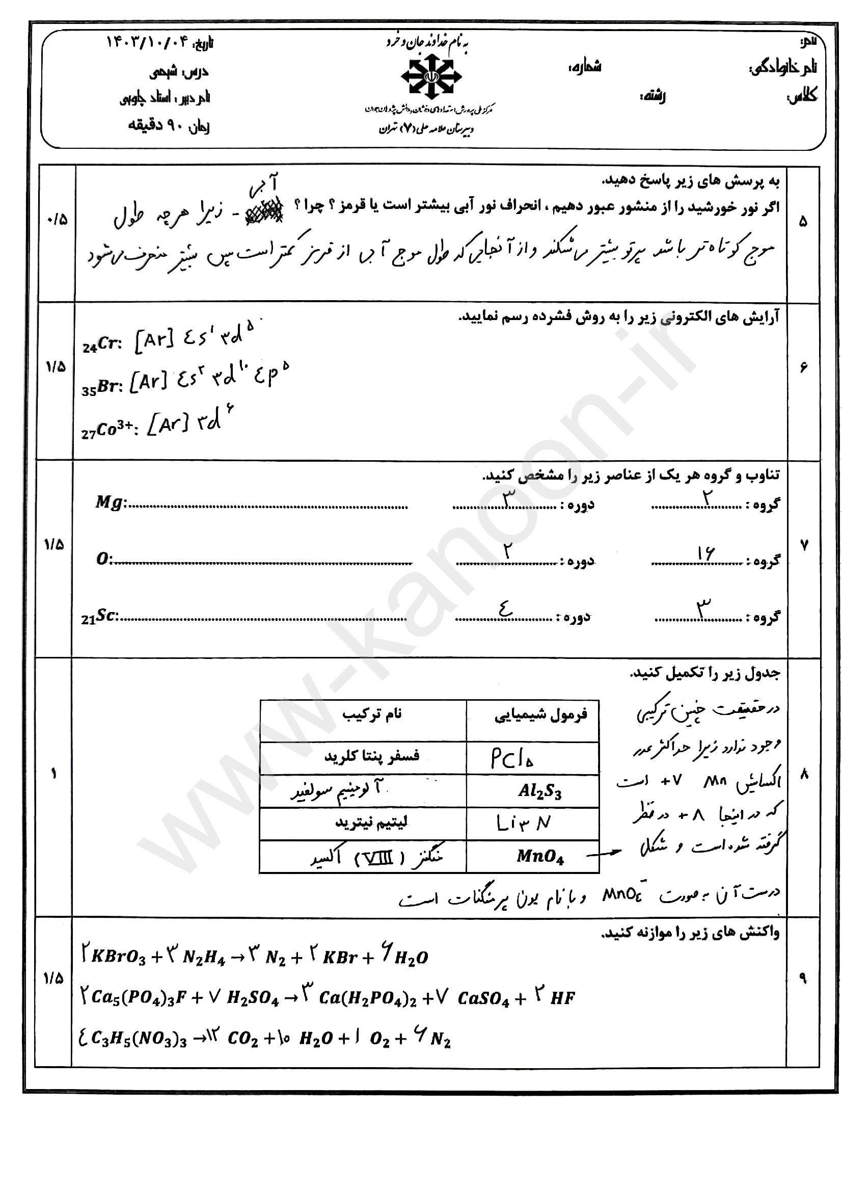 و اما پاسخ نامه تشریحی نمونه سوال