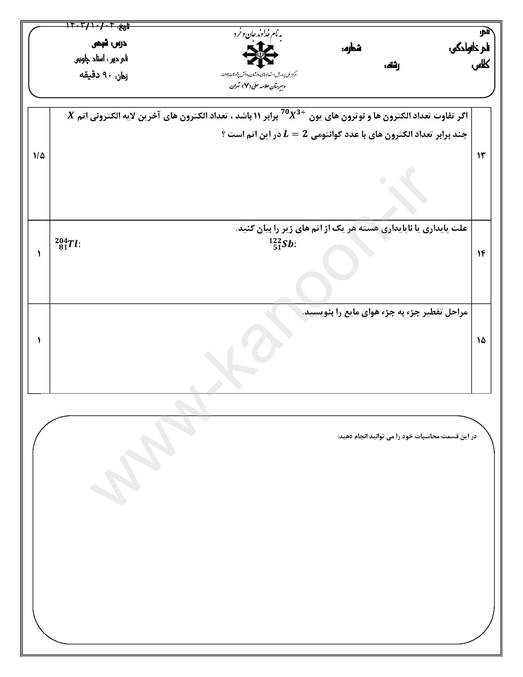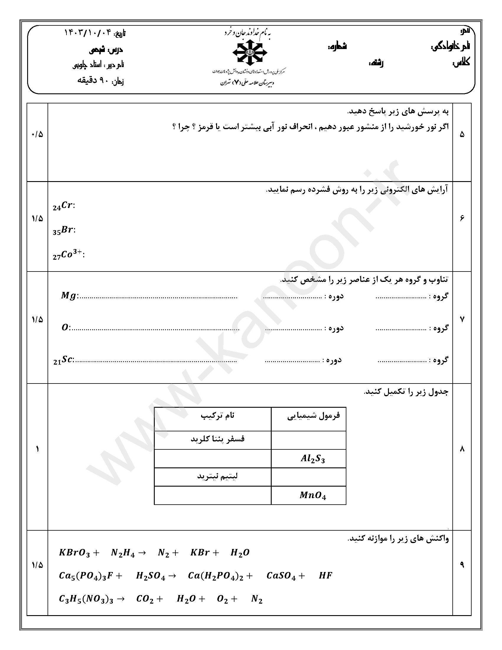 لینک مشاهده نمونه سوال های شیمی دهم ریاضی-تجربی