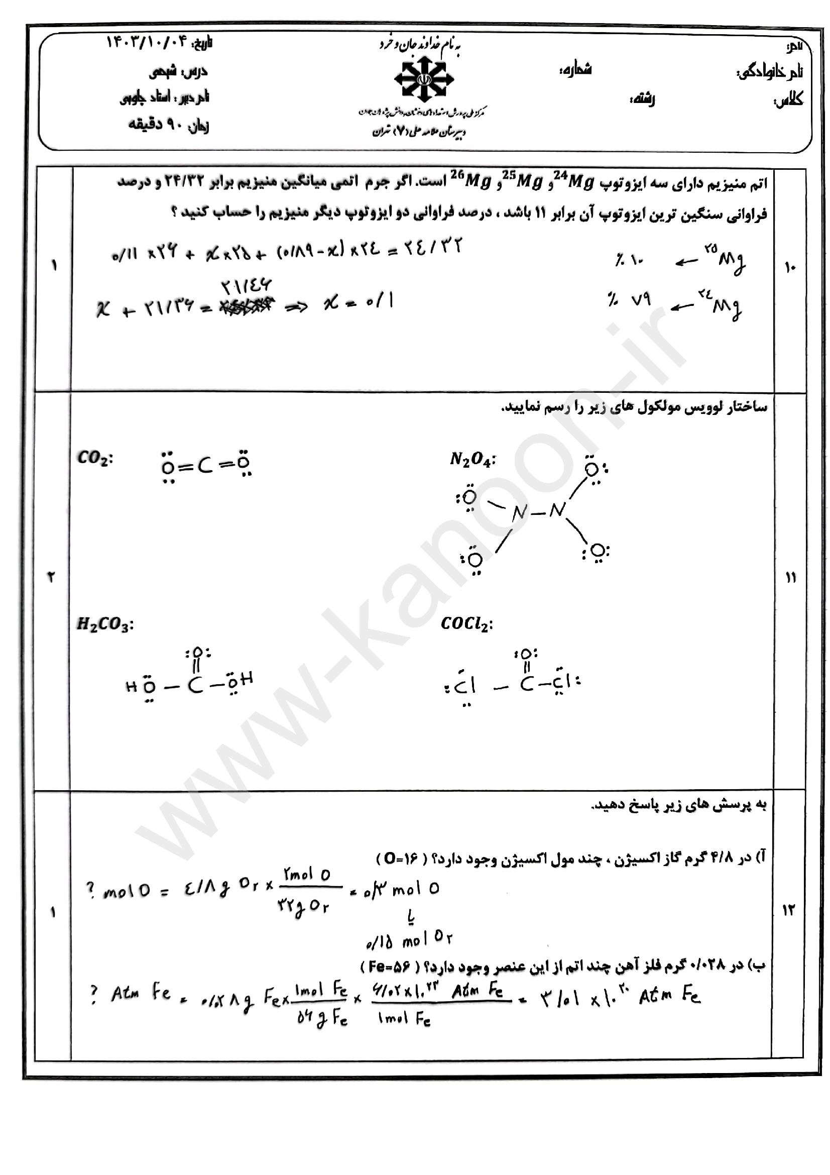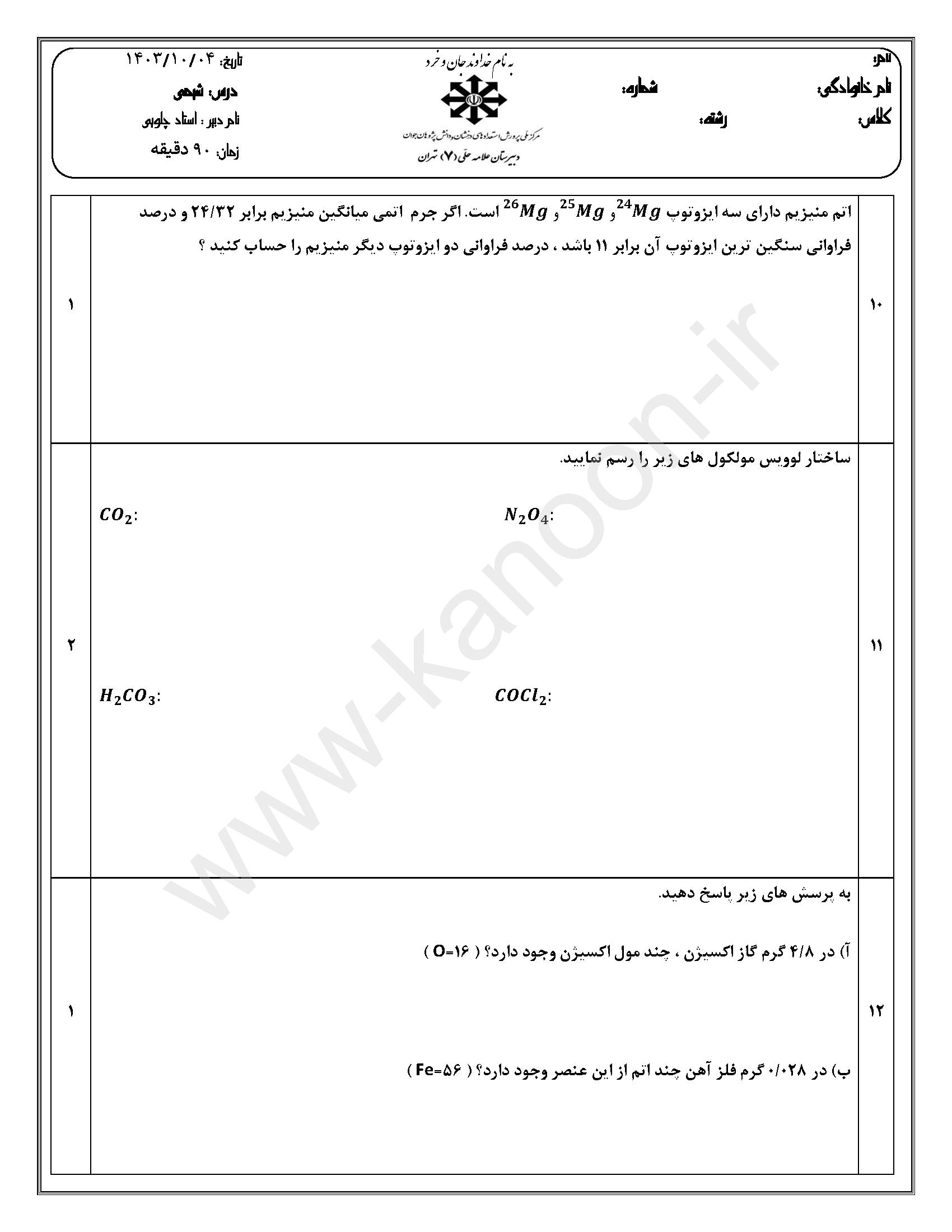 دسترسی به نمونه سوالات امتحانی شیمی دهم ریاضی-تجربی نوبت اول و نیم سال اول، بهترین راهکار برای آمادگی در امتحانات دیماه است. این مجموعه تخصصی شامل آرشیو کامل نمونه سوالات تیزهوشان، مدارس نمونه دولتی، مدارس غیرانتفاعی برتر و مدارس دولتی سراسر کشور میباشد.