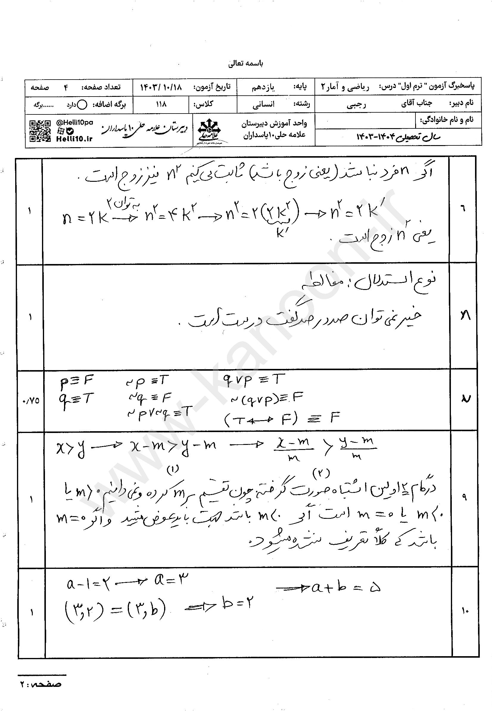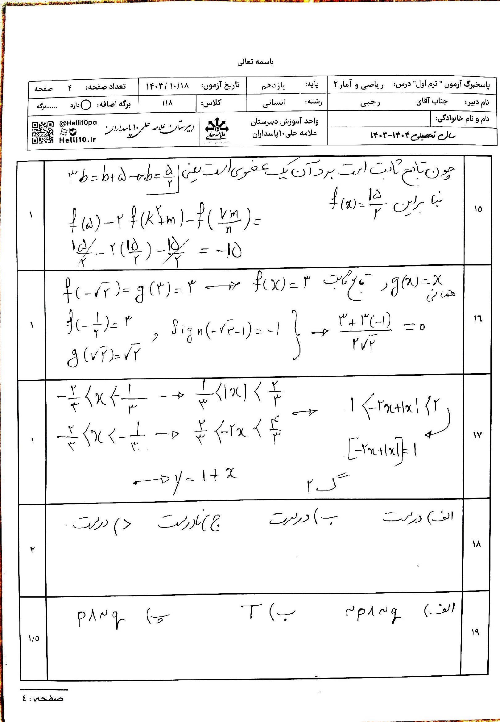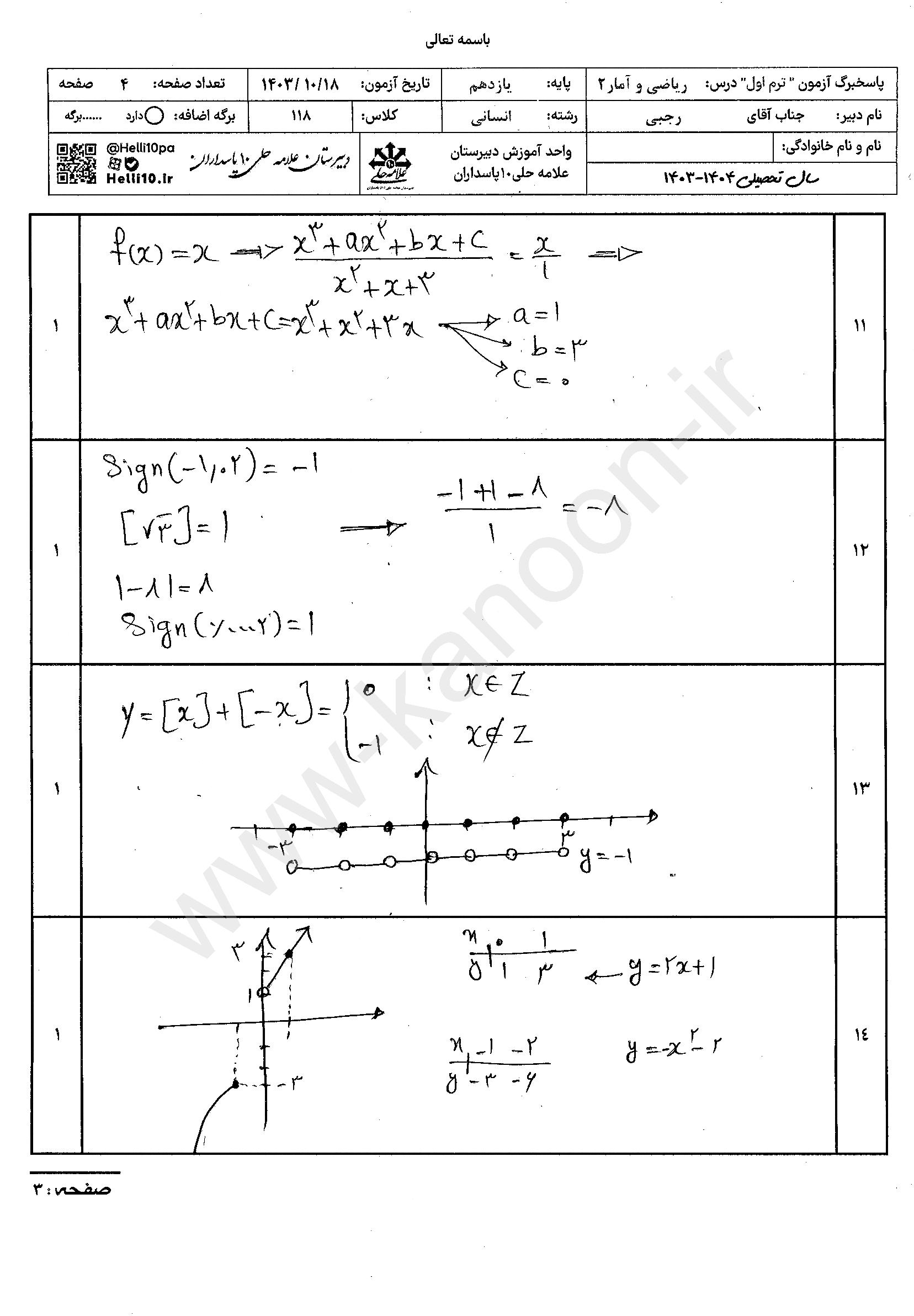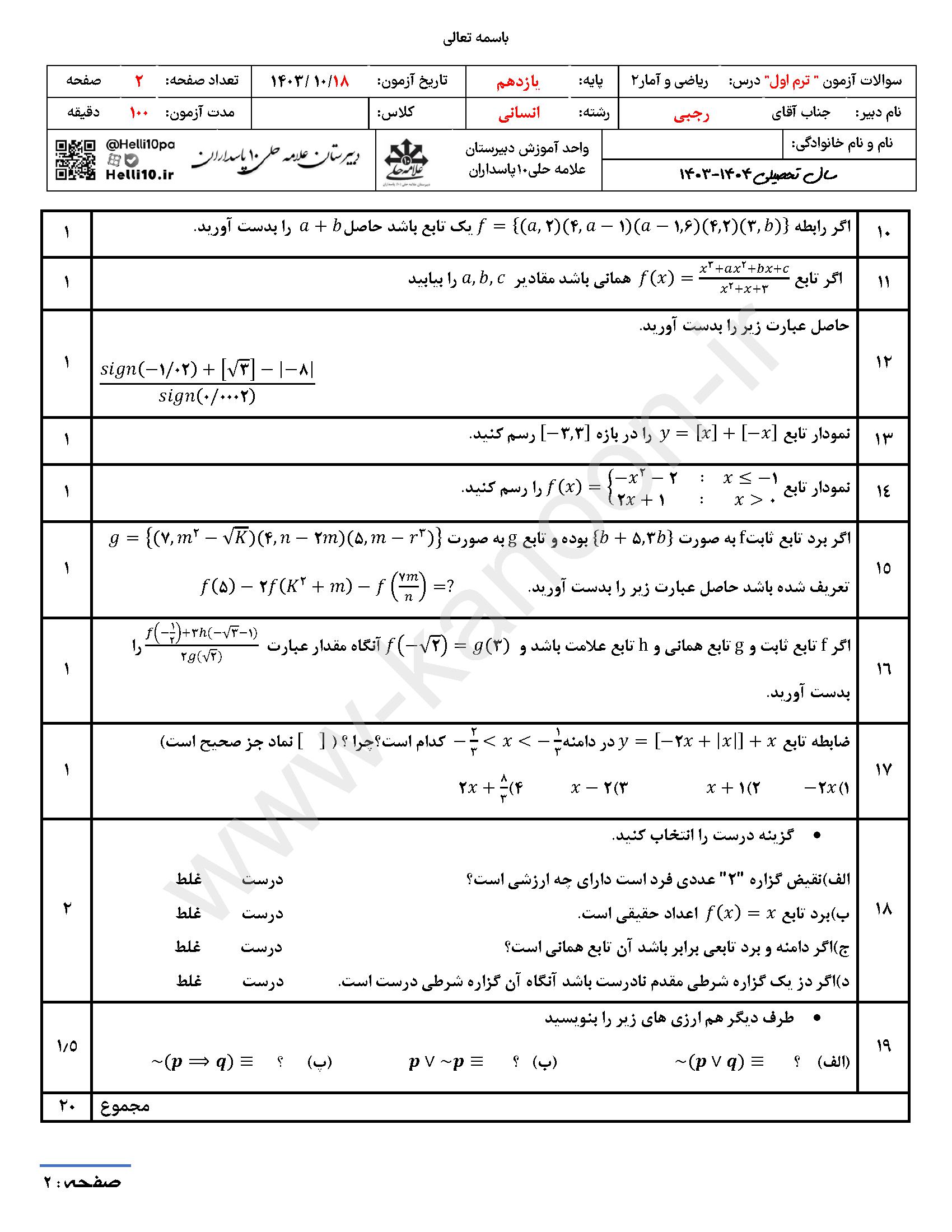 لینک مشاهده نمونه سوال ریاضی و آمار یازدهم انسانی