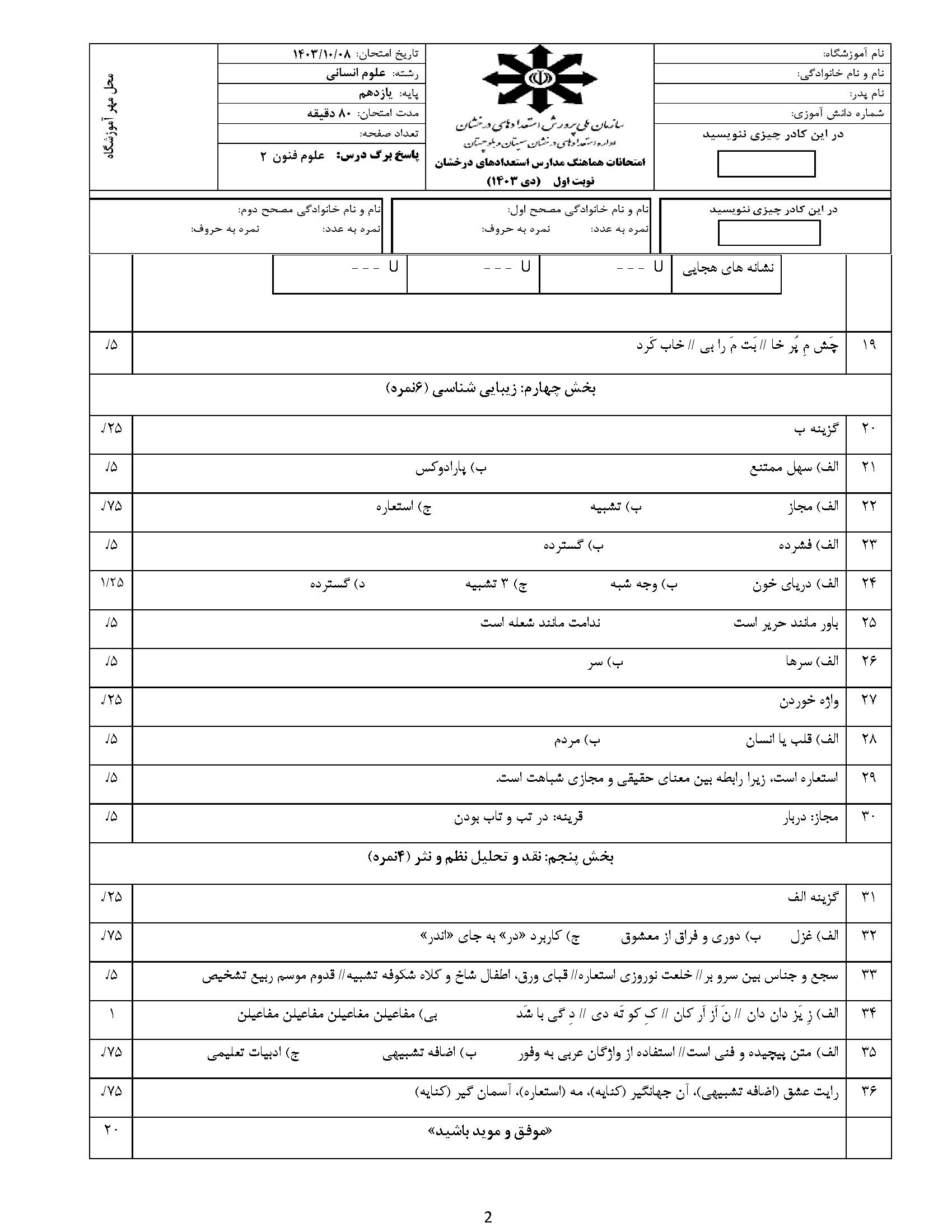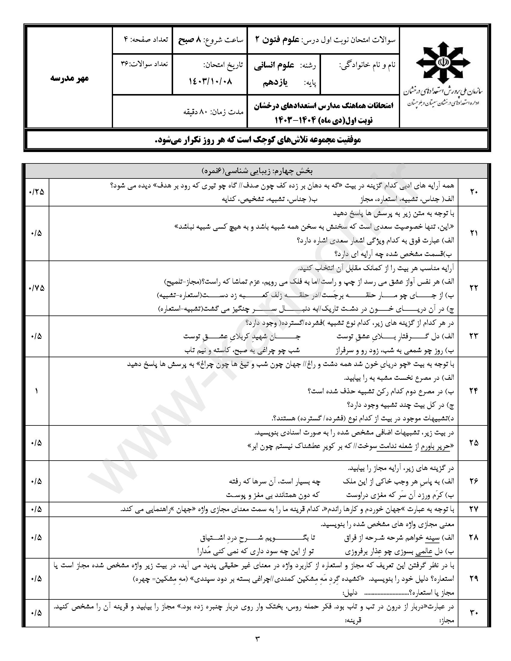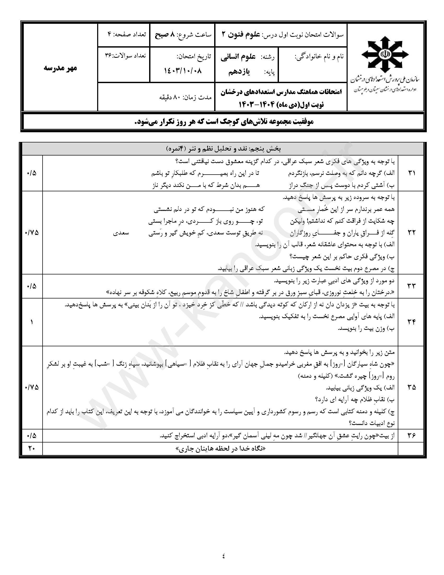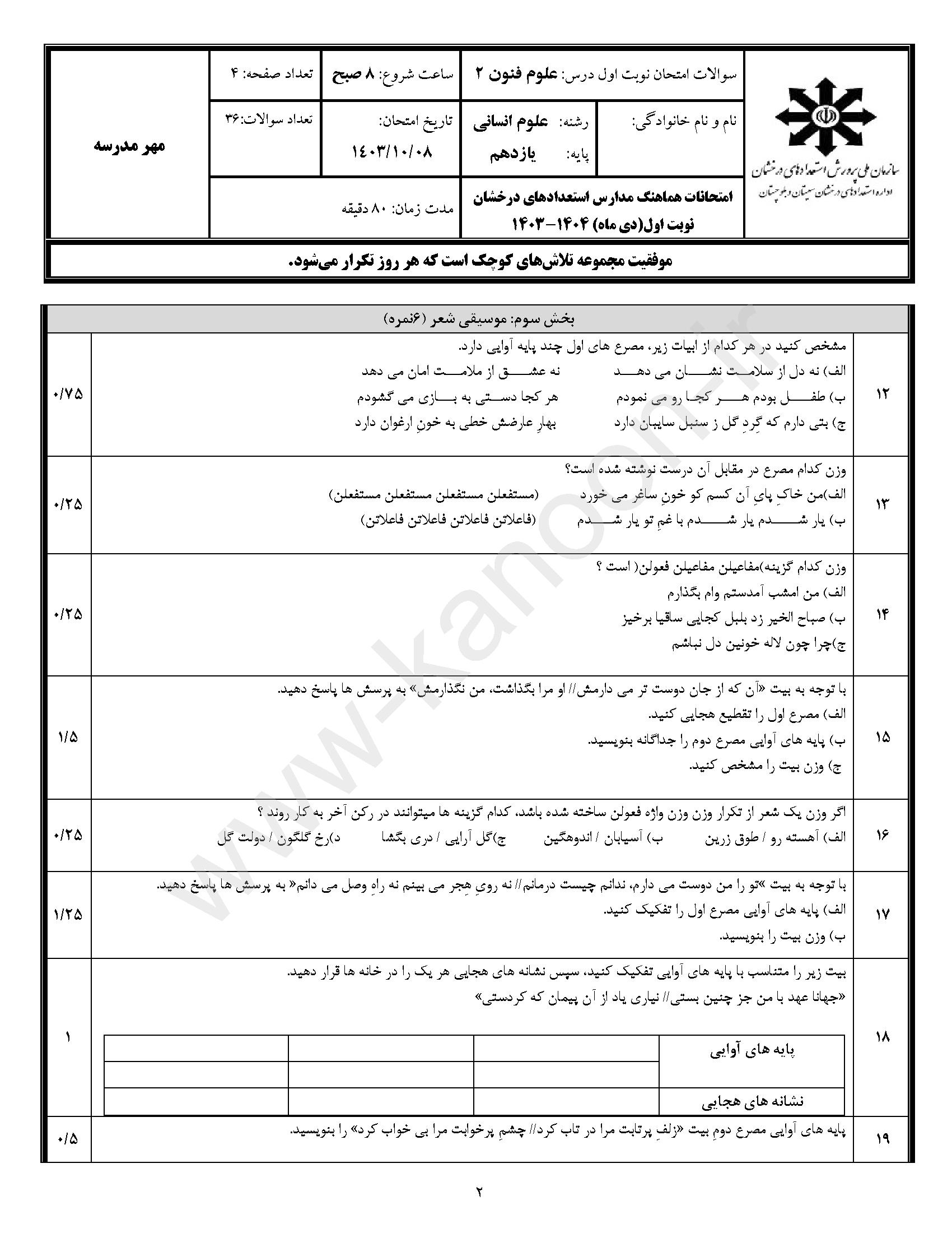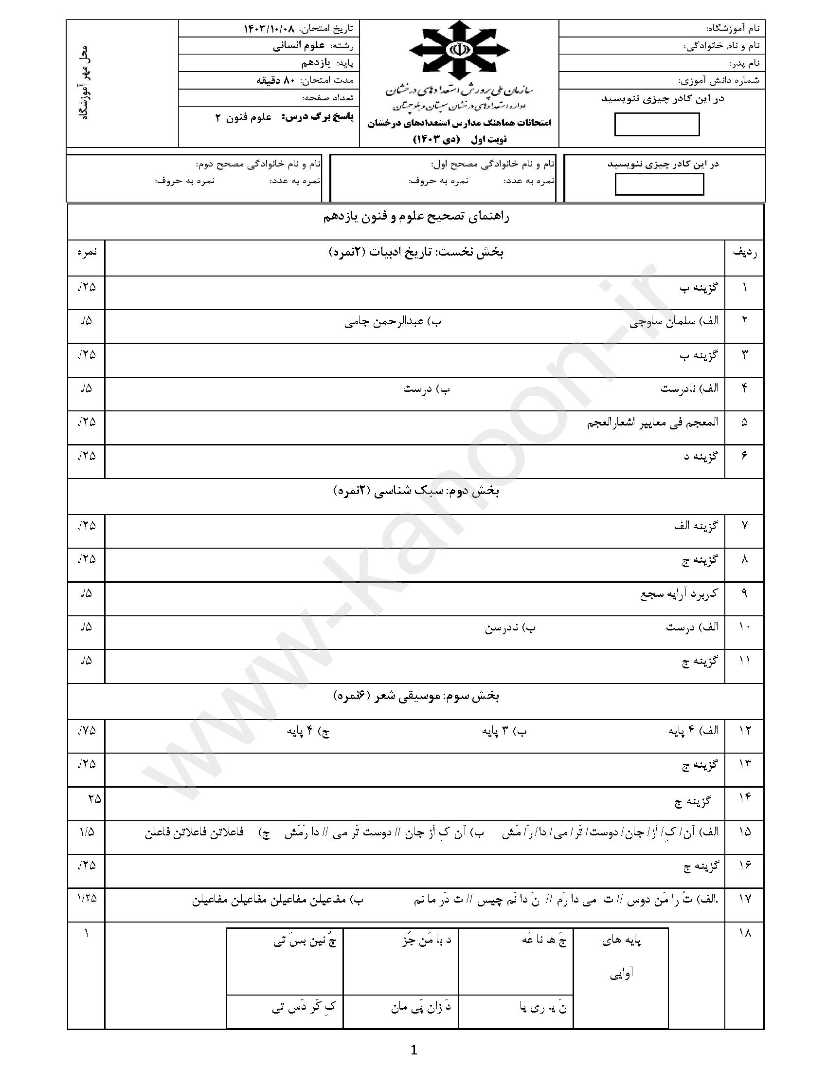 لینک مشاهده نمونه سوال علوم و فنون یازدهم انسانی
