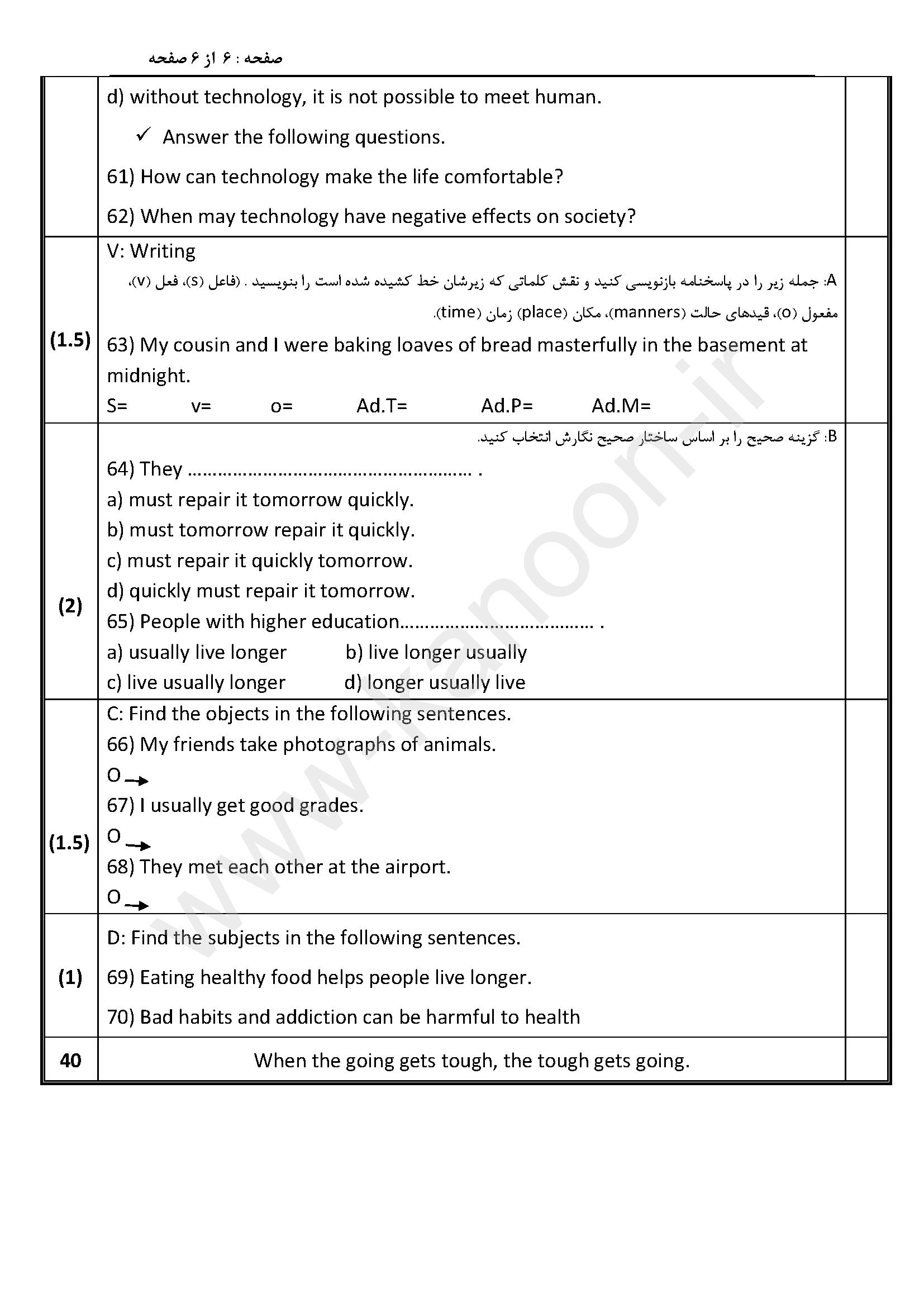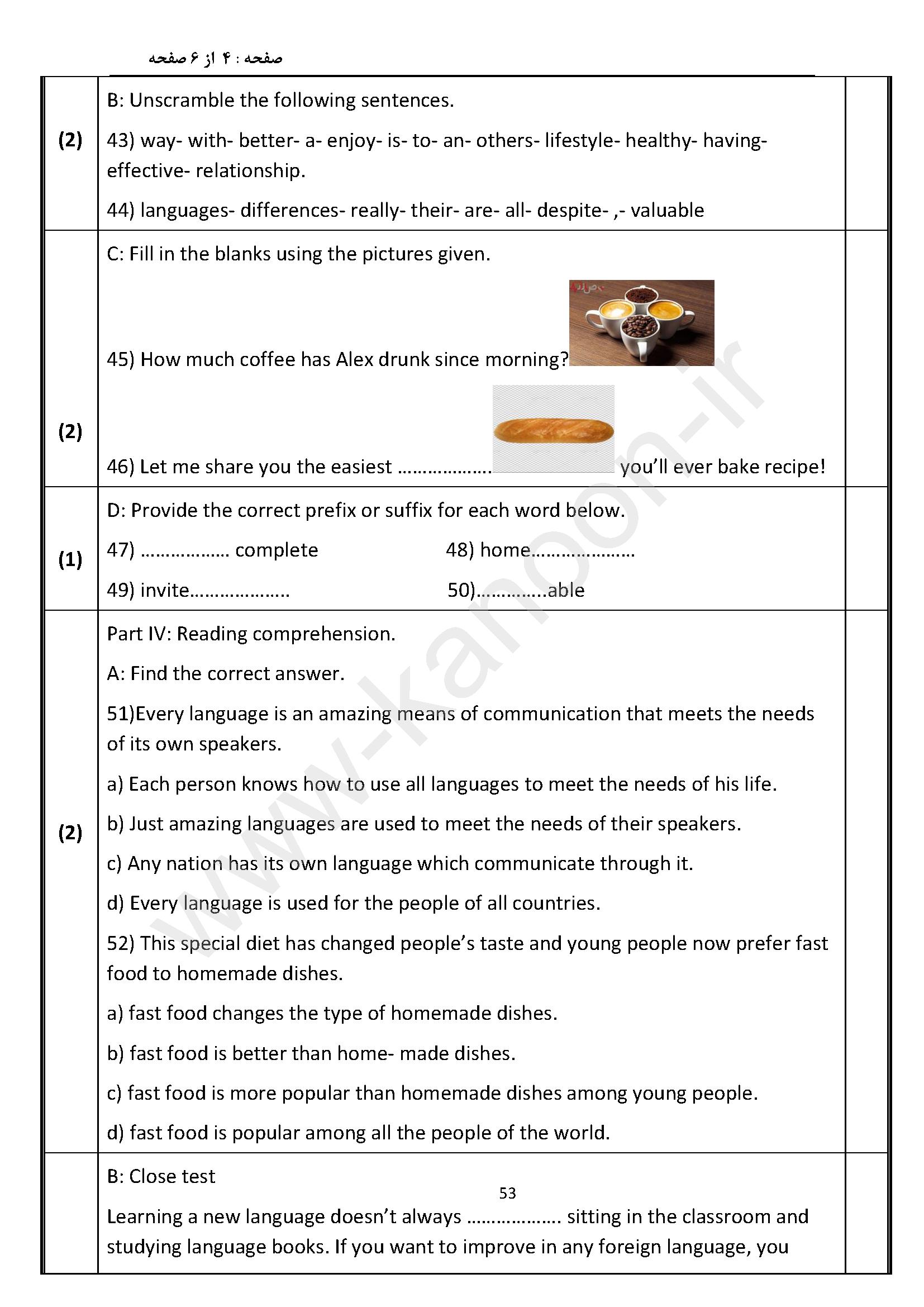 ما یک نمونه سوال در اینجا قرار دادیم تا با استاندارد آزمونها آشنا شوید. برای دسترسی به تمام نمونه سوالات نوبت اول روی عکس زیر کلیک کنید