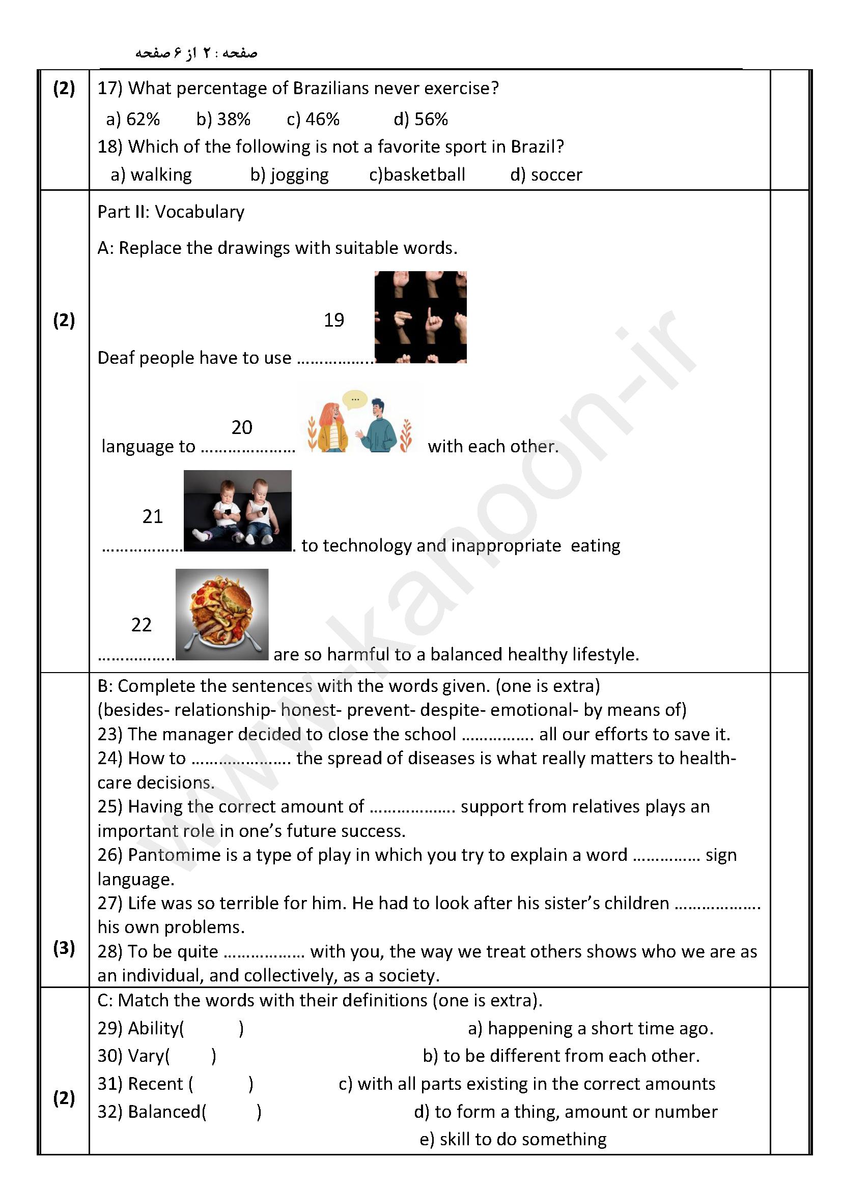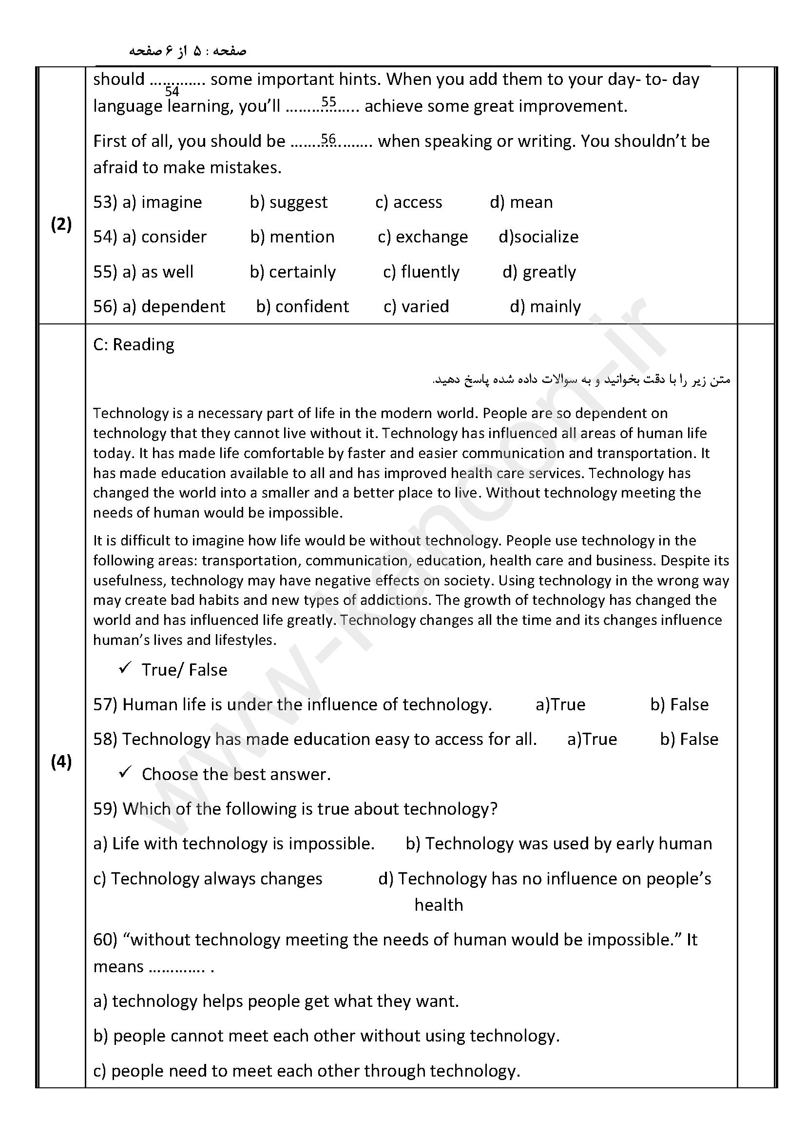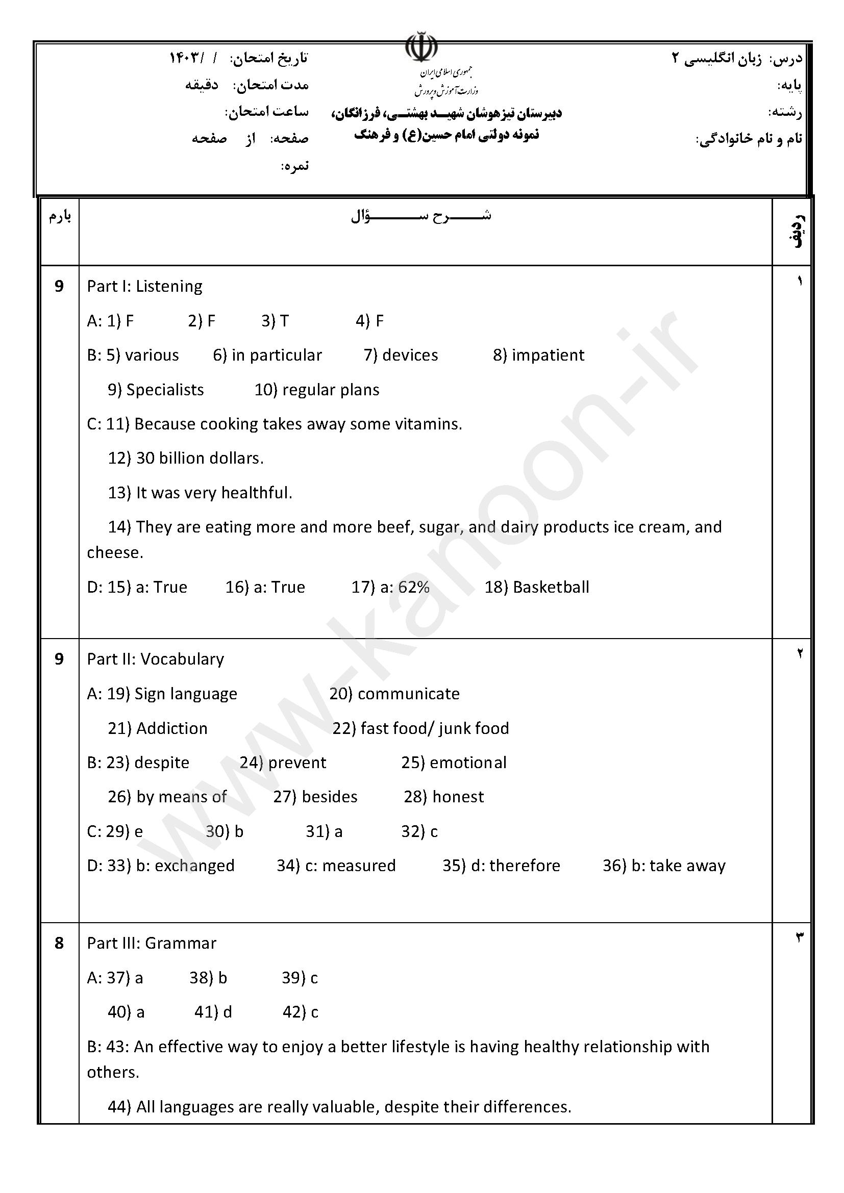 لینک مشاهده نمونه سوال زبان یازدهم تجربی - ریاضی