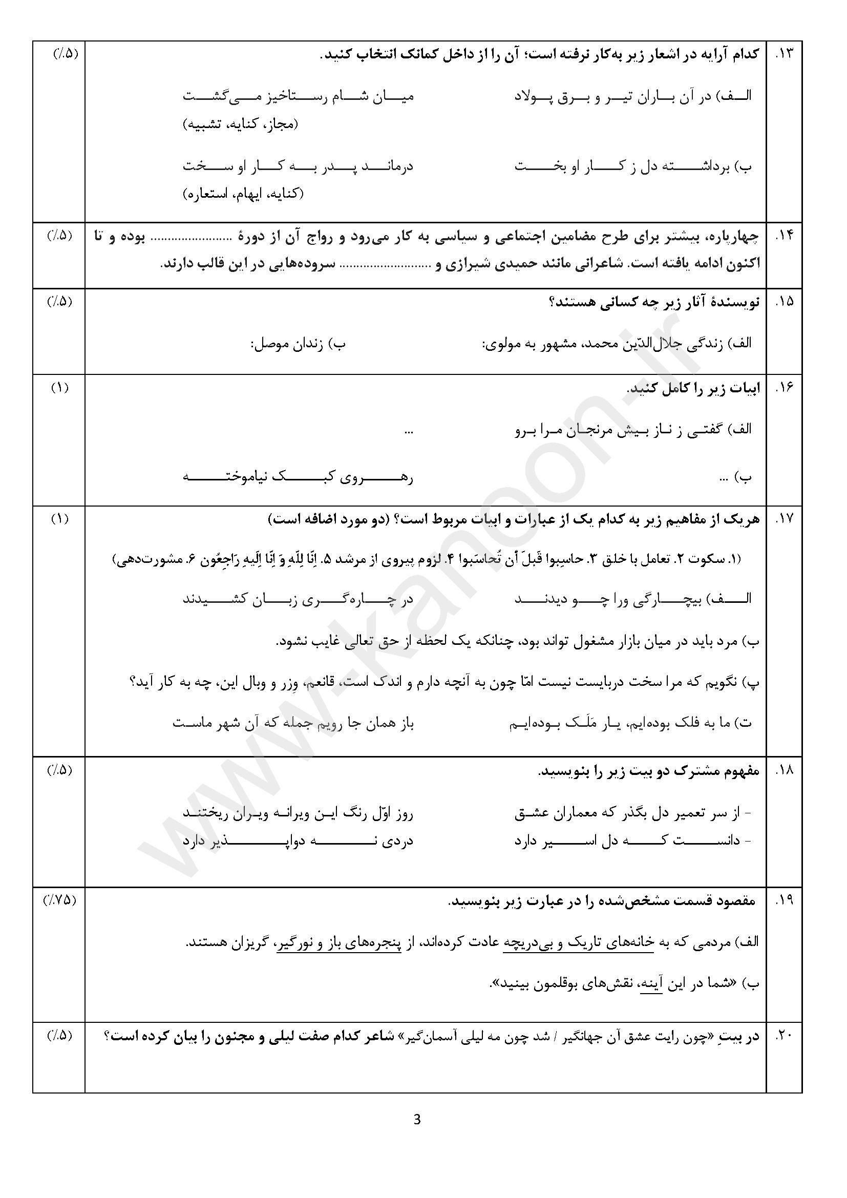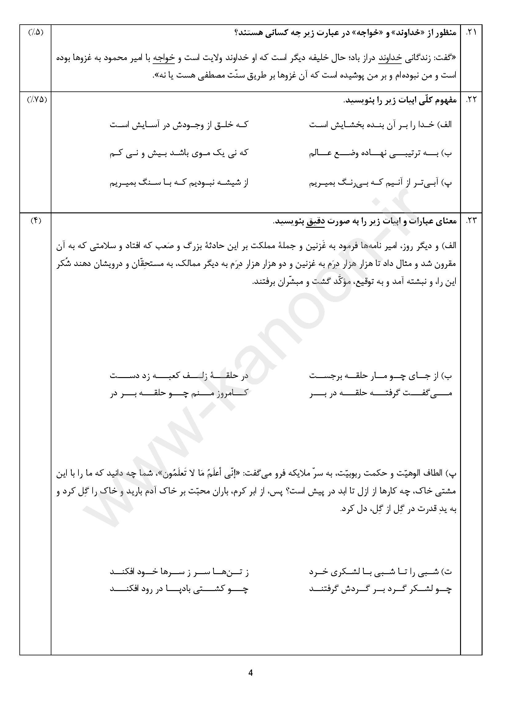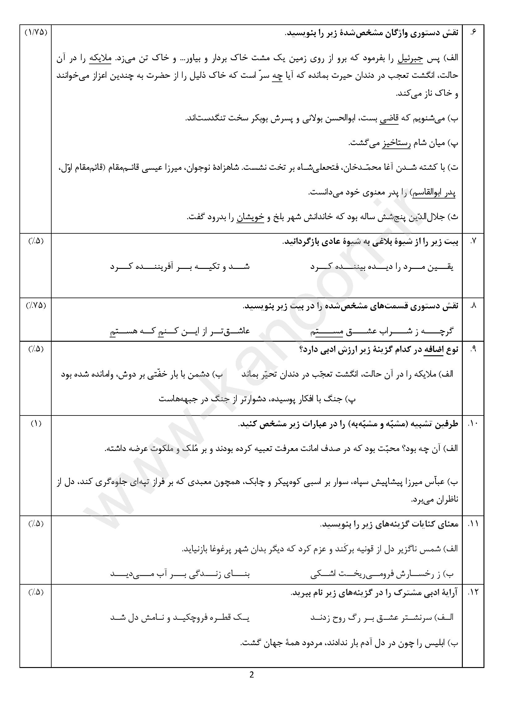 لینک مشاهده نمونه سوال فارسی یازدهم تجربی - ریاضی
