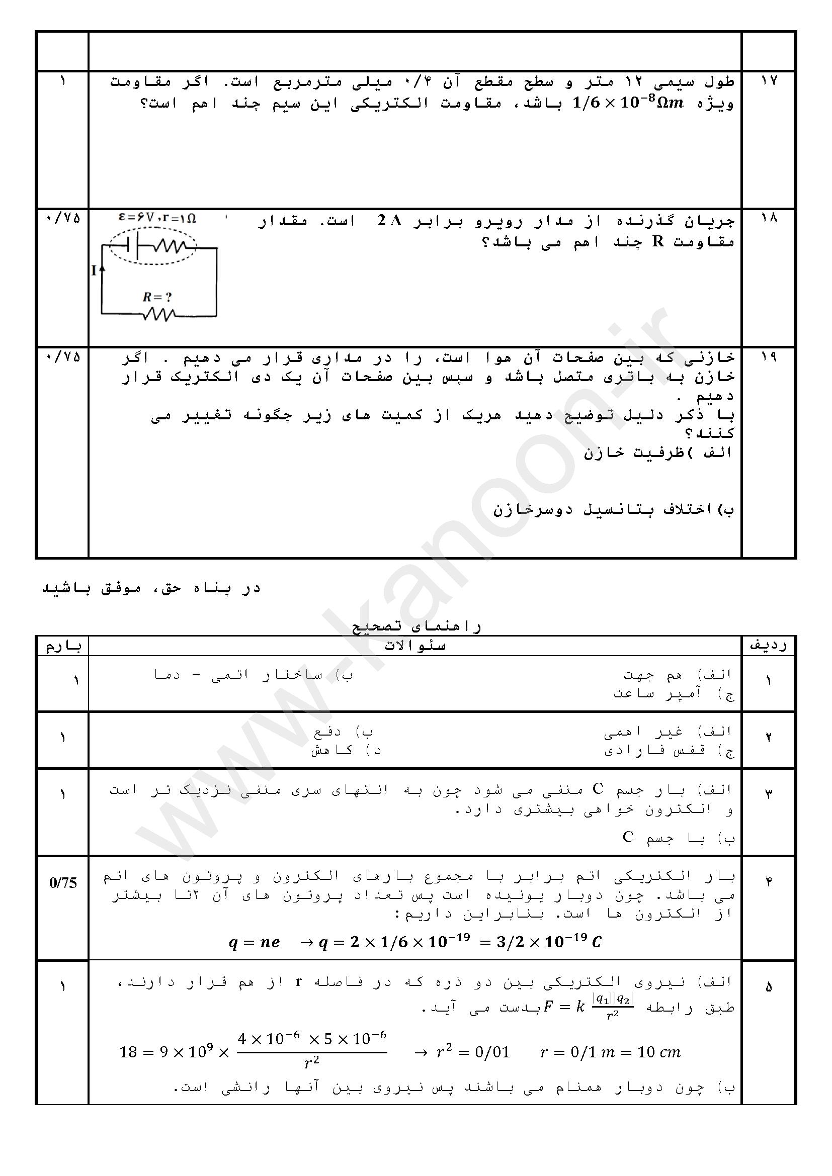 لینک مشاهده نمونه سوال فیزیک یازدهم تجربی