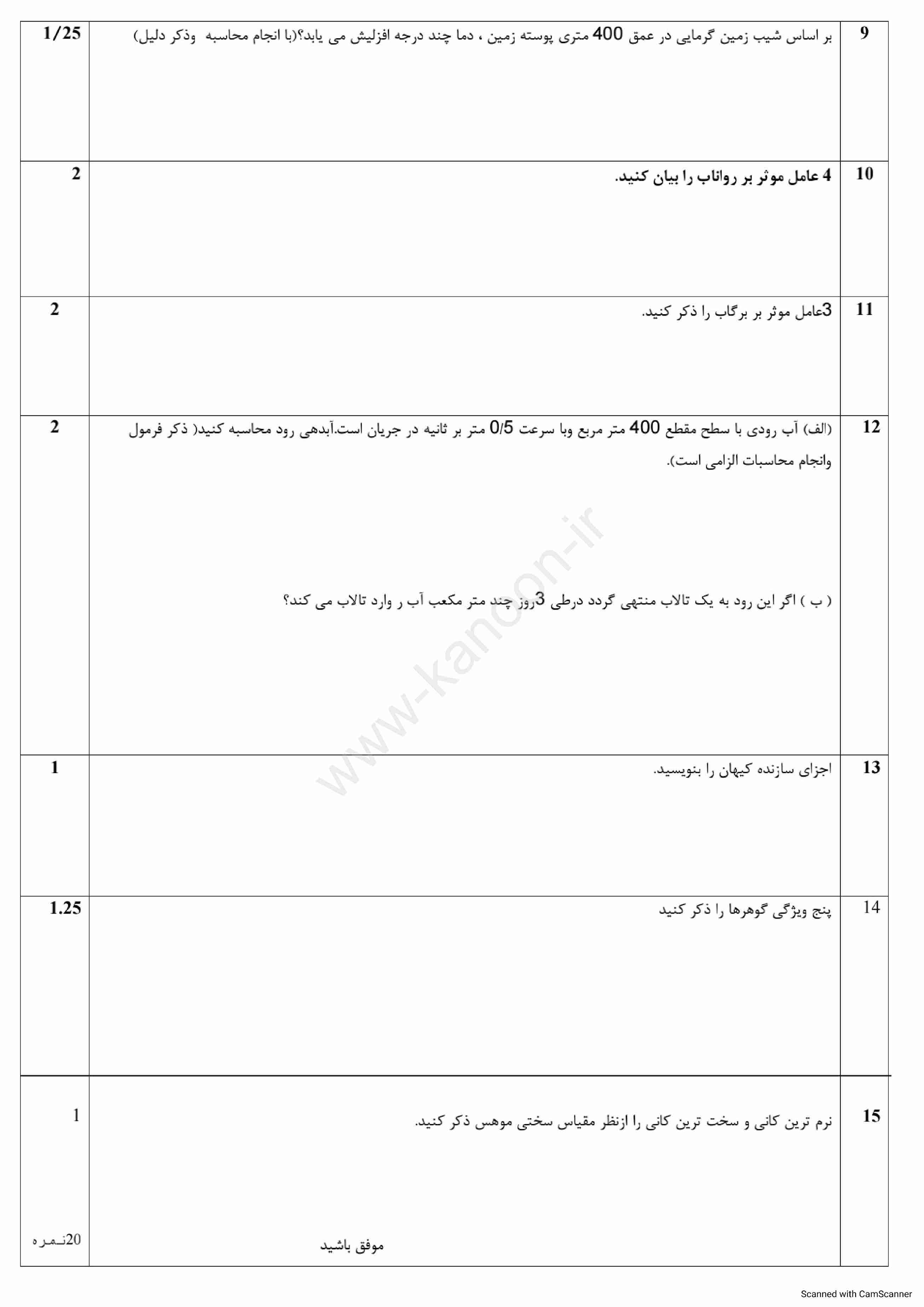 لینک مشاهده نمونه سوال زمین شناسی یازدهم تجربی