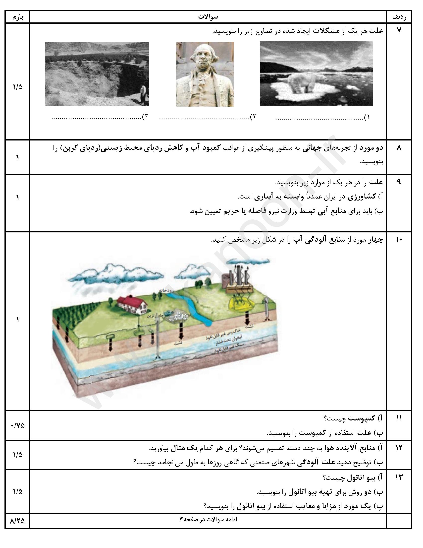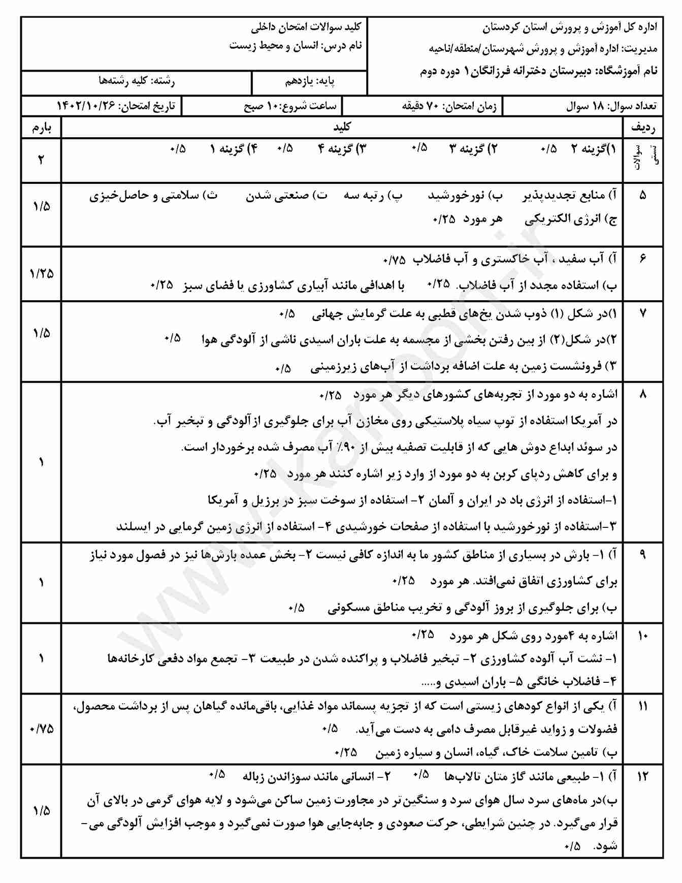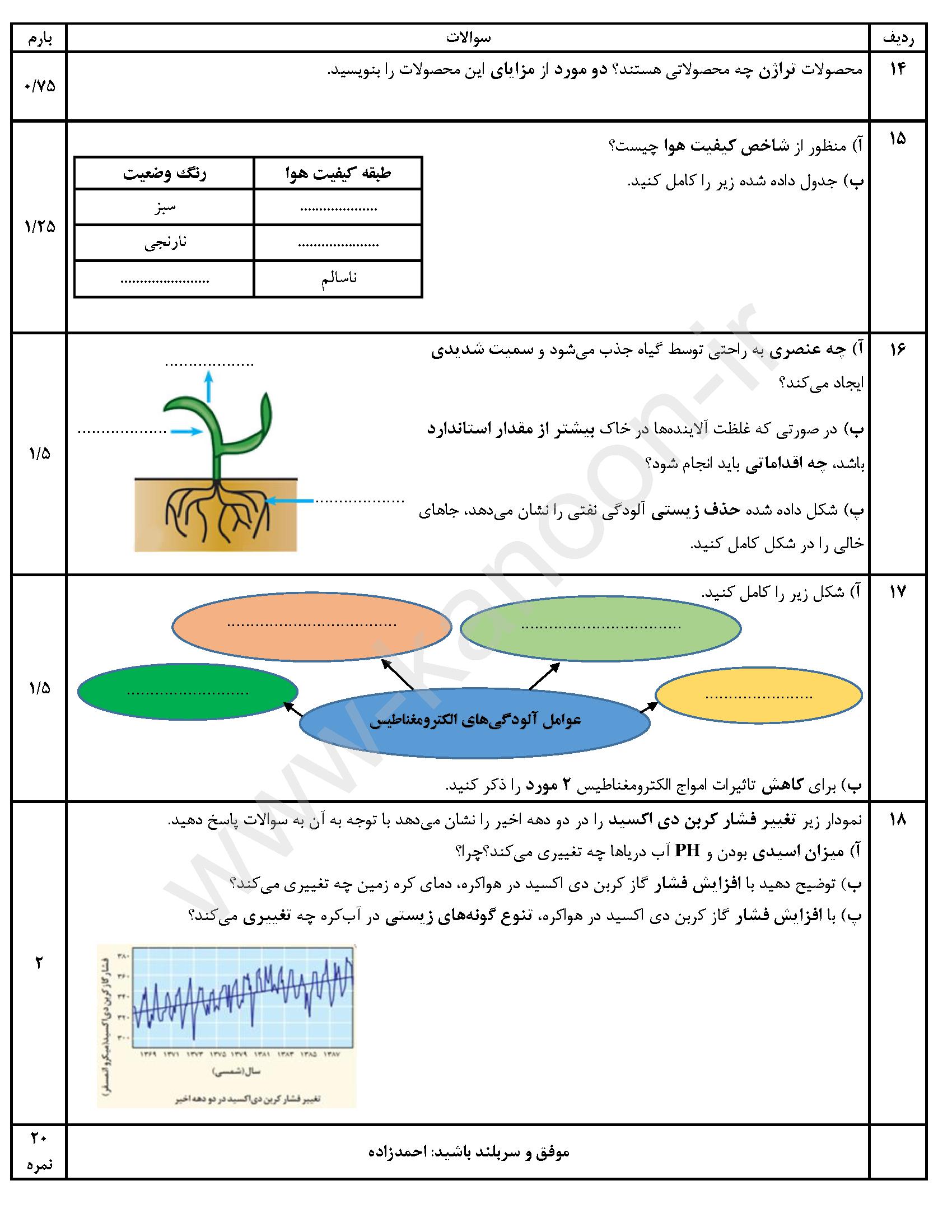 لینک مشاهده نمونه سوال انسان و محیط زیست یازدهم تجربی