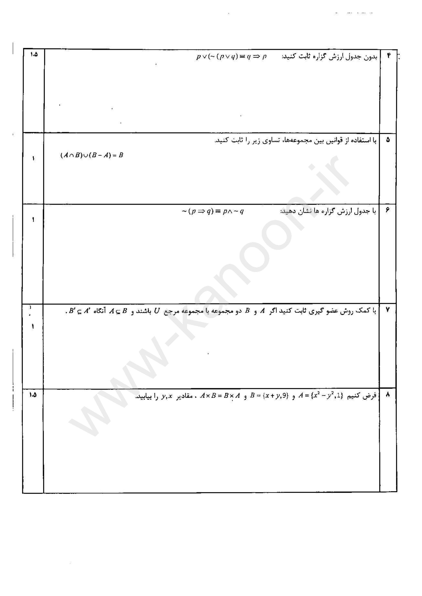 لینک مشاهده نمونه سوال های تمام درس های یازدهم ریاضی