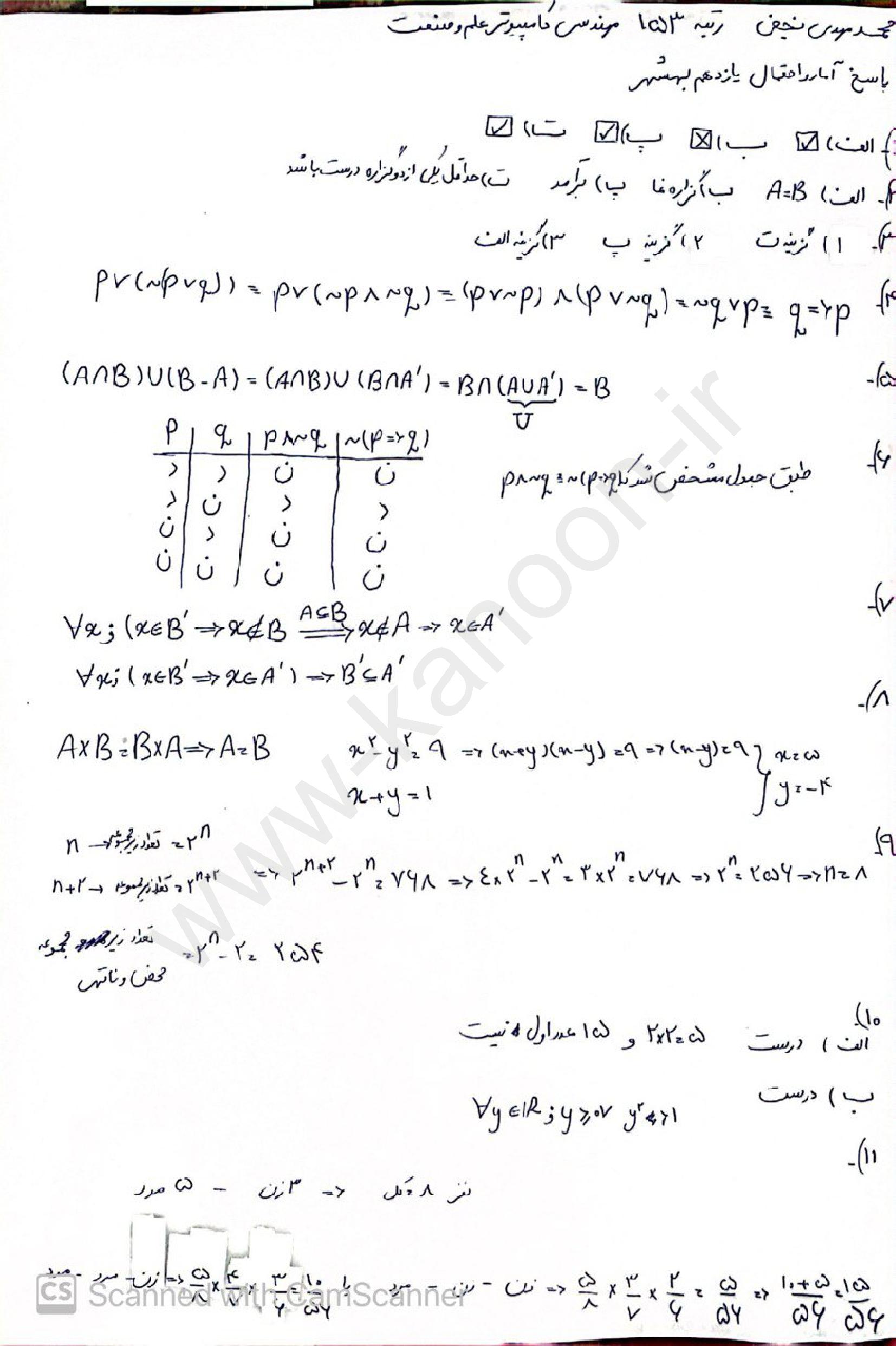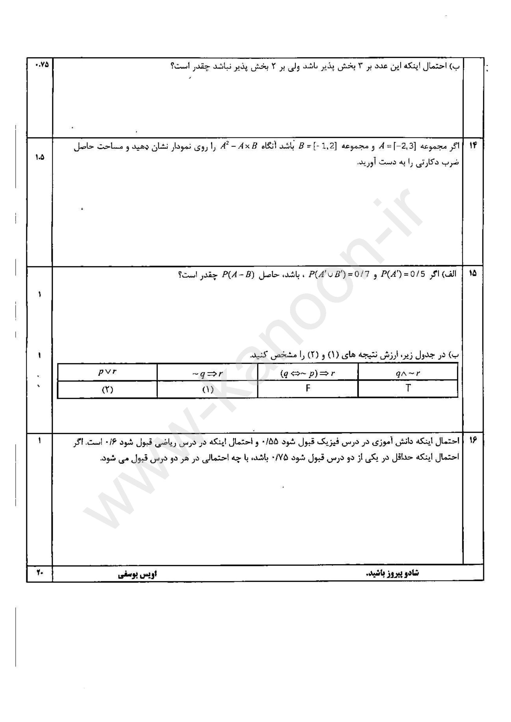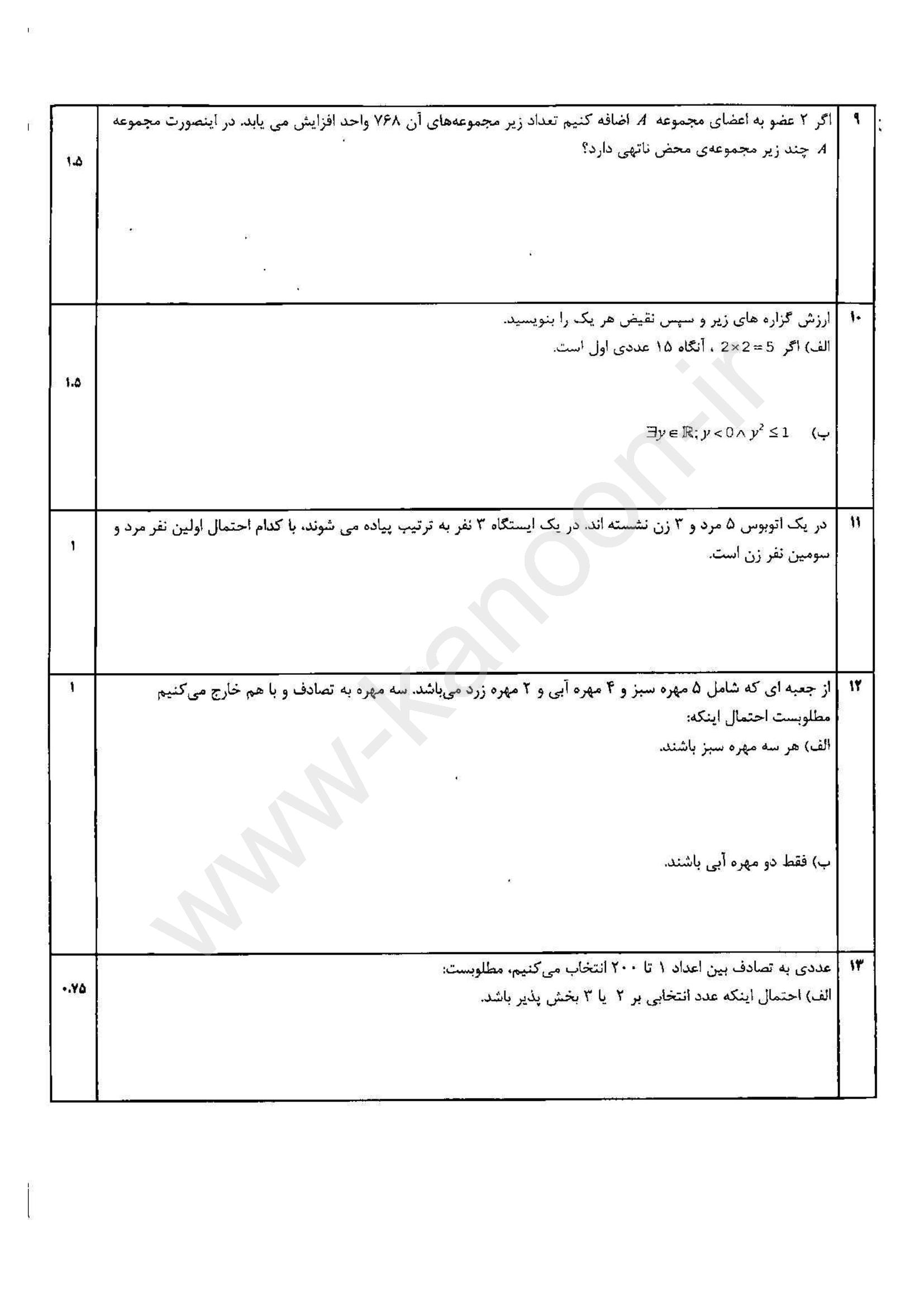 لینک مشاهده نمونه سوال آمار و احتمال یازدهم ریاضی