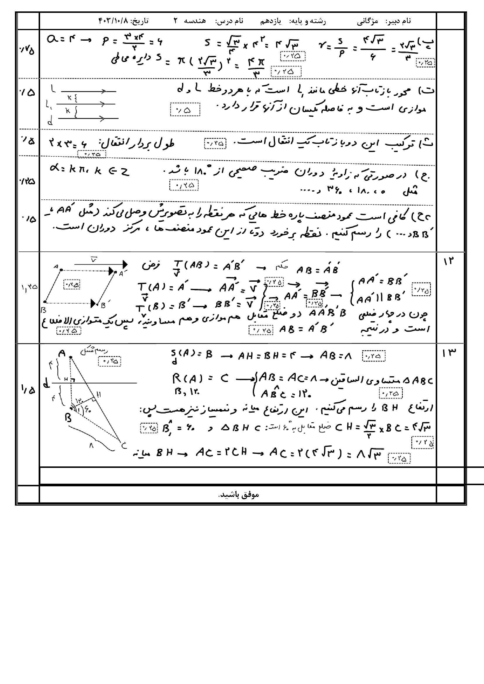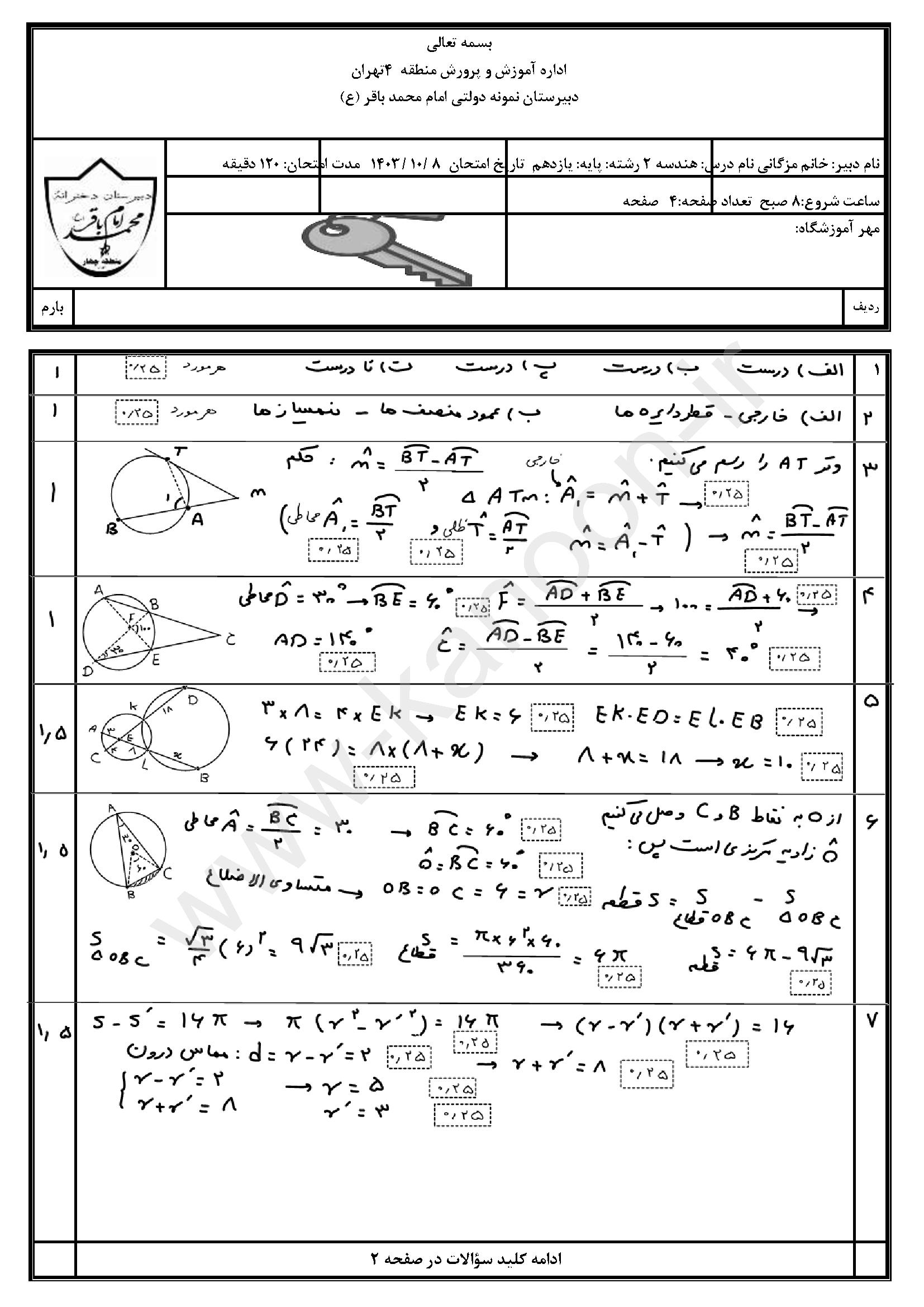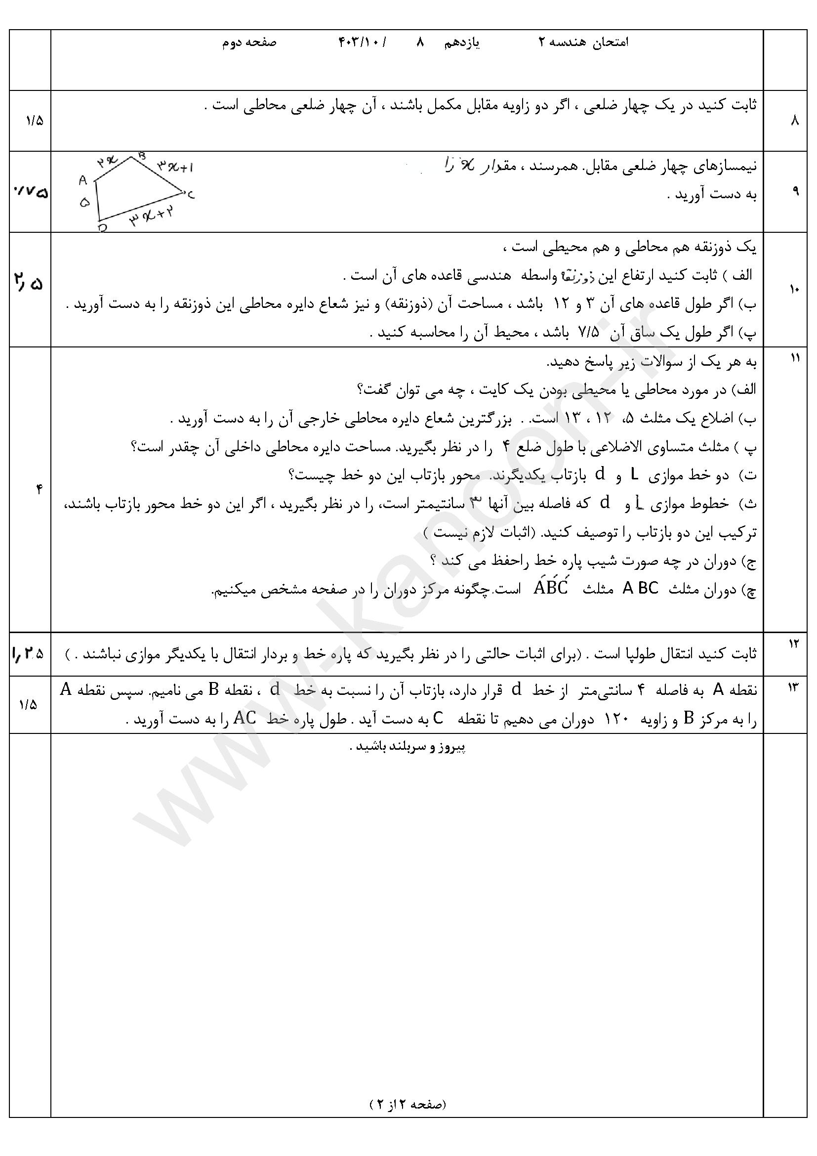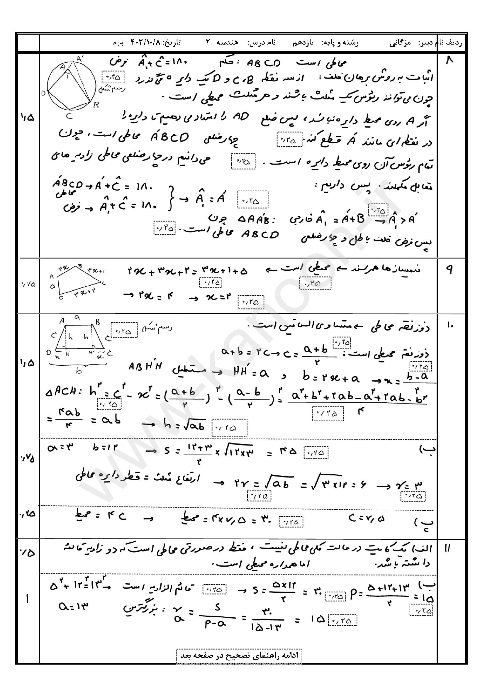 لینک مشاهده نمونه سوال هندسه یازدهم ریاضی