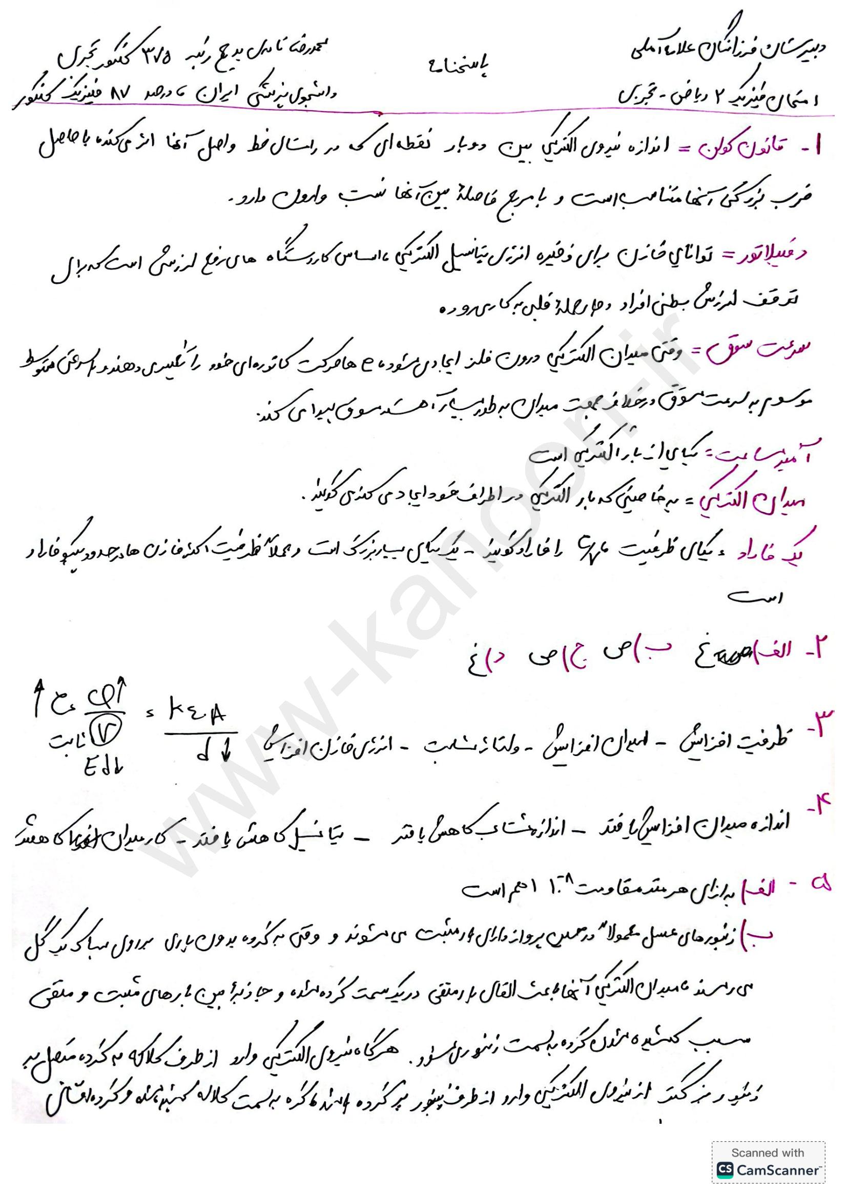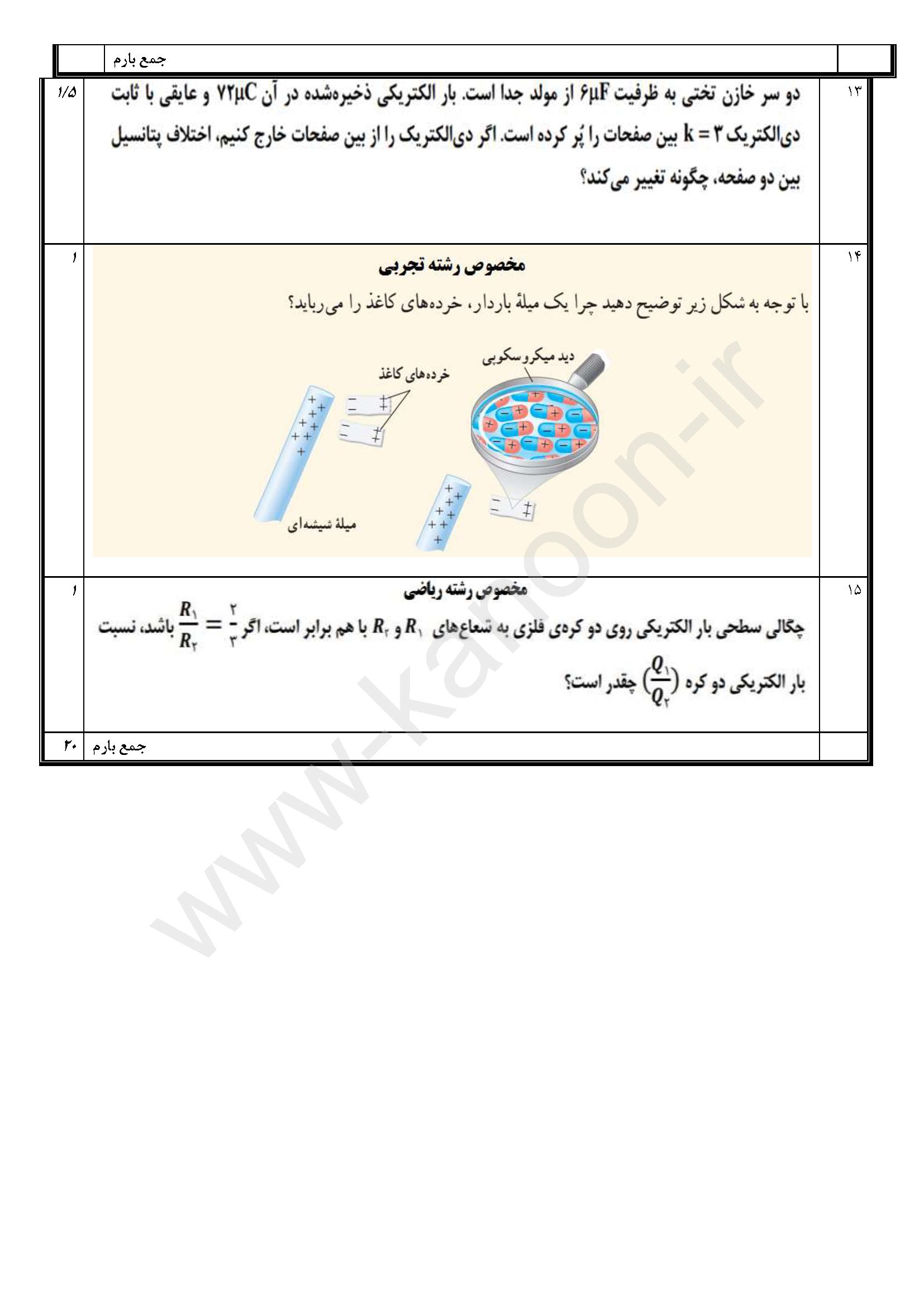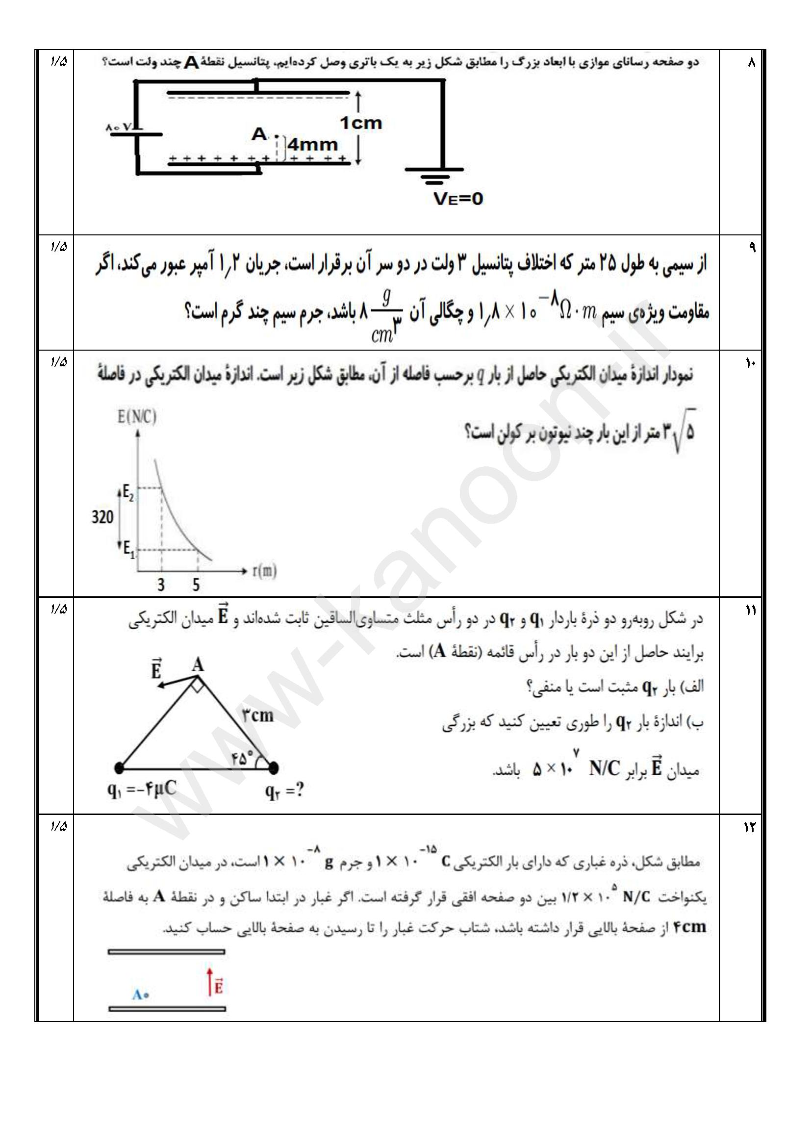 لینک مشاهده نمونه سوال فیزیک یازدهم ریاضی