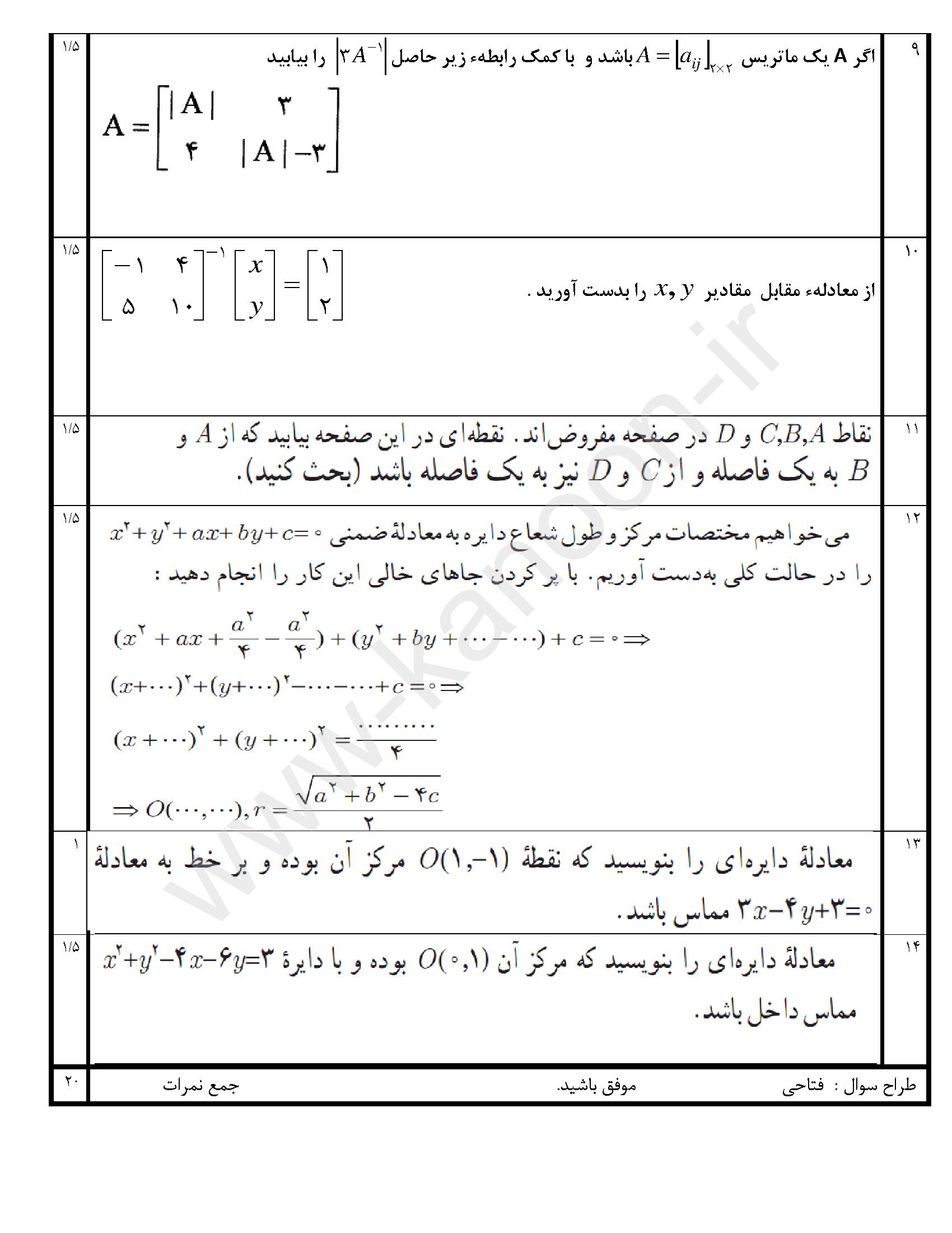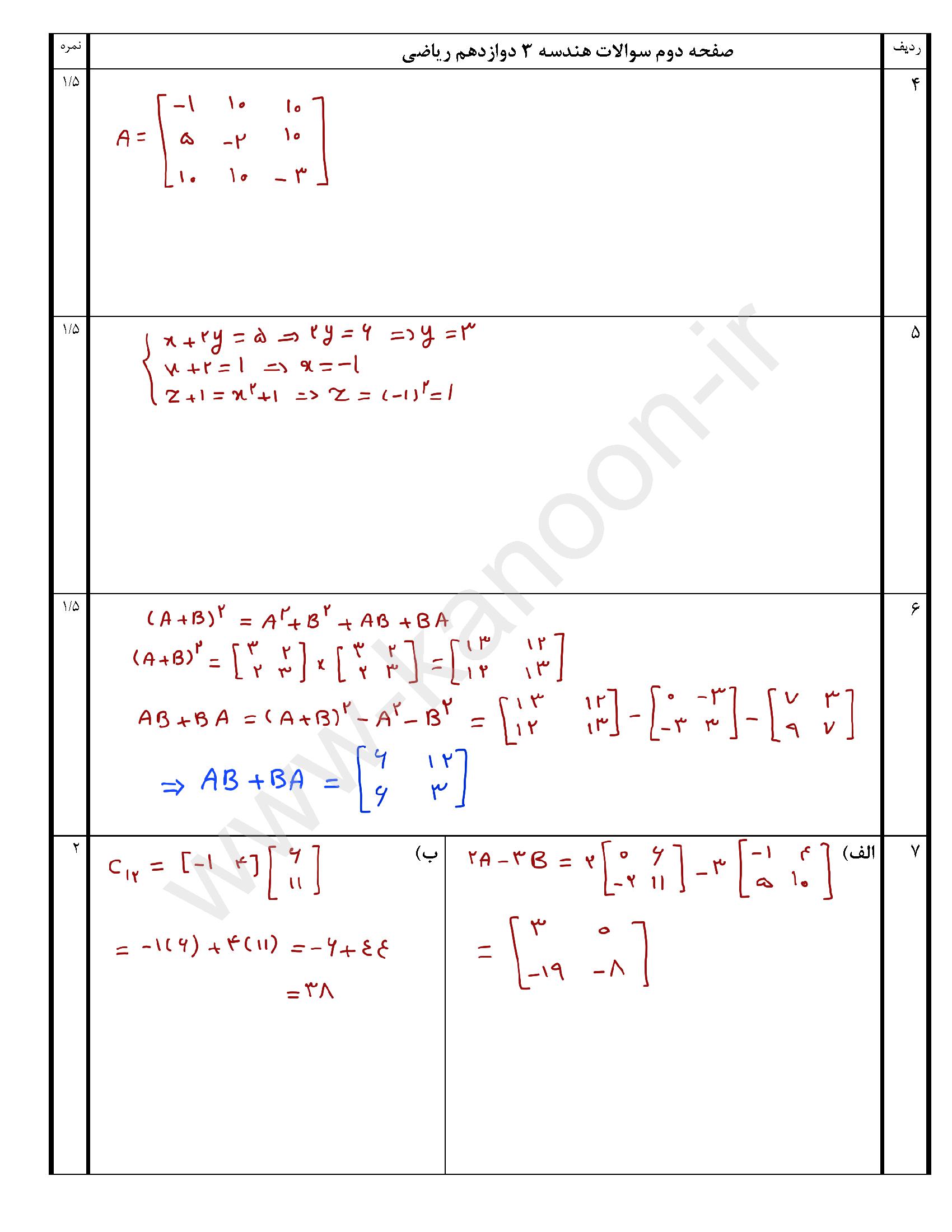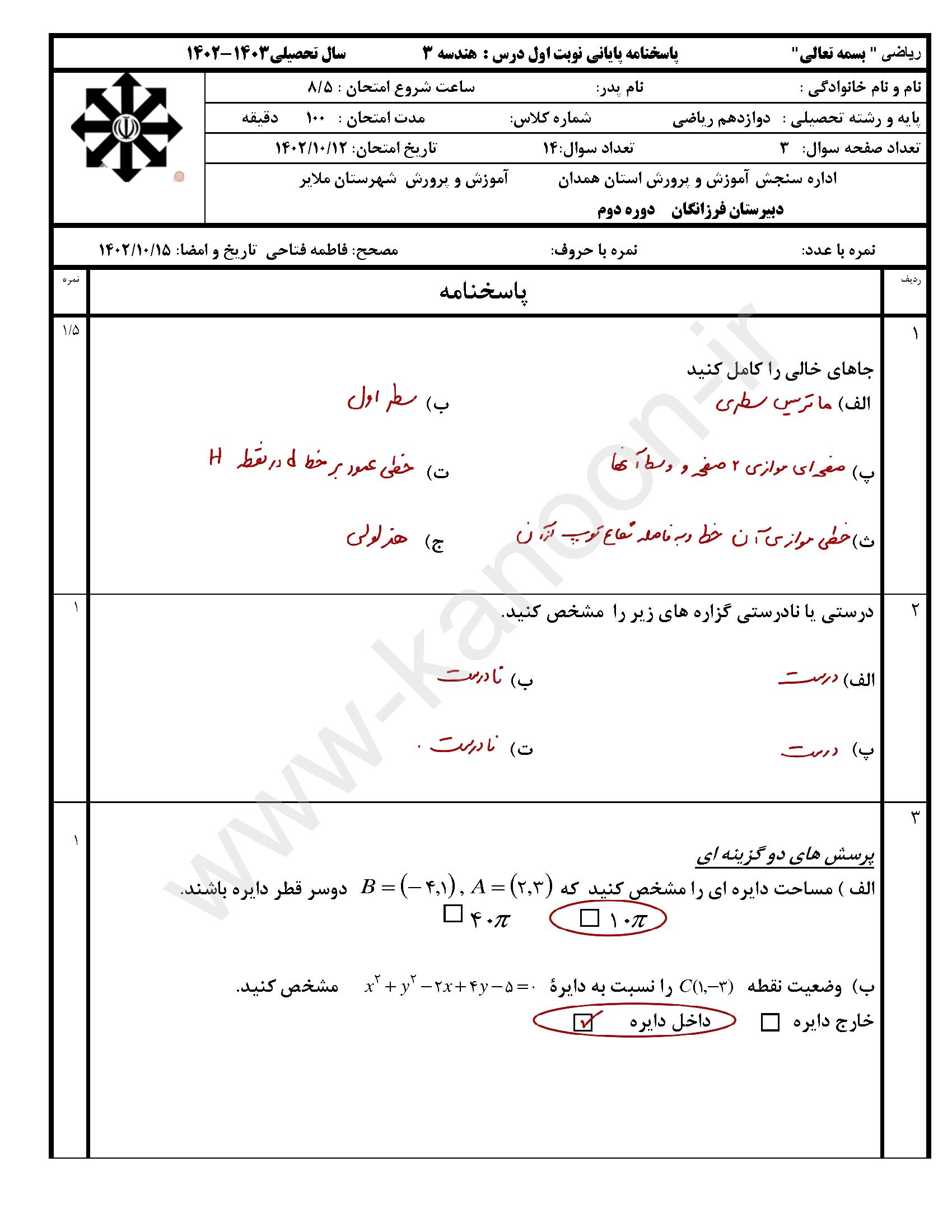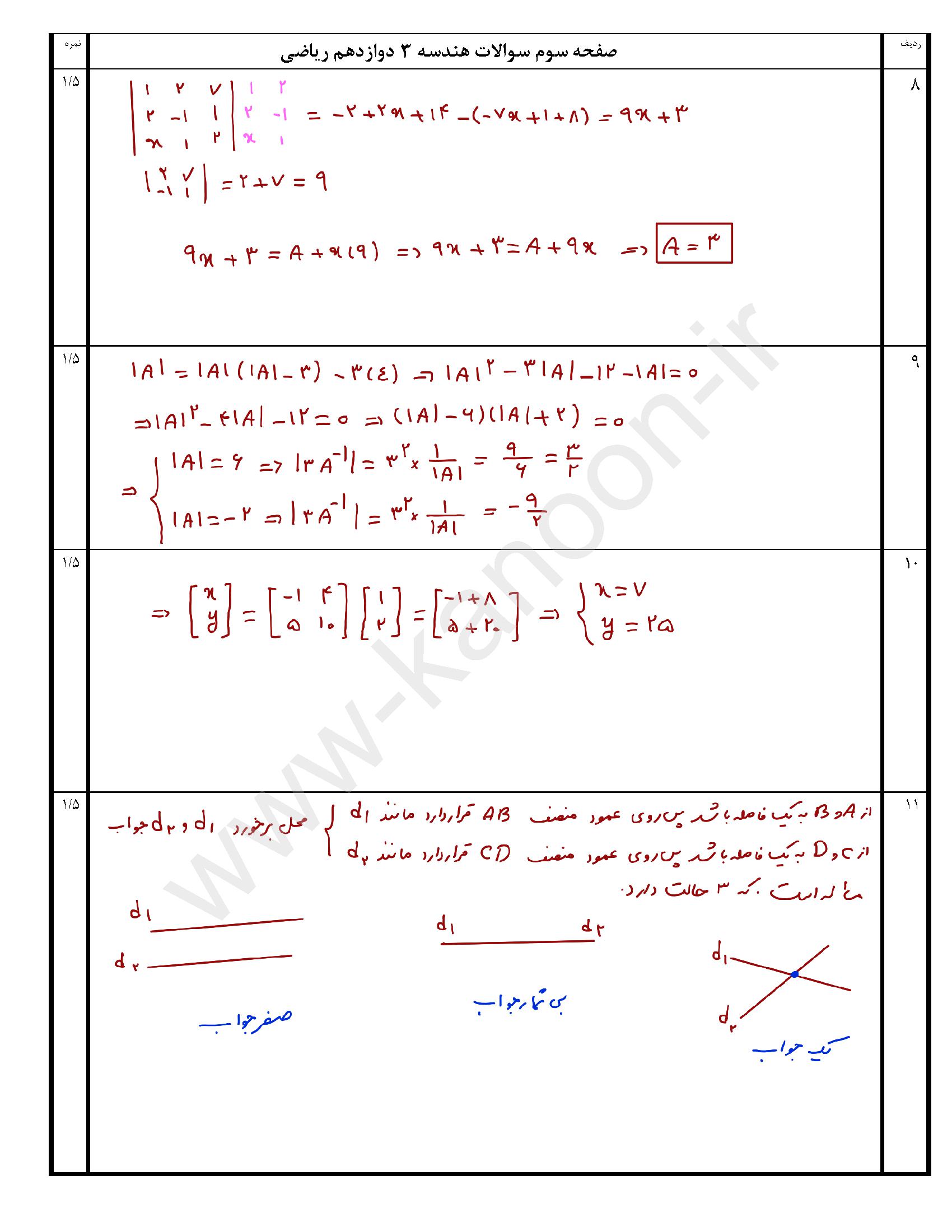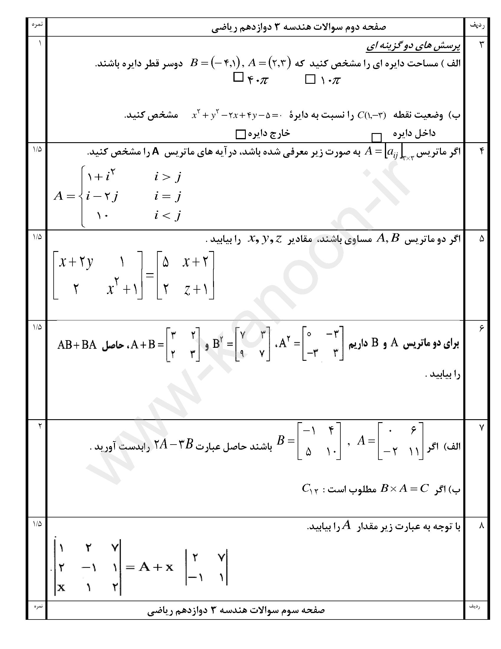 لینک مشاهده نمونه سوال هندسه دوازدهم ریاضی