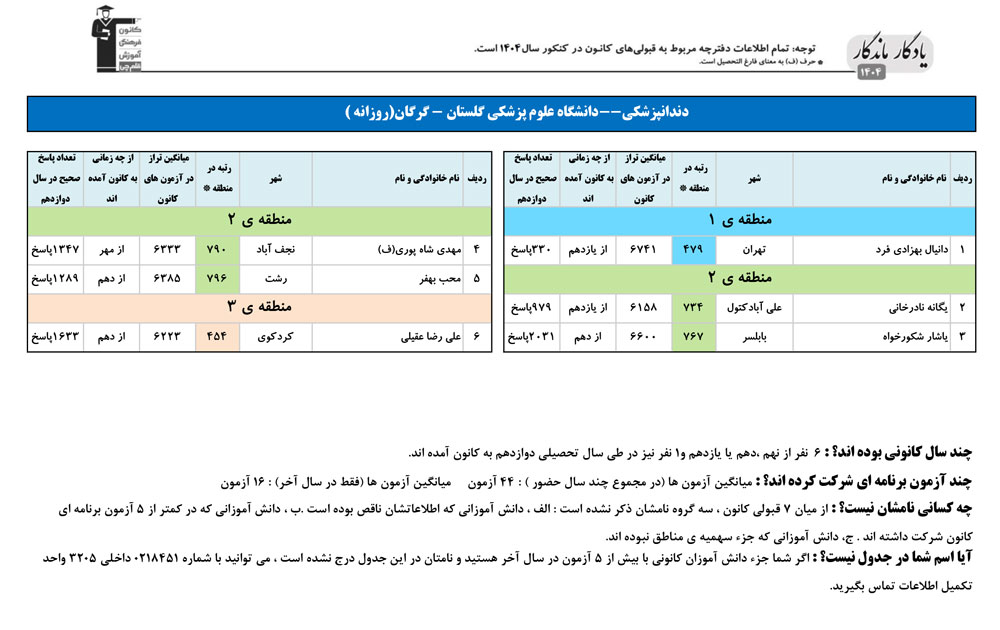 یادگار ماندگار : قبولی های کانونی علوم پزشکی گرگان در همه رشته ها در سال 1404 را در ادامه مشاهده کنید.فایل با کیفیت قبولی های سال 1404 را در قسمت فایل های ضمیمه دانلود کنید.