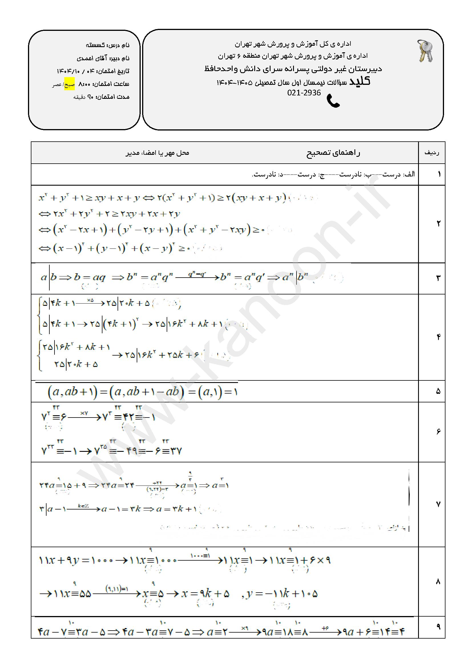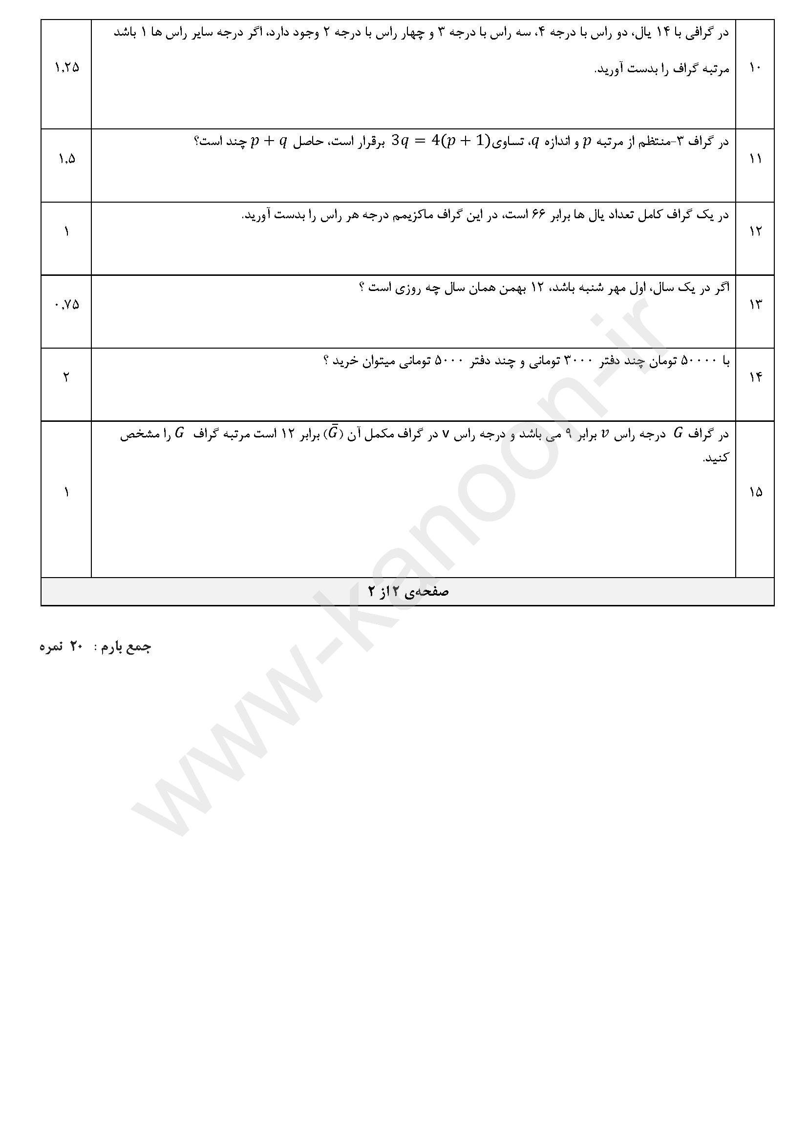 لینک مشاهده نمونه سوال ریاضیات گسسته دوازدهم ریاضی