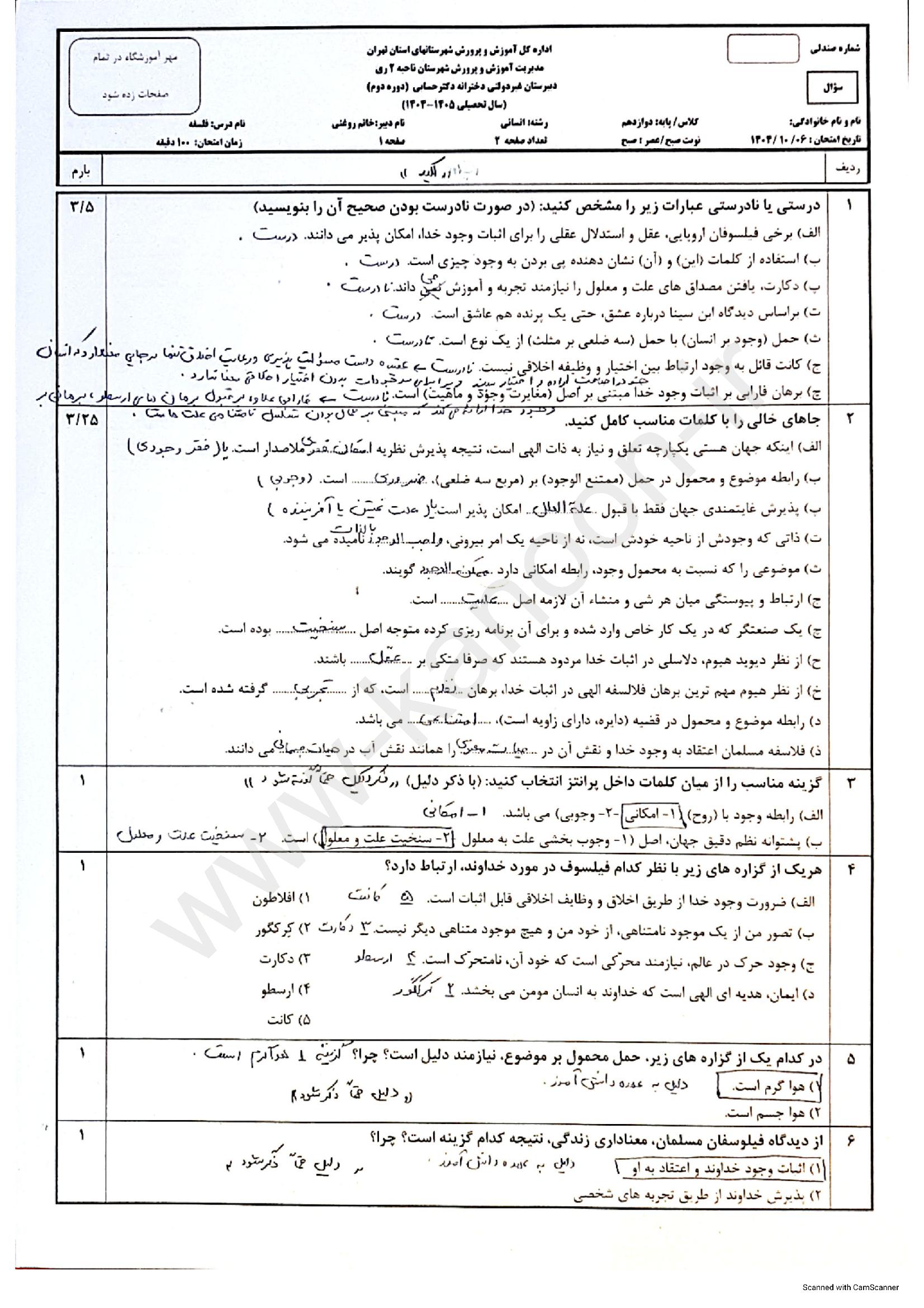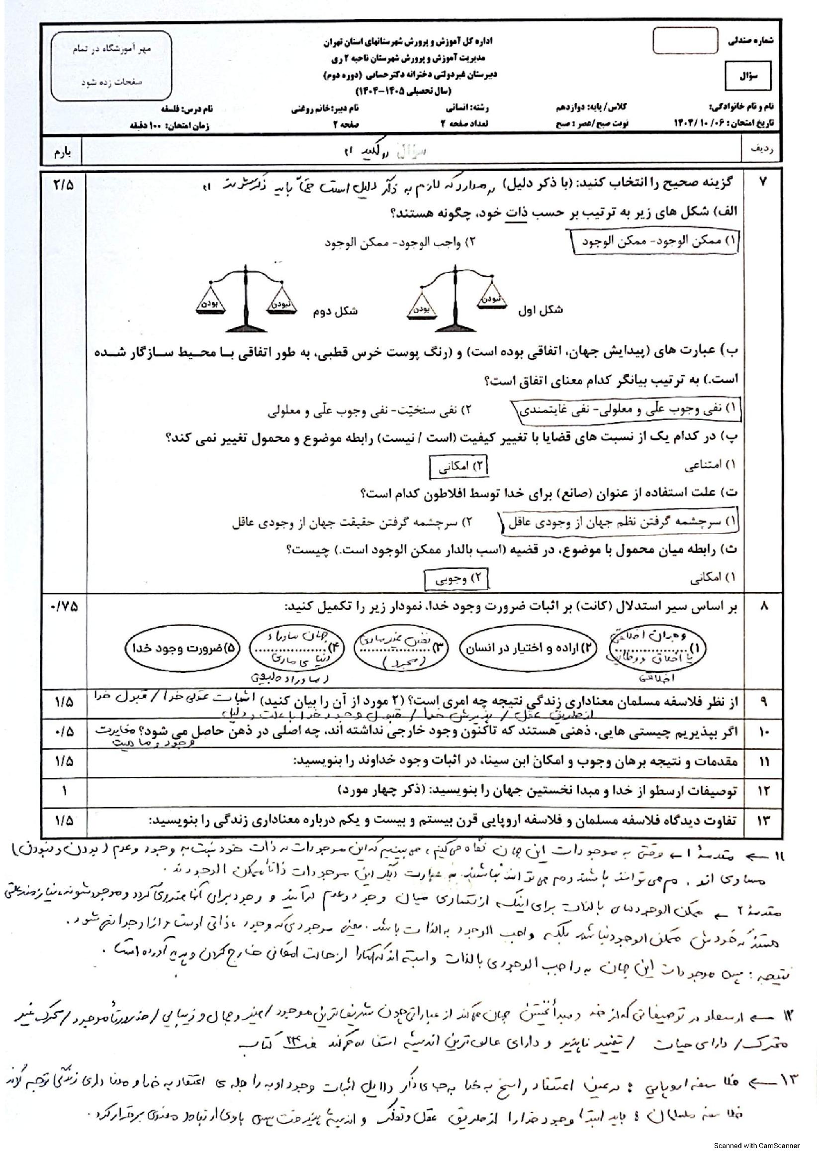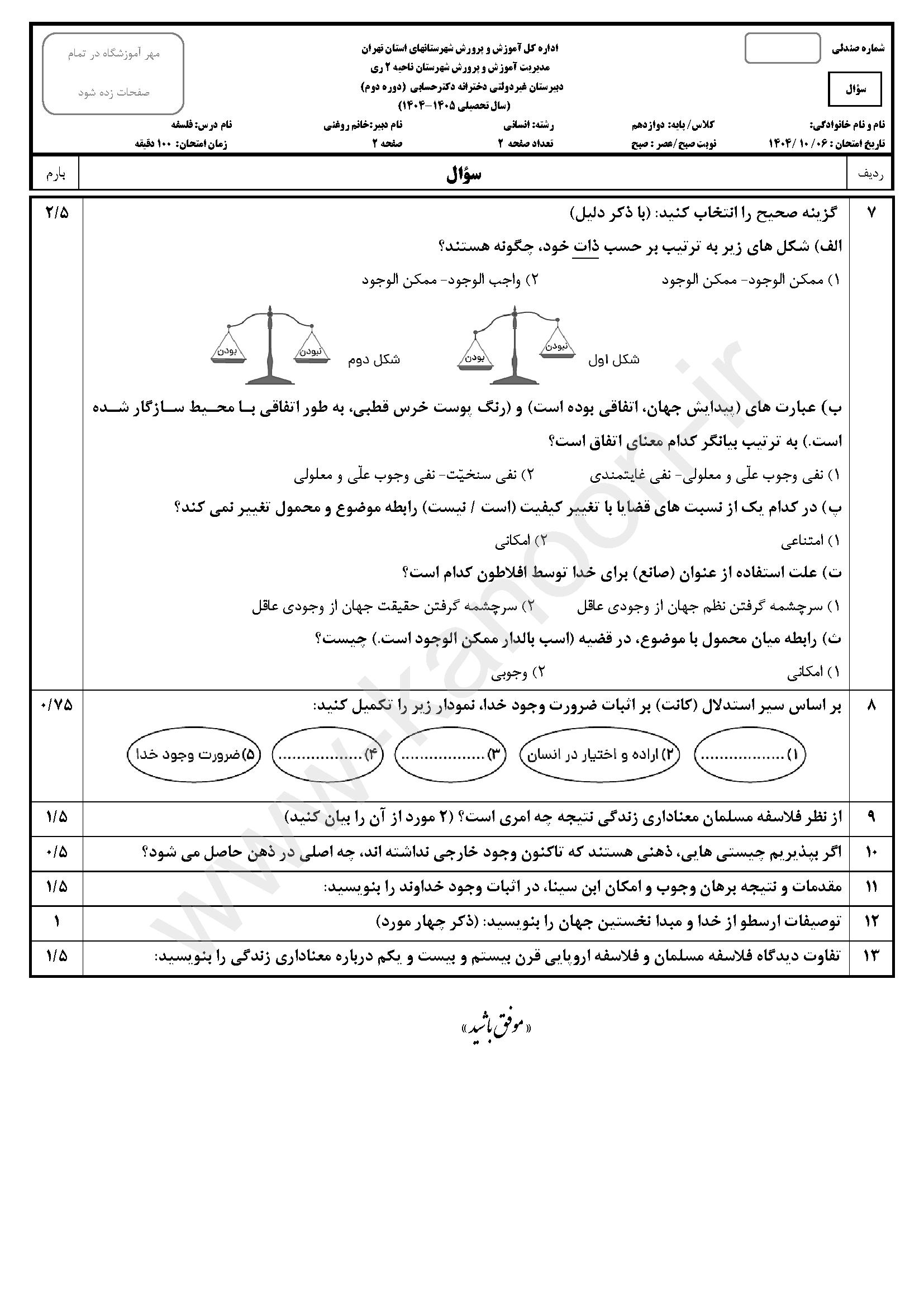 لینک مشاهده نمونه سوال فلسفه دوازدهم انسانی