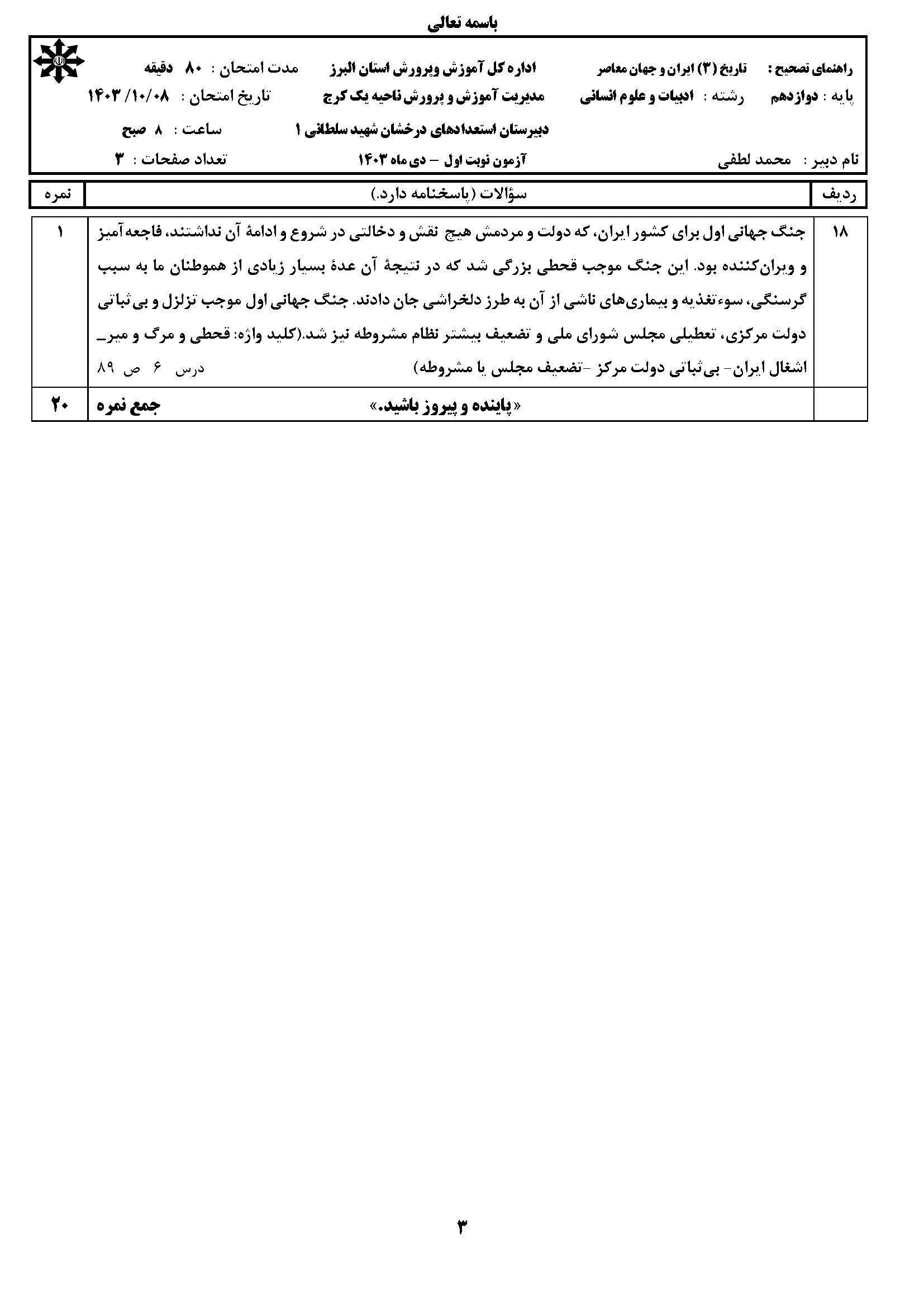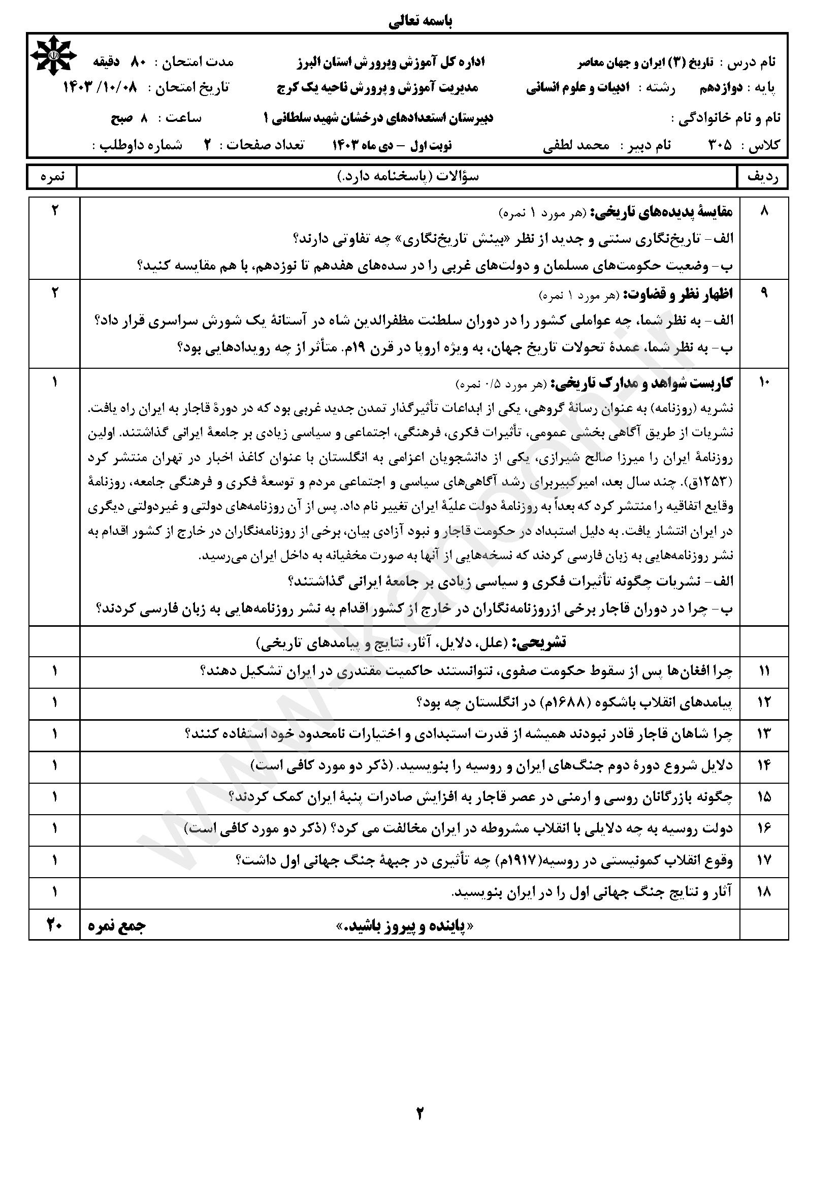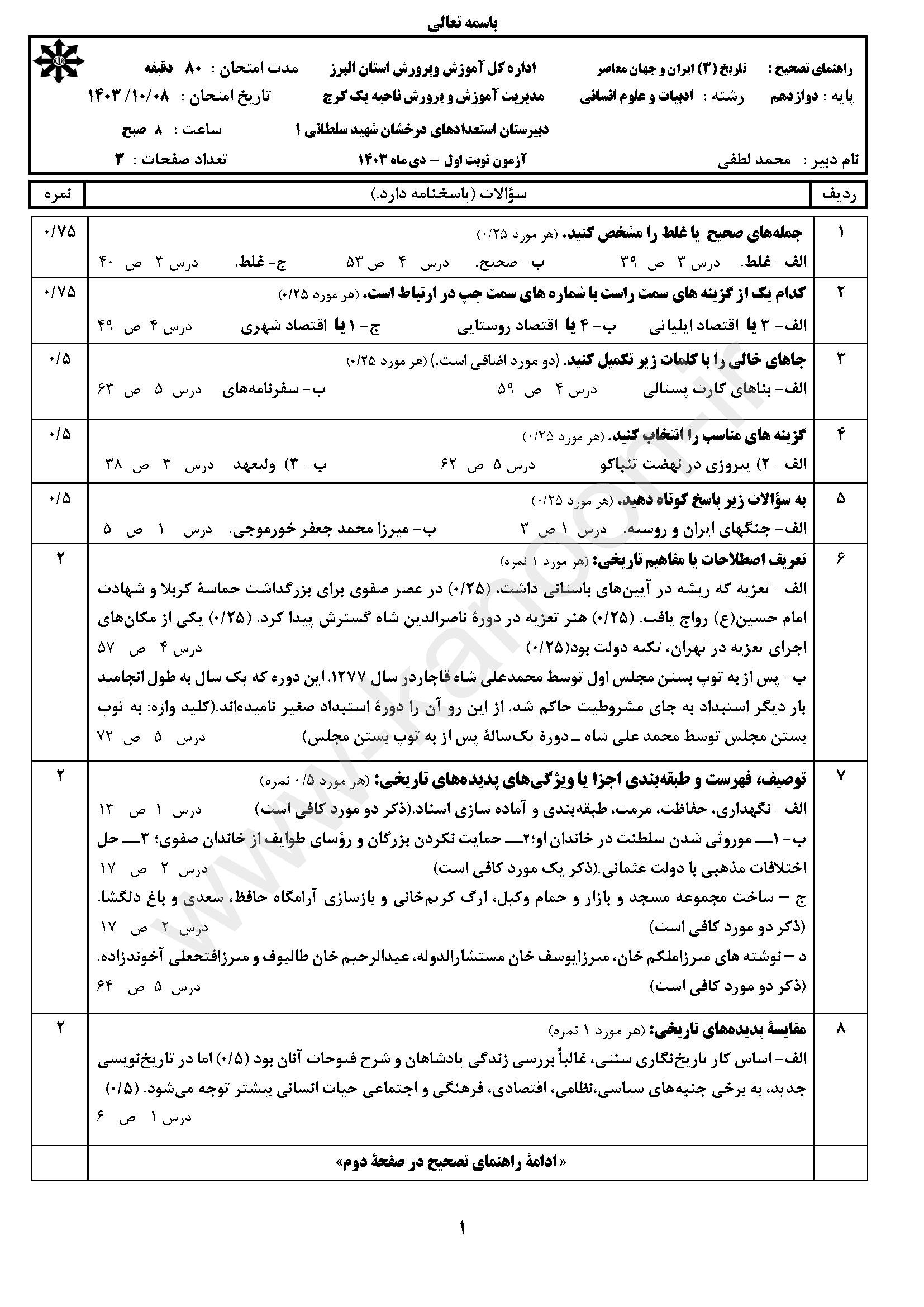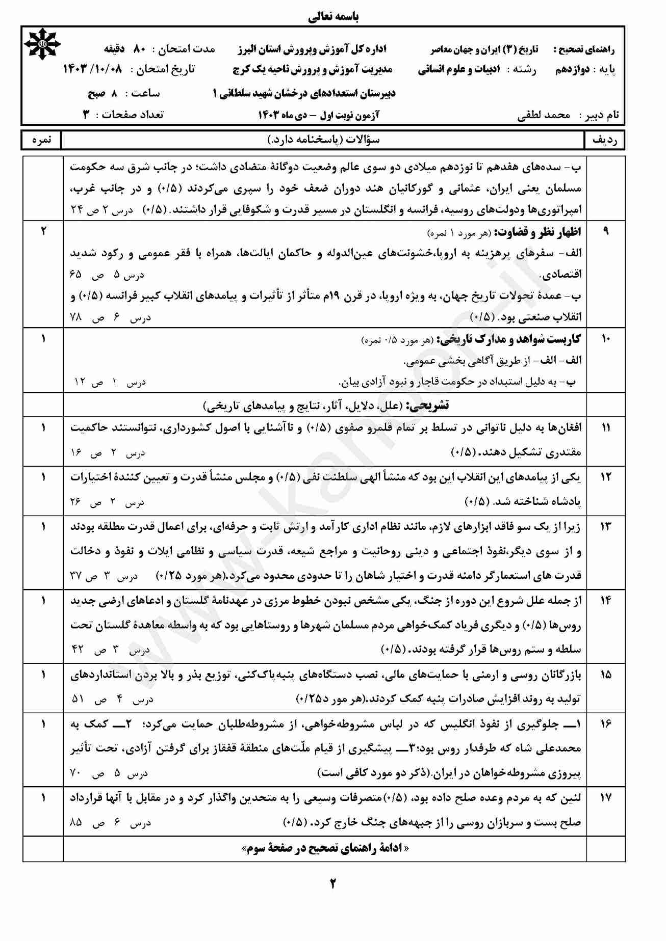 لینک مشاهده نمونه سوال تاریخ دوازدهم انسانی
