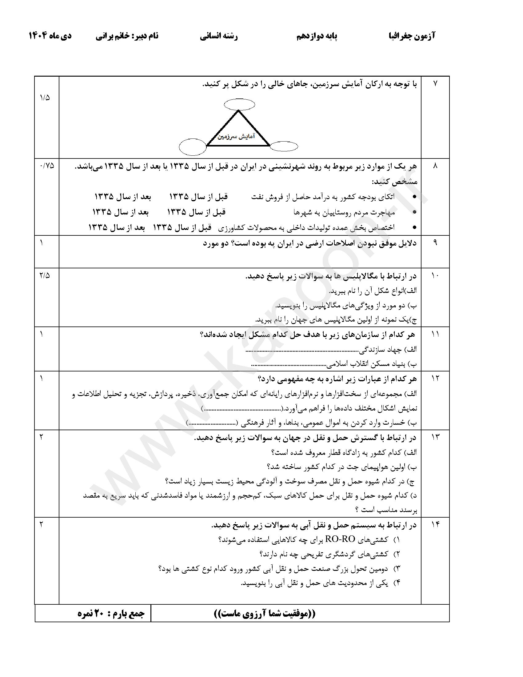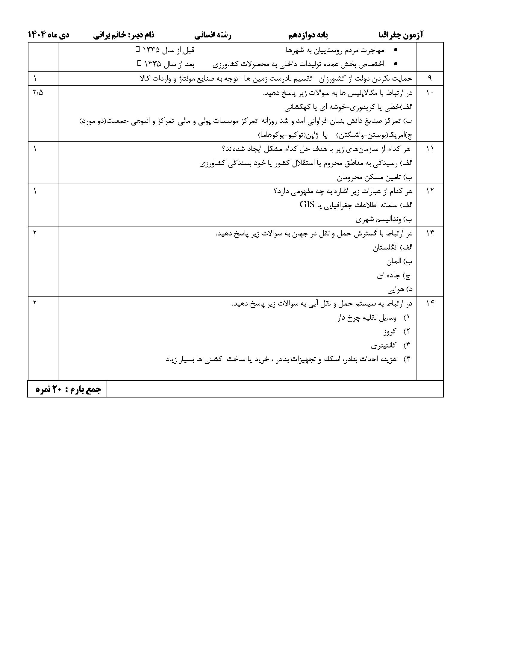 لینک مشاهده نمونه سوال جغرافیا دوازدهم انسانی