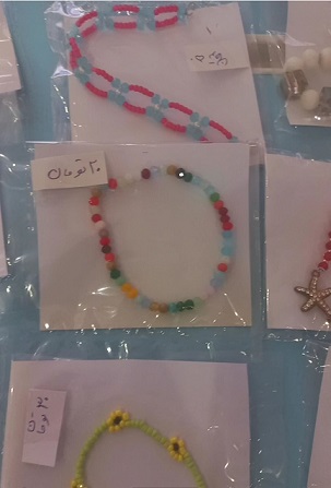 من به نقاشی و کارهای هنری علاقه دارم مثلاً دستبند و گردن بندن درست می کنم، بافندگی هم می کنم و در بازارچه مدرسه مون می فروشم.
