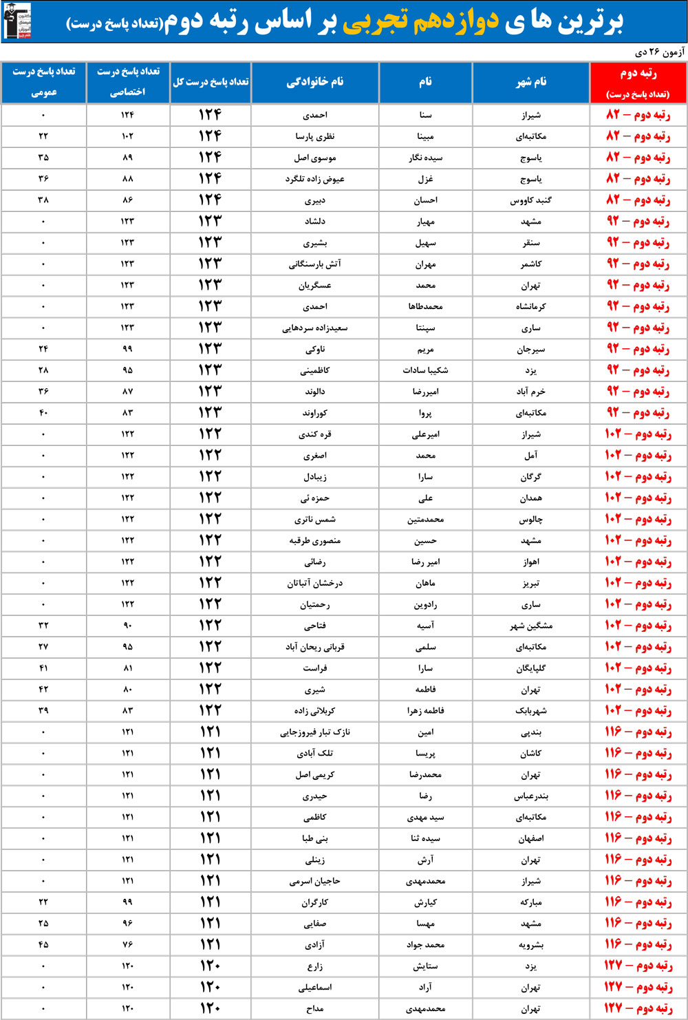 رتبهی دوم براساس تعداد سؤالهای درست شما مشخص میشود، رتبهی اول براساس نمرهی تراز